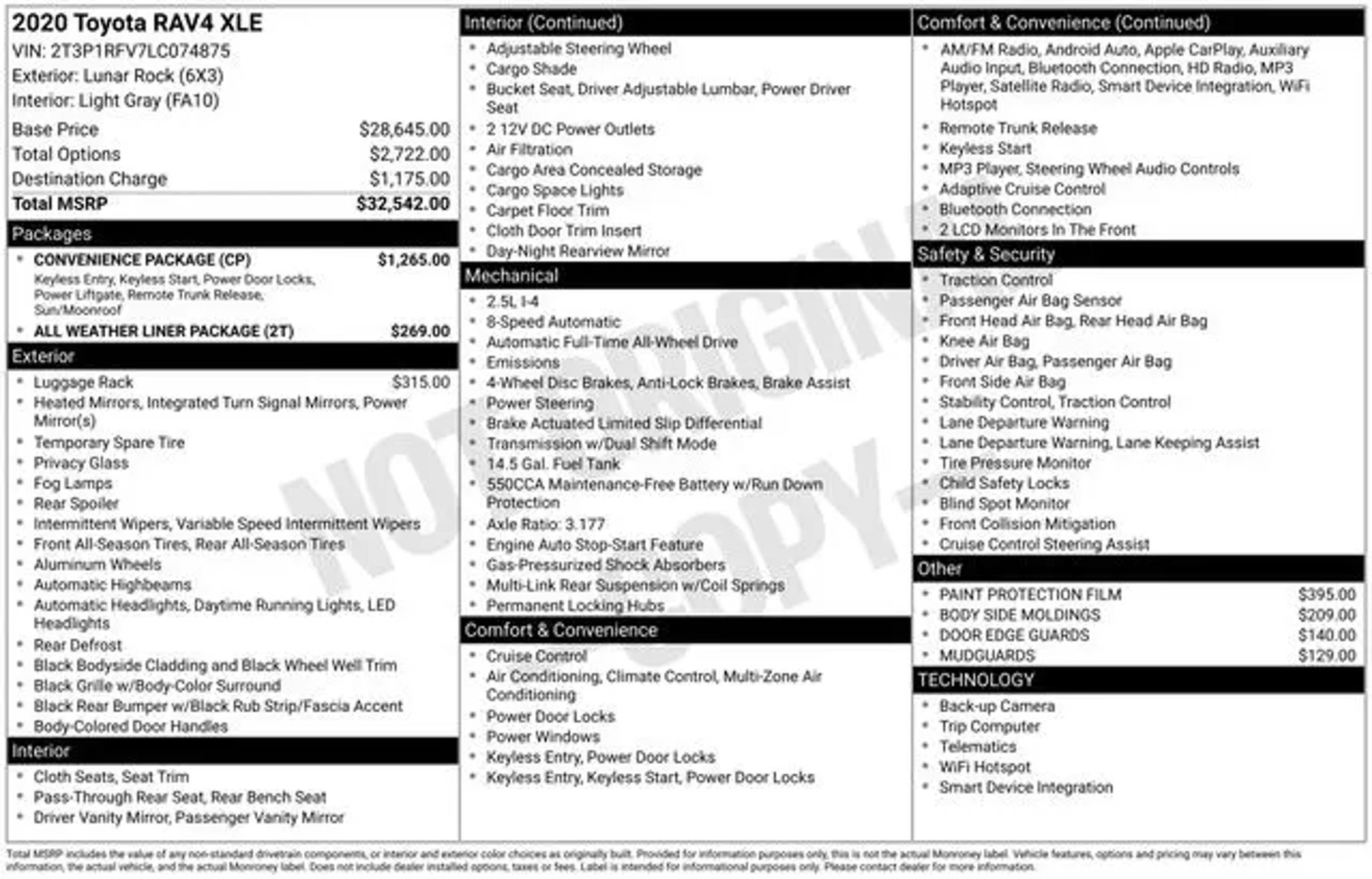 Recent Arrival! Our versatile 2020 Toyota RAV4 XLE AWD with the Convenience Pack in Lunar Rock can inspire you to seek out adventure every day! Powered by a 2.5 Liter Dynamic Force 4 Cylinder generating 203hp paired with an 8 Speed Direct Shift Automatic transmission with ECO and Sport modes so you can pick your own kind of performance. Agile and easy to maneuver, this All Wheel Drive SUV is also efficient enough to score nearly 33mpg on the highway. Our popular RAV4 adds rugged good looks, too, with LED lighting, fog lamps, 17-inch alloy wheels, dual chrome exhaust outlets, a rear spoiler, and our Convenience Pack's power sunroof and power liftgate. Our XLE cabin encourages you to take command of each day with supportive fabric seats, eight-way power for the driver, a multifunction steering wheel, dual-zone climate control, keyless access, and pushbutton ignition. Premium infotainment awaits with a 7-inch touchscreen, a six-speaker sound system, voice recognition, and an impressive range of connectivity choices, including Android Auto®, Apple CarPlay®, Bluetooth®, WiFi compatibility, and Amazon Alexa compatibility. Sophisticated Toyota Safety Sense 2.0 technology can help boost your peace of mind with adaptive cruise control, lane-keeping assistance, pedestrian detection, automatic braking, a rearview camera, blind-spot monitoring, hill start assistance, and more. Enjoy bold style and a big smile driving in our RAV4 XLE! Save this Page and Call for Availability. We Know You Will Enjoy Your Corwin Ford Spokane Test Drive Towards Ownership! See us today at Corwin Ford Spokane. Family owned for over 100 years! Excellent selection of New and Used vehicles, Financing options. Serving Spokane, Pasco, Kennewick, Richland, Walla Walla, Hermiston, Umatilla, Yakima, Sunnyside, Grandview, Dayton, Prescott, Denton County, Franklin County, Yakima County, Spokane County, Adams County, Grant County, and the Greater Columbia Basin. *All Prices plus applicable sales tax, license, and a negotiable documentary service fee up to $200 may be added to sales price or capitalized cost of the vehicle. One vehicle unless otherwise noted and subject to prior sale without notice. While supplies last. EPA mileage estimates are for newly manufactured vehicles only. Your actual mileage will vary depending on how you drive and maintain your vehicle.