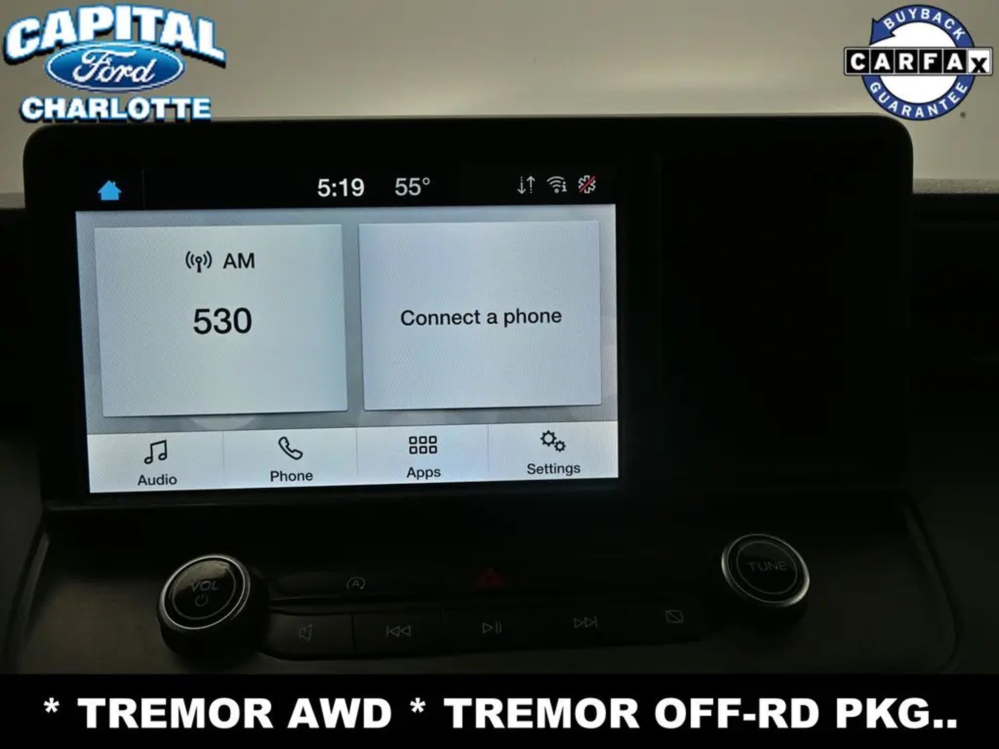 **FORD CO-PILOT360**, **APPLE CAR-PLAY**, ***ANDROID AUTO***, **BACKUP CAMERA**, **PRE-COLLISION ASSIST w. AEB**, **TRITON PROTECT CAR CARE SYSTEM**, **TRITON PROTECT SILENT SECURITY THEFT DETERRENT SYSTEM**, **FULLY INSPECTED BY CERTIFIED TECHNICIANS**, 4G LTE Wi-Fi Hotspot Removal, Advanced 4WD w/Twin Clutch Rear Drive Unit, Auto High-beam Headlights, BLIS Blind Spot Info System w/Cross-Traffic Alert, Delay-off headlights, Equipment Group 300A Standard, Ford Co-Pilot360, Front All Weather Floor Mats, Front Bumper w/Improved Approach Angle, Front Tow Hooks w/Tremor Orange Painted Accent, Fully automatic headlights, Heavy-Duty Transmission Cooler, Lane-Keeping System, Low Tire Pressure Warning, Off-Road Screen in Cluster, Off-Road Tuned Suspension, Radio: AM/FM Stereo w/6 Speakers, Speed Control, Telescoping Steering Wheel, Tilt Steering Wheel, Trail Control, Trailer Hitch Receiver w/4-Pin Connector, Tremor Instrument Panel & Floor Console Accents, Tremor Off-Road Package, Wheels: 17 Machined-Face Tarnished Dark Aluminum.