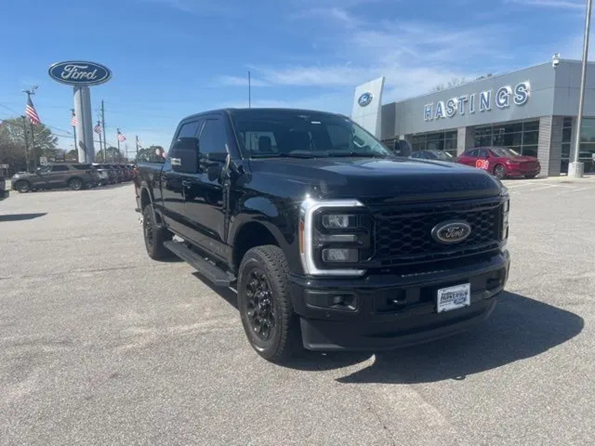 Black Metallic 2025 Ford F-250SD Lariat 4WD 10-Speed Automatic Power Stroke 6.7L V8 DI 32V OHV Turbodiesel F-250 SuperDuty Lariat, 4D Crew Cab, Power Stroke 6.7L V8 DI 32V OHV Turbodiesel, 10-Speed Automatic, 4WD, Black Metallic, Black Onyx Premium Synthetic, 3.73 Axle Ratio, 4-Way Adjustable Headrests, 4-Wheel Disc Brakes, 5th Wheel/Gooseneck Hitch Prep Package, 6 Ebony Black Angular Running Boards, 8 Speakers, ABS brakes, Adaptive Cruise Control with Stop-and-Go, Adjustable pedals, Air Conditioning, All-Weather Floor Mats, Alloy wheels, AM/FM radio: SiriusXM with 360L, Auto High-beam Headlights, Auto-dimming Rear-View mirror, Automatic High Beam, Automatic temperature control, Black Appearance Package, Black Painted Front Grille Surround, BLIS with Cross-Traffic Alert, Body Color Front and Rear Bumpers, Brake assist, Bumpers: chrome, Compass, Delay-off headlights, Driver door bin, Driver vanity mirror, Dual AGM 68 AH Battery, Dual front impact airbags, Dual front side impact airbags, Ebony Black Painted Mirror Caps, Electronic Stability Control, Electronic-Locking with 3.31 Axle Ratio, Emergency communication system: SYNC 4 911 Assist, Engine Block Heater, Flow-Through Console, Front ActiveX Trimmed 40/Console/40 Seats, Front and Rear Parking Sensors, Front anti-roll bar, Front Bucket Seats, Front Center Armrest, Front dual zone A/C, Front fog lights, Front License Plate Bracket, Front reading lights, Fully automatic headlights, FX4 Off-Road Package, Garage door transmitter, GVWR: F-250 >10K Package, Head-Up Display, Heated door mirrors, Heated front seats, Heated rear seats, Heated steering wheel, Hill Descent Control, Illuminated entry, Internet access capable: FordPass Connect 5G, Lane-Keeping System, Lariat Ultimate Package, Low tire pressure warning, Memory seat, Navigation System, Off-Road Specifically Tuned Shock Absorbers, Order Code 608A, Outside temperature display, Overhead airbag, Overhead console, Panic alarm, Passenger door bin, Passenger vanity mirror, Pedal memory, Post-Collision Braking, Power door mirrors, Power driver seat, Power passenger seat, Power steering, Power windows, Power-Deployable Running Boards, Power-Sliding Rear-Window with Defrost, Pre-Collision Assist, Privacy Glass, Pro Power Onboard - 2kW, Pro Trailer Backup Assist, Pro Trailer Hitch Assist, Radio: B&O Sound System by Bang and Olufsen, Radio: B&O Unleashed Sound System by Bang & Olufsen, Rain sensing wipers, Rear Parking Sensors, Rear reading lights, Rear seat center armrest, Rear step bumper, Rear window defroster, Remote keyless entry, Security system, SiriusXM Radio with 360L, Speed control, Split folding rear seat, Steering wheel mounted audio controls, SYNC 4 with Enhanced Voice Recognition, Tachometer, Tailgate Step and Handle, Telescoping steering wheel, Tilt steering wheel, Traction control, Trip computer, Turn signal indicator mirrors, Twin Panel Power Moonroof, Unique FX4 Off-Road Box Decal, Upfitter Switches (6), Variably intermittent wipers, Ventilated front seats, Wheels: 18 Bright Machined and Carbonized Gray Aluminum, F-250 SuperDuty Lariat, 4D Crew Cab, Power Stroke 6.7L V8 DI 32V OHV Turbodiesel, 10-Speed Automatic, 4WD, Black Metallic, Black Onyx Premium Synthetic. Recent Arrival! Odometer is 5636 miles below market average!