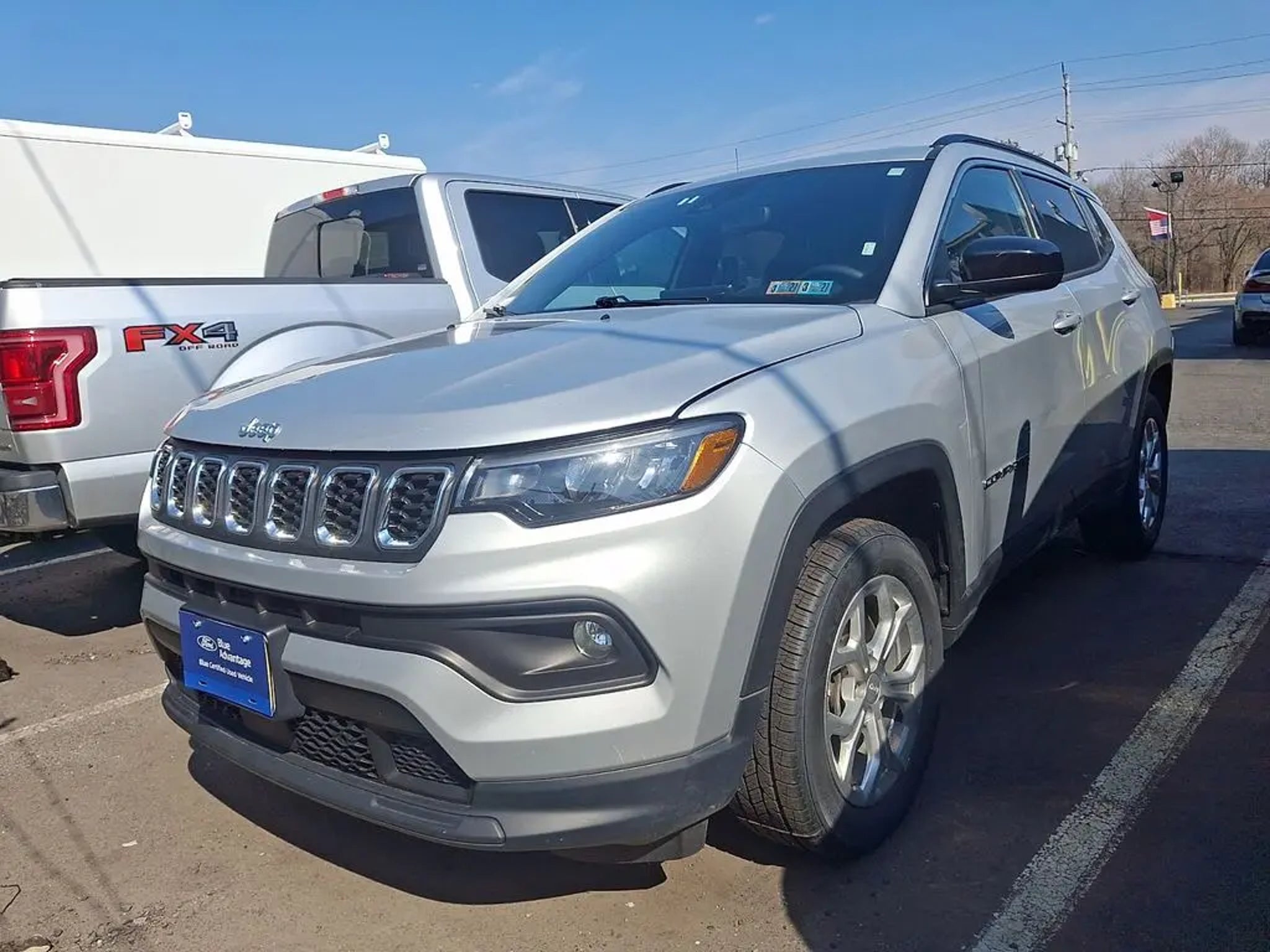 CARFAX One-Owner. Recent Arrival! Certified. 24/32 City/Highway MPG. The Jeep Compass Latitude 4x4 offers the perfect mix of capability, technology, and everyday comfort. Powered by a 2.0L turbocharged engine paired with an 8-speed automatic transmission, it delivers confident performance along with the added traction of Jeep?s Selec-Terrain? 4x4 system. Inside, enjoy modern tech including a 10.1-inch Uconnect? touchscreen with Apple CarPlay? and Android AutoTM, steering-wheel audio controls, and comfortable premium seating. Safety features such as Blind Spot Monitoring, Forward Collision Warning with Active Braking, Active Lane Management, and a ParkView? rear backup camera help keep you protected on the road. Finished in Silver Zynith Metallic with LED lighting and roof rails, this Compass is a stylish and capable SUV ready for your daily drive or weekend adventure.