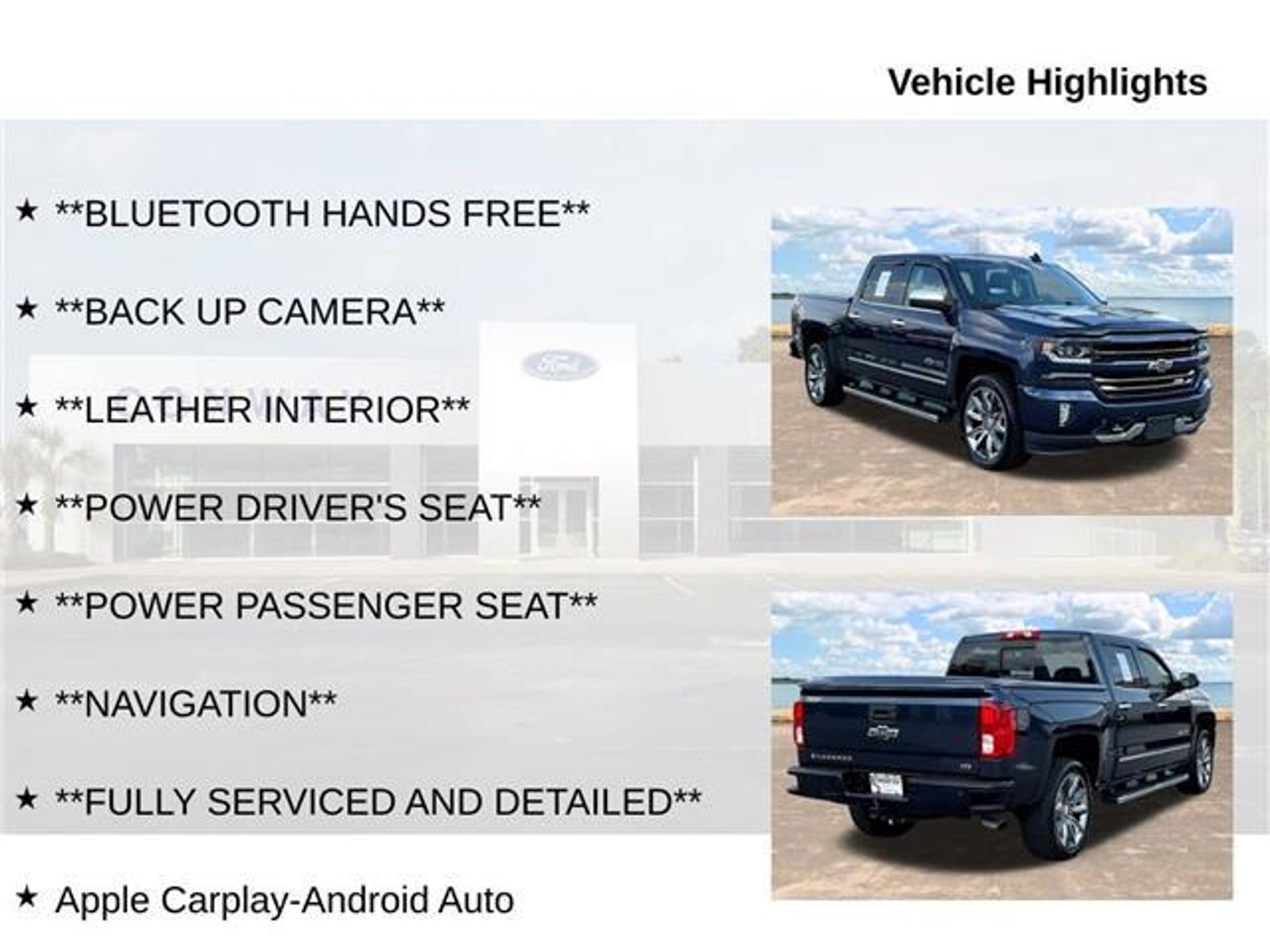 Discover the ultimate in power, capability, and modern convenience with this exceptional 2018 Chevrolet Silverado 1500 LTZ 2LZ. This Silverado is more than just a truck - it's a true workhorse that's been meticulously maintained and expertly equipped to handle any task you throw its way. Outfitted with a potent EcoTec3 6.2L V8 engine and 4-wheel drive, this Silverado delivers exceptional performance and off-road prowess. Key features include: - Bluetooth hands-free connectivity - Backup camera - Leather-appointed interior - Power driver's and passenger's seats - Navigation system - Bose premium audio system The Centennial Edition package takes this Silverado to the next level, adding premium 22-inch wheels, all-terrain tires, chrome recovery hooks, a spray-on bedliner, and heritage-themed badging. The LTZ Plus Package further enhances the experience with power-adjustable pedals, a heated leather-wrapped steering wheel, and front and rear park assist. For your safety and convenience, the Enhanced Driver Alert Package equips this Silverado with lane keep assist, IntelliBeam headlamps, low-speed forward automatic braking, and a handy safety alert seat. The interior is a true standout, featuring heated and ventilated leather-appointed front bucket seats, wireless charging, and the user-friendly Chevrolet MyLink infotainment system with an 8-inch touchscreen. This Silverado has been meticulously serviced and detailed, ensuring it's ready to take on your toughest jobs and longest adventures. With its exceptional capability, premium features, and striking good looks, this 2018 Chevrolet Silverado 1500 LTZ 2LZ is the ultimate choice for the discerning truck buyer. Don't miss your chance to experience the power and versatility of this exceptional Silverado. Visit our showroom today and let us demonstrate why this is the perfect truck to take your adventures to new heights.