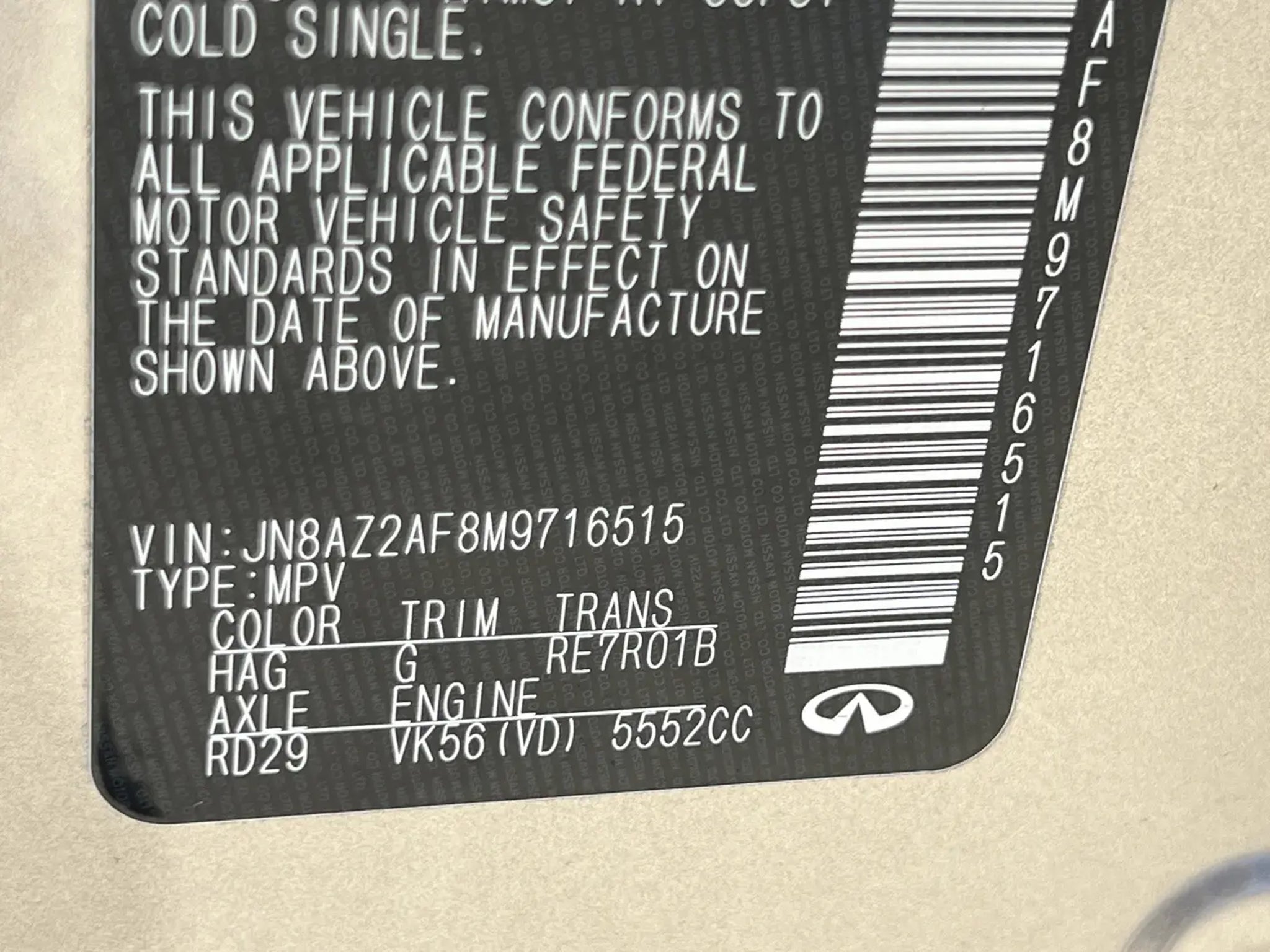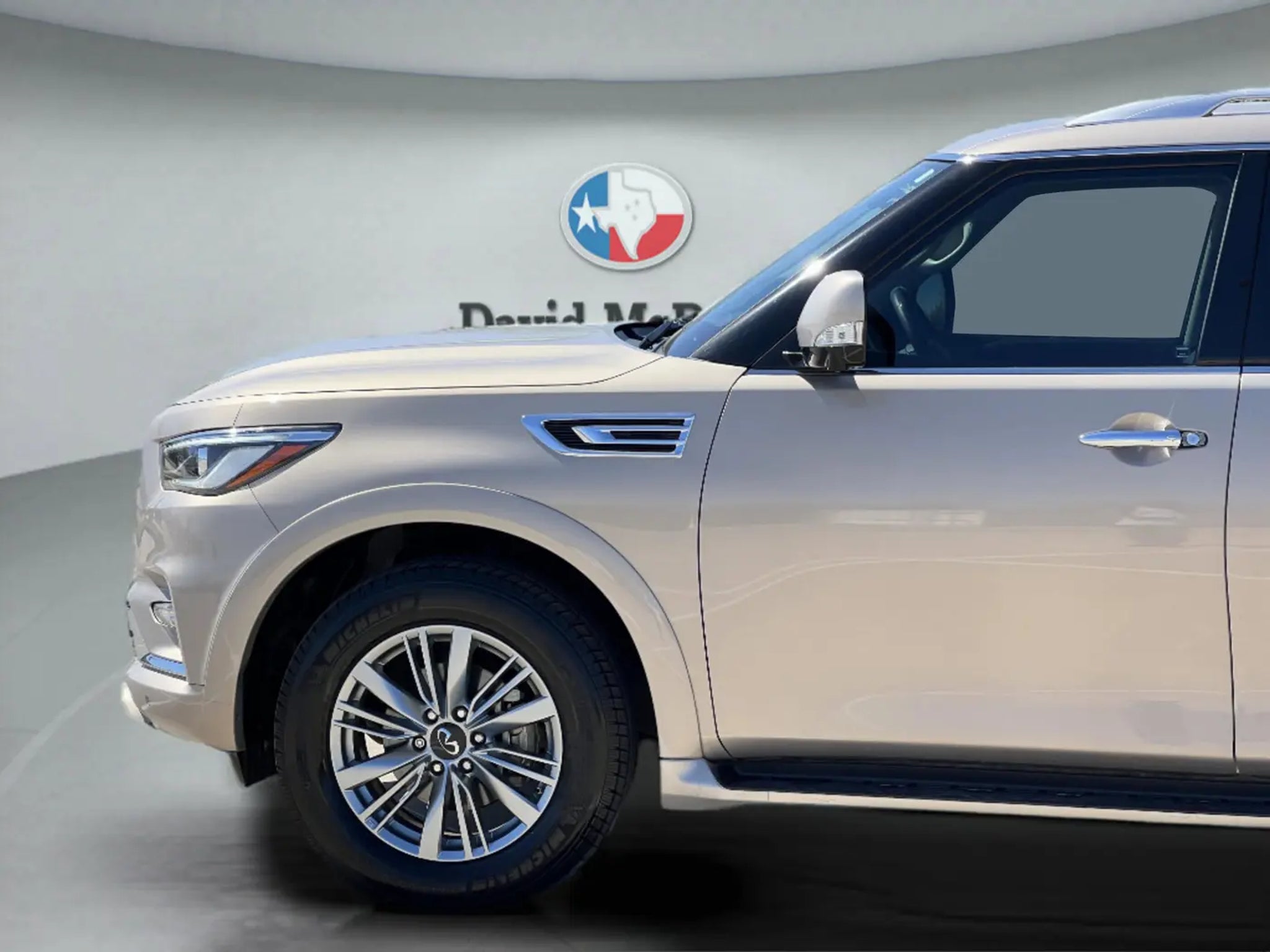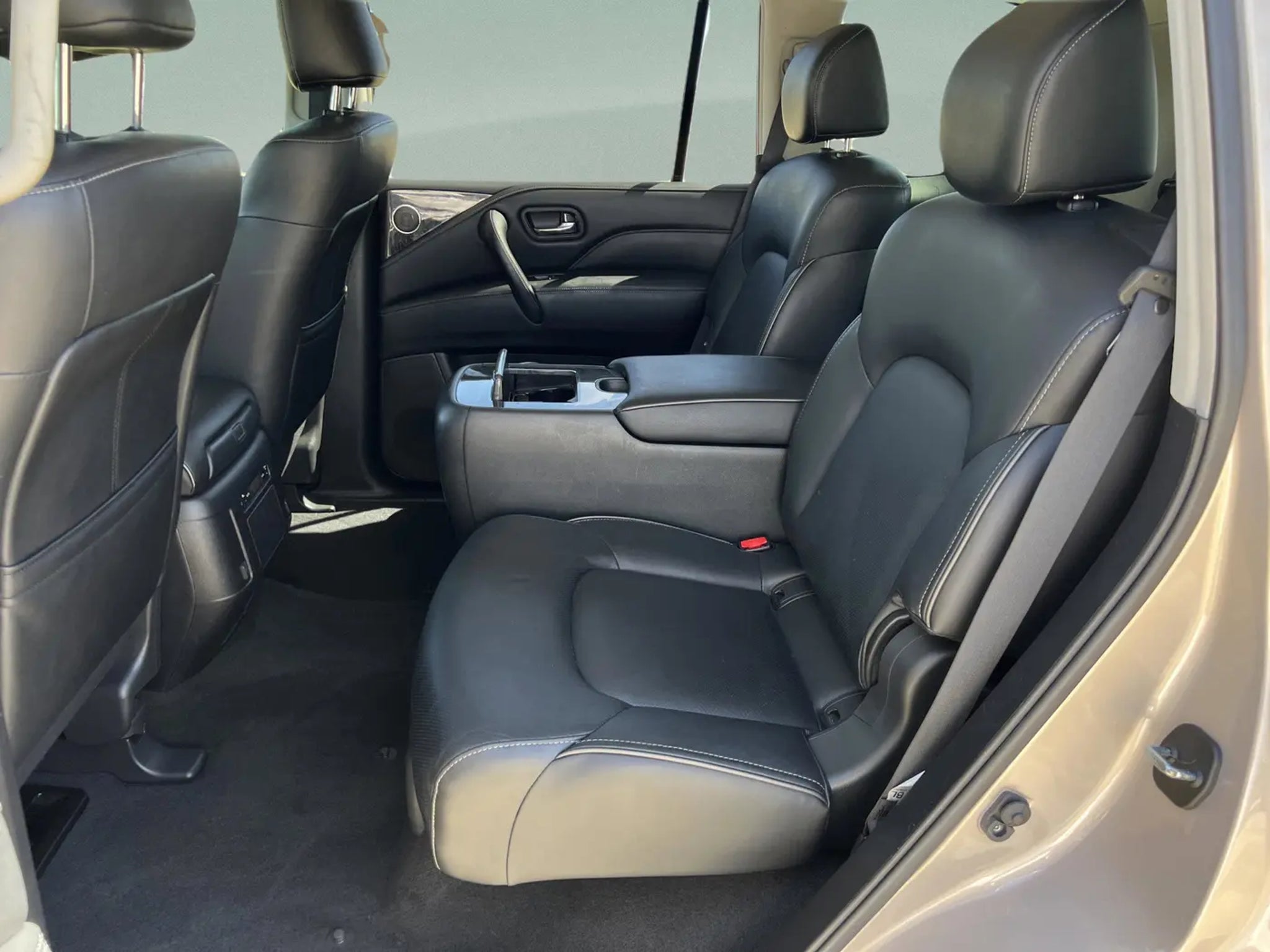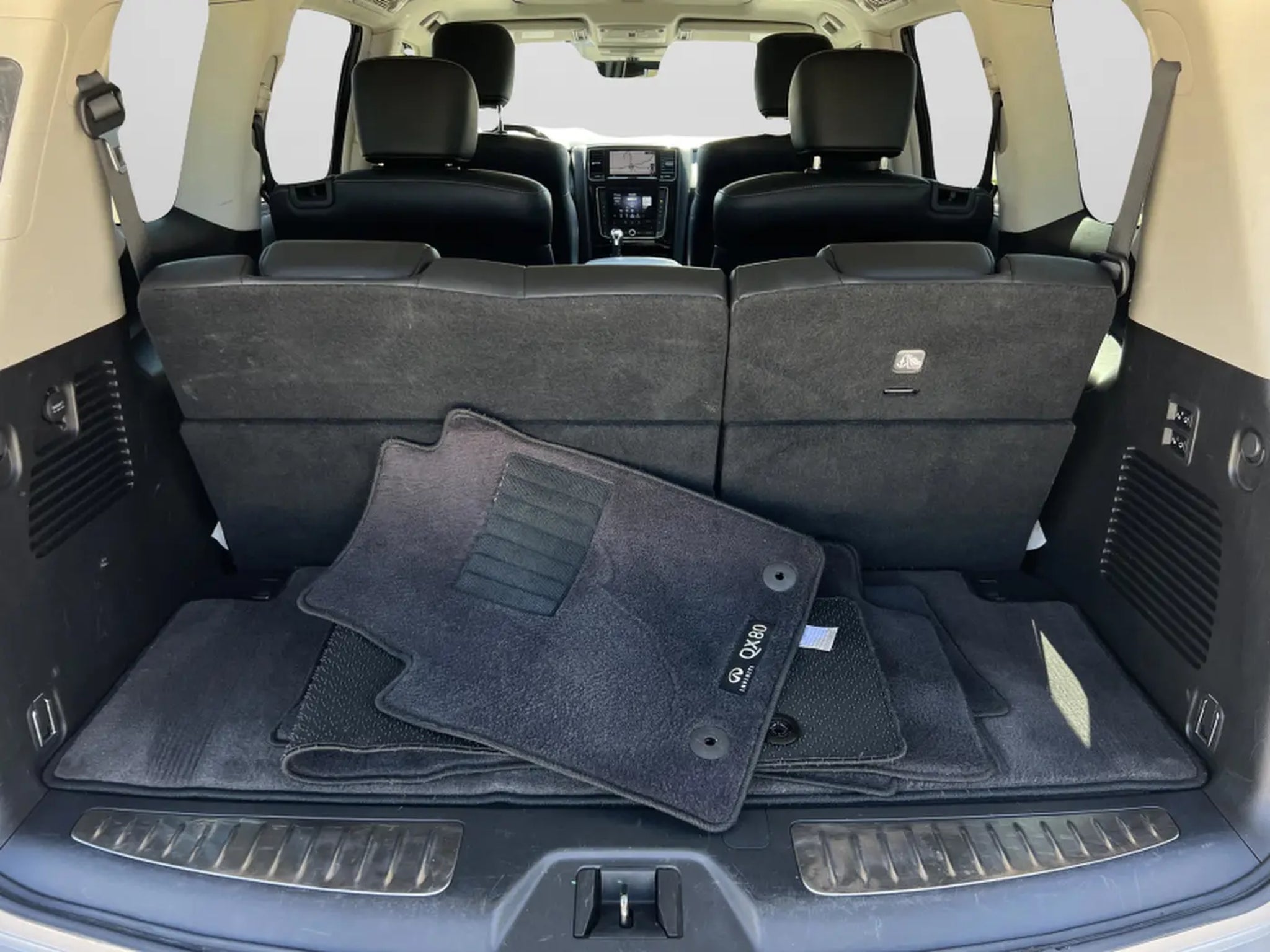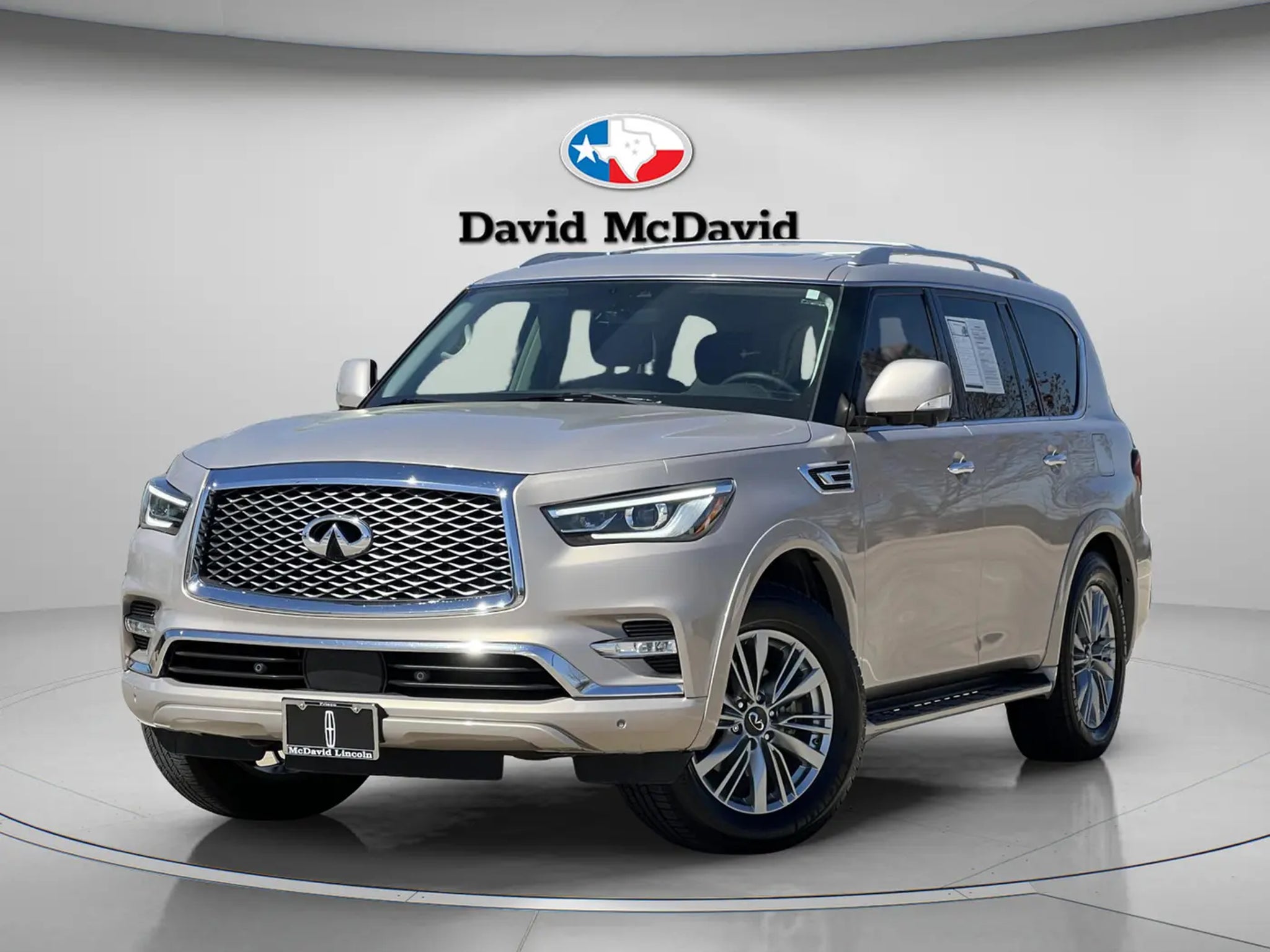New Price! CARFAX One-Owner. Champagne Quartz 2021 INFINITI QX80 LUXE RWD 7-Speed Automatic 5.6L V8 QX80 LUXE, 4D Sport Utility, 5.6L V8, 7-Speed Automatic, RWD, Champagne Quartz, Graphite Leather, 13 Speakers, 2.937 Axle Ratio, 3rd row seats: split-bench, 4-Wheel Disc Brakes, ABS brakes, Air Conditioning, Alloy wheels, AM/FM radio: SiriusXM, Anti-whiplash front head restraints, Apple CarPlay/Android Auto, Auto High-beam Headlights, Auto tilt-away steering wheel, Auto-dimming door mirrors, Auto-dimming Rear-View mirror, Auto-leveling suspension, Automatic temperature control, Brake assist, Bumpers: body-color, Cargo Package, CD player, Compass, Delay-off headlights, Driver door bin, Driver vanity mirror, Dual front impact airbags, Dual front side impact airbags, DVD-Audio, Electronic Stability Control, Emergency communication system: INFINITI Connection, First-Aid Kit, Four wheel independent suspension, Front anti-roll bar, Front Bucket Seats, Front Center Armrest, Front dual zone A/C, Front fog lights, Front reading lights, Fully automatic headlights, Garage door transmitter: HomeLink, Heated door mirrors, Heated Front Bucket Seats, Heated front seats, Heated steering wheel, High-Density Non-Slip Rear Cargo Carpet, Illuminated entry, Leather Shift Knob, Leather steering wheel, Leather-Appointed Seats, Literature Kit, Low tire pressure warning, Memory seat, Navigation system: INFINITI InTouch Navigation, Nylon-Cord Cargo Net, Occupant sensing airbag, Outside temperature display, Overhead airbag, Overhead console, Panic alarm, Passenger door bin, Passenger vanity mirror, Power door mirrors, Power driver seat, Power Liftgate, Power moonroof, Power passenger seat, Power steering, Power windows, Radio data system, Radio: Bose Audio System w/13 Speakers, Rain sensing wipers, Rear air conditioning, Rear anti-roll bar, Rear audio controls, Rear reading lights, Rear seat center armrest, Rear window defroster, Rear window wiper, Reclining 3rd row seat, Remote keyless entry, Roof Rail Cross Bars, Security system, Speed control, Speed-sensing steering, Split folding rear seat, Spoiler, Steering wheel memory, Steering wheel mounted audio controls, Tachometer, Telescoping steering wheel, Tilt steering wheel, Traction control, Trip computer, Turn signal indicator mirrors, Variably intermittent wipers, Voltmeter, Wheels: 20 x 8.0 Aluminum-Alloy.RECALL NOTICE: Some vehicles offered for sale may be subject to unrepaired manufacturer safety recalls. To determine the recall status of a vehicle, visit https://www.nhtsa.gov/r