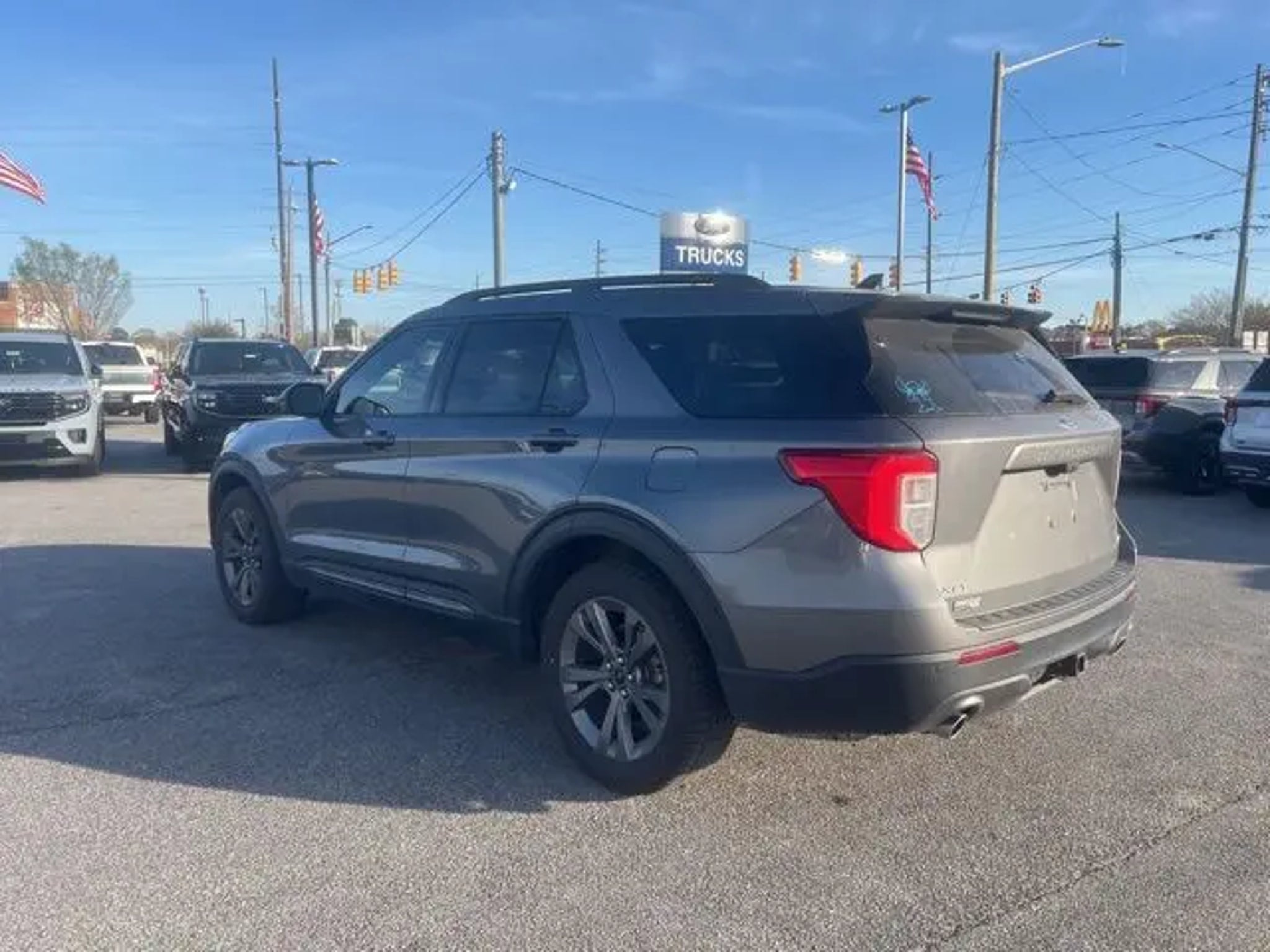 Carbonized Gray Metallic 2022 Ford Explorer XLT 4WD 10-Speed Automatic 2.3L EcoBoost I-4 Explorer XLT, 4D Sport Utility, 2.3L EcoBoost I-4, 10-Speed Automatic, 4WD, Carbonized Gray Metallic, Ebony w/ActiveX Captain's Chairs w/Miko Inserts, 1st Row Heated Seats, 3.58 Non-Limited-Slip Rear Axle Ratio, 3rd row seats: bench, 4-Wheel Disc Brakes, 6 Speakers, ABS brakes, Acoustic-Laminated Front Side Windows, ActiveX Captain's Chairs, Air Conditioning, Alloy wheels, AM/FM radio: SiriusXM, AM/FM Stereo, Auto High-beam Headlights, Auto Start-Stop Removal, Automatic temperature control, Brake assist, Bumpers: body-color, Class IV Trailer Tow Package, Compass, Delay-off headlights, Driver door bin, Driver vanity mirror, Dual front impact airbags, Dual front side impact airbags, Electronic Stability Control, Emergency communication system: SYNC 3 911 Assist, Equipment Group 202A, Evasive Steering Assist, Exterior Parking Camera Rear, Ford Co-Pilot360 Assist, FordPass Connect, Four wheel independent suspension, Front anti-roll bar, Front Bucket Seats, Front Center Armrest, Front dual zone A/C, Front reading lights, Fully automatic headlights, Heated door mirrors, Heated front seats, Heated Steering Wheel, Illuminated entry, Intelligent Adaptive Cruise Control, Knee airbag, Leather steering wheel, LED Fog Lamps, Low tire pressure warning, Occupant sensing airbag, Outside temperature display, Overhead airbag, Overhead console, Panic alarm, Passenger door bin, Passenger vanity mirror, Power door mirrors, Power driver seat, Power Liftgate, Power passenger seat, Power steering, Power windows, Rear air conditioning, Rear anti-roll bar, Rear reading lights, Rear window defroster, Rear window wiper, Remote keyless entry, Remote Start System, Roof rack: rails only, SecuriCode Keyless Entry Keypad, Security system, Speed control, Speed Sign Recognition, Speed-sensing steering, Speed-Sensitive Wipers, Split folding rear seat, Spoiler, Steering wheel mounted audio controls, SYNC 3 Communications & Entertainment System, SYNC 3/Apple CarPlay/Android Auto, Tachometer, Telescoping steering wheel, Tilt steering wheel, Traction control, Trip computer, Twin Panel Moonroof, Unique Cloth Captain's Chairs, Variably intermittent wipers, Voice-Activated Touchscreen Navigation System, Wheels: 18 5-Spoke Silver-Painted Aluminum, Wheels: 20 10-Spoke Carbonized Gray-Painted, XLT Sport Appearance Package, Explorer XLT, 4D Sport Utility, 2.3L EcoBoost I-4, 10-Speed Automatic, 4WD, Carbonized Gray Metallic, Ebony w/ActiveX Captain's Chairs w/Miko Inserts. Recent Arrival! 20/27 City/Highway MPG