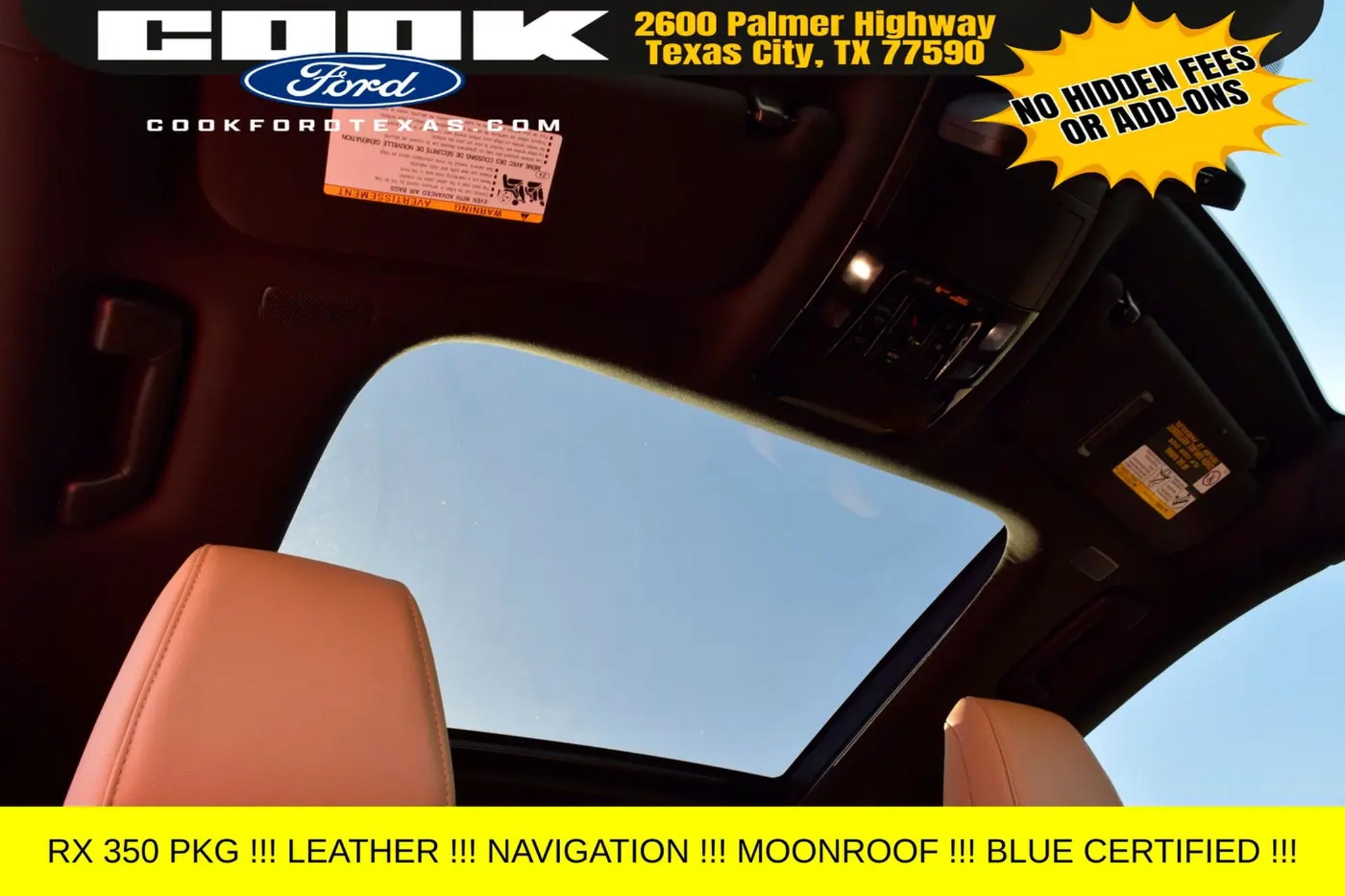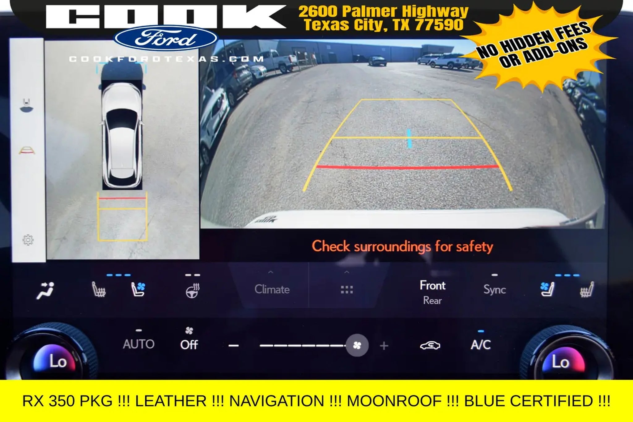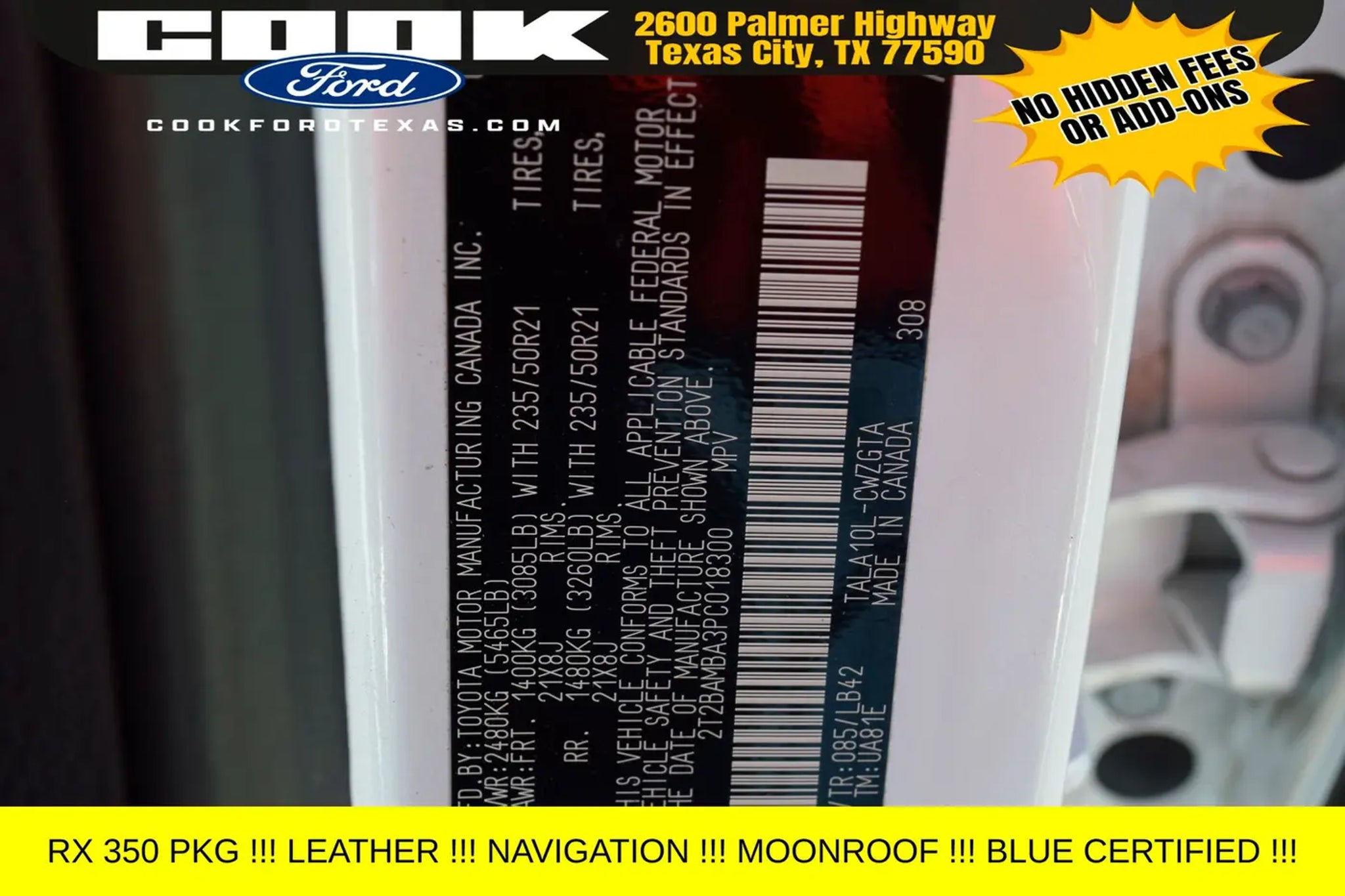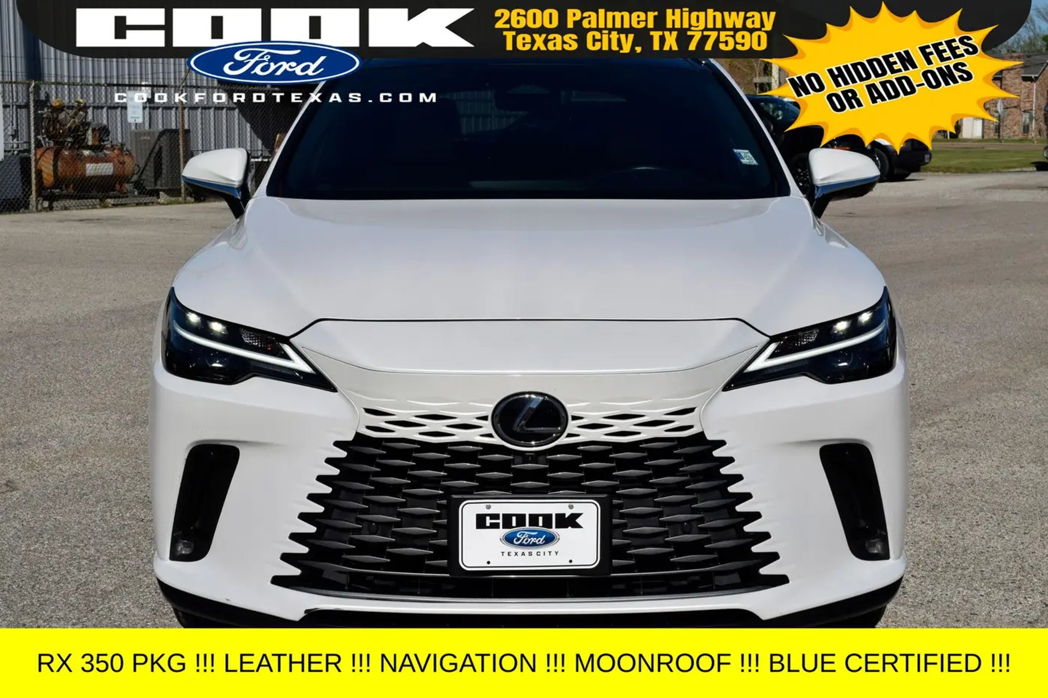 Certification Program Details: Ford Blue Advantage: Blue Certified * 139 Point Inspection * Transferable Warranty * Vehicle History * Warranty Deductible: $100 * Roadside Assistance * Limited Warranty: 3 Month/4,000 Mile (whichever comes first) after new car warranty expires or from certified purchase date * and 11,000 FordPass Rewards Points to use toward first maintenance visit This 2023 Lexus RX 350 Premium Plus is equipped with an impressive array of features that elevate the driving experience. Key highlights include: - Digital Key - Panoramic Glass Roof - Power Rear Door with Kick Sensor - Advanced Park - Panoramic View Monitor with Blind Spot Monitoring - Traffic Jam Assist Powered by a robust 2.4L I4 PDI Turbocharged engine delivering 275 horsepower and an impressive 29 MPG on the highway, this RX 350 Premium Plus offers the perfect blend of performance and efficiency. The 8-speed automatic transmission and front-wheel drive configuration provide a smooth and responsive driving experience, whether navigating city streets or cruising the open road. This Lexus RX 350 Premium Plus has been meticulously inspected and certified, giving you the peace of mind that comes with a trusted pre-owned vehicle. With a clean vehicle history and a limited warranty, you can drive with confidence, knowing that this RX 350 has been thoroughly vetted and is ready to provide you with years of reliable service. Imagine yourself behind the wheel of this stunning white Lexus RX 350 Premium Plus, surrounded by the luxurious interior and cutting-edge technology. The panoramic glass roof floods the cabin with natural light, creating an airy and inviting atmosphere, while the advanced safety features, such as the Panoramic View Monitor and Traffic Jam Assist, provide an added layer of protection for you and your passengers. Whether you're seeking a versatile family hauler, a comfortable commuter, or a premium driving experience, this 2023 Lexus RX 350 Premium Plus is the perfect choice. Schedule a test drive today and discover the exceptional quality and value that this certified pre-owned Lexus has to offer.