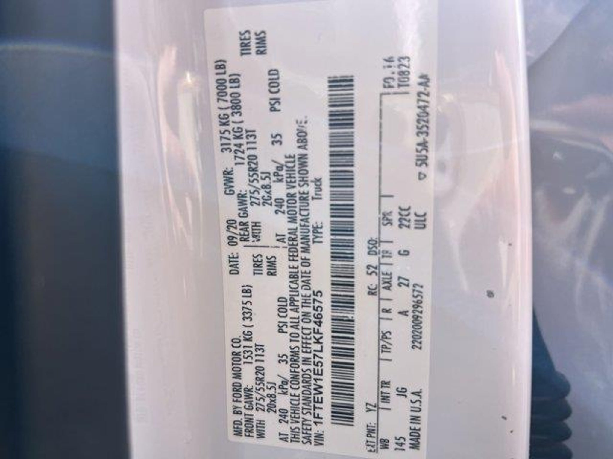 Details > 2020 Ford F-150 4X4 XL 4DR Supercrew 5.5 FT. SB For Sale in Sterling, VA Private Party Sellers Click here to place your ad now! You auta tell them you saw the ad in AutaBuy when you call or email. 1/25 2/25 3/25 4/25 5/25 6/25 7/25 8/25 9/25 10/25 11/25 12/25 13/25 14/25 15/25 16/25 17/25 18/25 19/25 20/25 21/25 22/25 23/25 24/25 25/25 View 25 Photos View All Add to My Garage Parked in Your Garage! Koons Ford Sterling Contact Seller: I would like to: Make Offer Check Availability Ask A Question Request More Photos Check Financing Options Send a copy of this message to me Add this listing to my garage Send to Mobile Mileage 94,381 Exterior Color White Doors 4 Engine 5.0L V8 Transmission 10 Speed Auto Stock # KSF251364B VIN 1FTEW1E57LKF46575 Estimated Monthly Payment $522 mo Apply Now J.J. Best Banc & Co. 2020 Ford F-150 4X4 XL 4DR Supercrew 5.5 FT. SB Description: · Mileage: 94,381 · Color: White Price: $30,000. Mileage 94,381 Exterior Color White Doors 4 Engine 5.0L V8 Transmission 10 Speed Auto Stock # KSF251364B VIN 1FTEW1E57LKF46575 Estimated Monthly Payment $522 mo Apply Now J.J. Best Banc & Co. Add to My Garage Parked in Your Garage! Message Seller Koons Ford Sterling Contact Seller: I would like to: Make Offer Check Availability Ask A Question Request More Photos Check Financing Options Send a copy of this message to me Add this listing to my garage Offered for sale by Koons Ford Sterling STERLING, VA Price: $30,000. Offered for sale by Koons Ford Sterling STERLING, VA [entire inventory] Ask Auta Intelligence The first collector-car AI built directly into a classic car marketplace What size tires does this run from the factory? What colors did these come in? What transmission options did these offer? What factory options were available on this model? How many F-150s were produced in White? What does this VIN number tell me? What kind of mileage do these get? Where is this located? What trim levels were available for this model? What's the typical towing capacity in this configuration? How many of these were produced? Can you show me more pickups/trucks for a similar price? Tell me the history on this model What engine options did these come with? How far is this from me? When was this model first introduced? How easy are parts to find for this model? Do you have a similar car to sell? List It Now! Questions about this car? Ask Auta Intelligence for production numbers, available options, etc. · Subscribe to AutaBuy! · Send a Gift Subscription Notice to a Friend