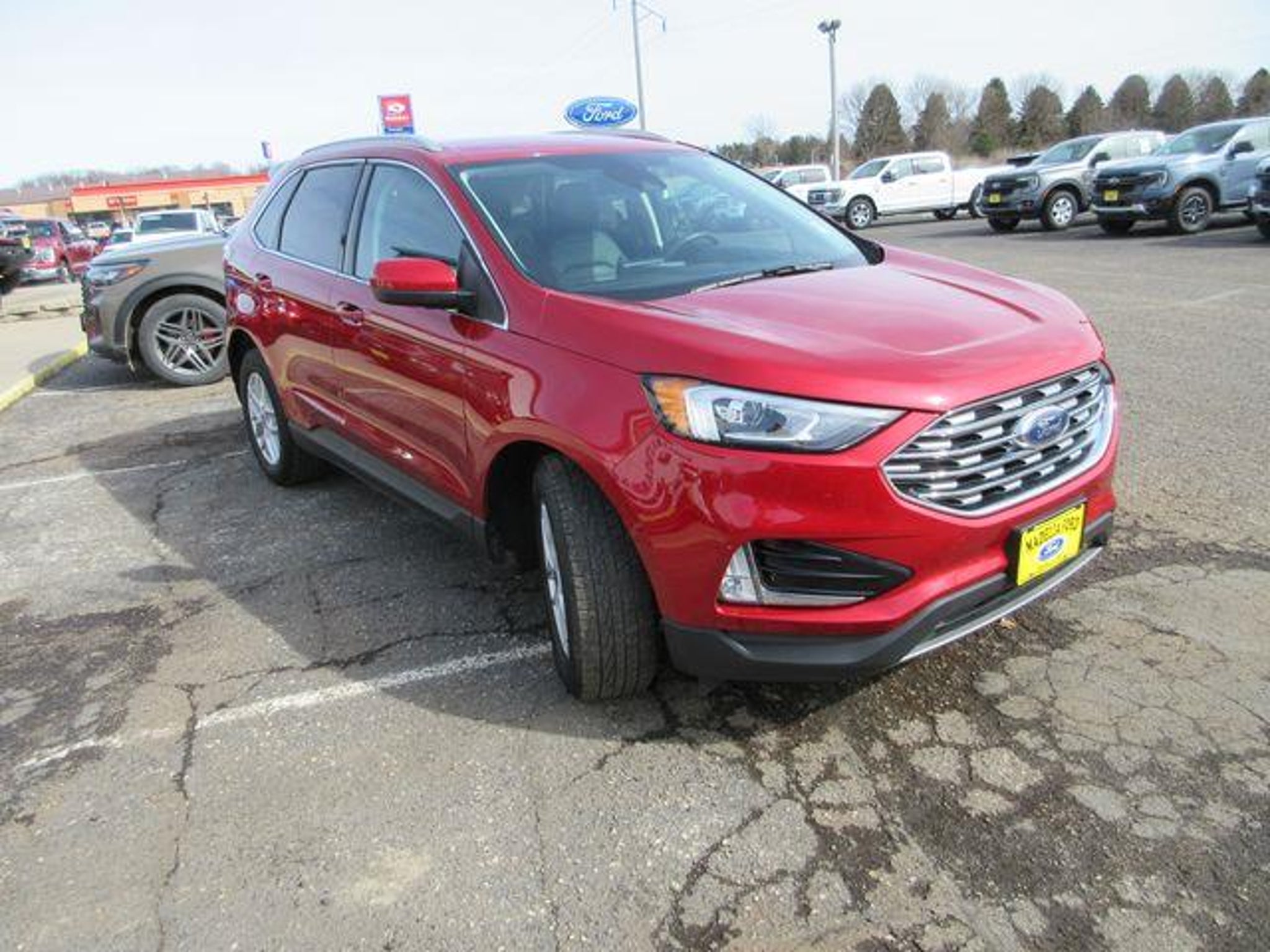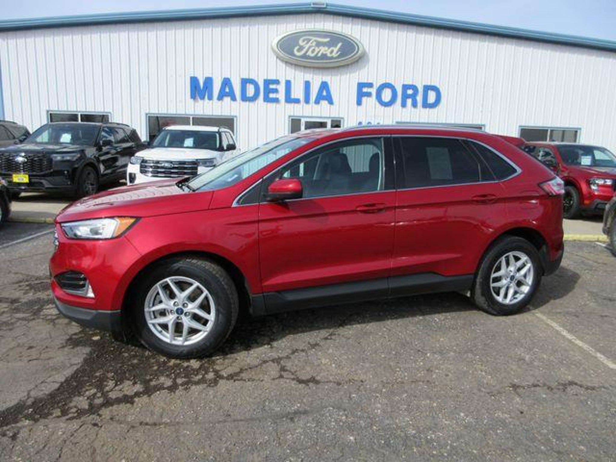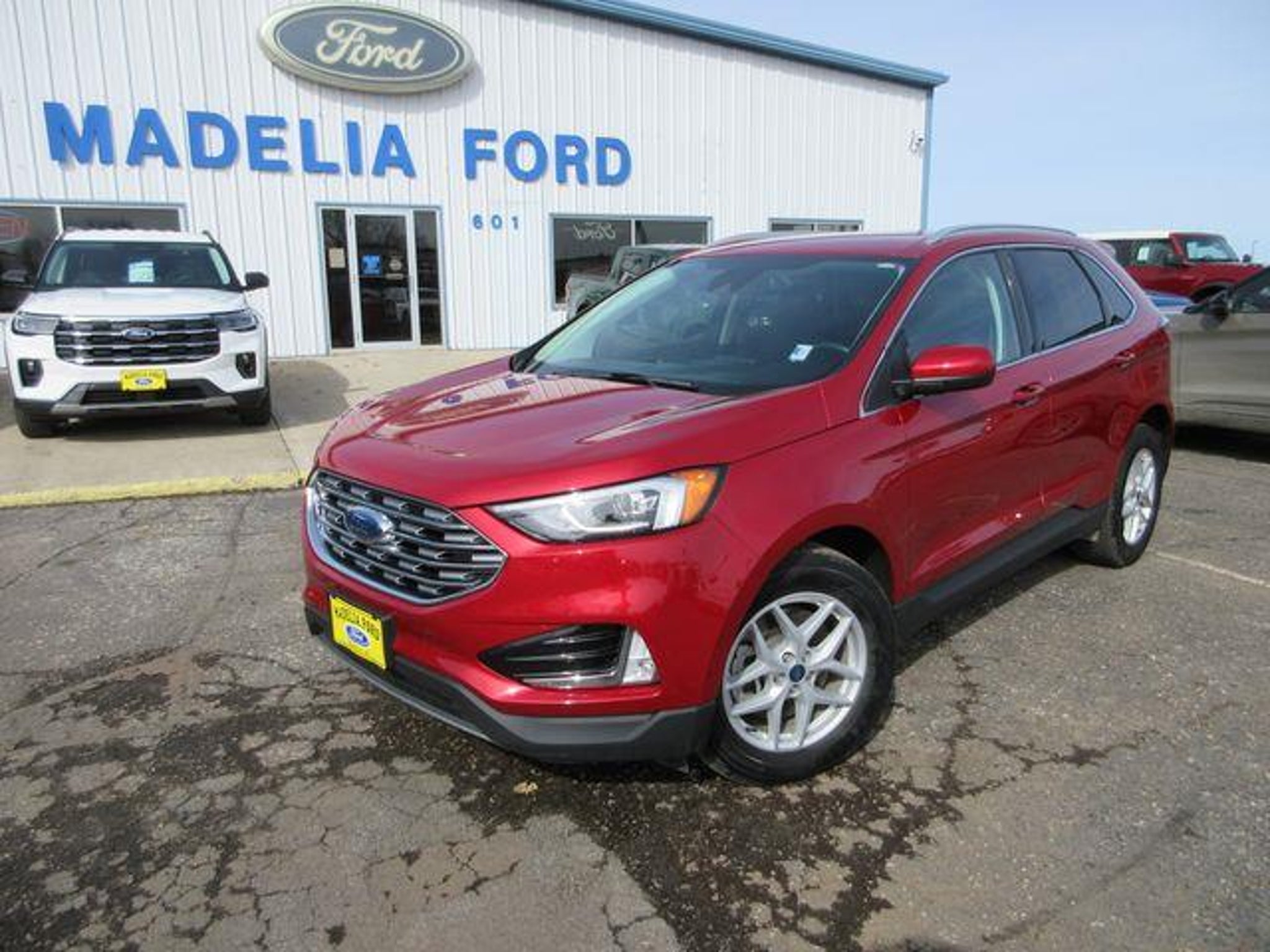 Recent Arrival! This Ford Edge is well equipped and includes these key features and benefits, Edge SEL, AWD, 110V/150W AC Power Outlet, Class II Trailer Tow Package, Convenience Package, Equipment Group 201A, Heated Steering Wheel, Perimeter Alarm, Power Liftgate, Remote Start System, Universal Garage Door Opener (UGDO), Wheels: 18 Sparkle Silver-Painted Aluminum, Wireless Charging Pad. Since 1945 at Madelia Ford it's about doing whatever it takes to make your experience a pleasant one. Whether you're coming in to buy or lease a new car or Certified Pre-Owned vehicle, or just need to get parts or service, you'll always get undivided attention from our entire staff. Going back FOUR Generations, everyone here at Madelia Ford is here to help your family, our friends and neighbors with a honest approach to buying a vehicle. Madelia Ford is proud to present you with another True Market Priced Pre-Owned Vehicle. This 2021 Ford Edge SEL is loaded with the following Factory Options:Class II Trailer Tow Package, Convenience Package (110V/150W AC Power Outlet, Perimeter Alarm, Power Liftgate, Remote Start System, Universal Garage Door Opener (UGDO), and Wireless Charging Pad), Equipment Group 201A, Edge SEL, AWD, Heated Steering Wheel, Wheels: 18 Sparkle Silver-Painted Aluminum, 3.80 Axle Ratio, 4-Wheel Disc Brakes, 6 Speakers, ABS brakes, ActiveX Seating Material Heated Bucket Seats, Air Conditioning, AM/FM radio: SiriusXM with 360L, Auto High-beam Headlights, Auto-dimming Rear-View mirror, Automatic temperature control, Brake assist, Bumpers: body-color, Compass, Delay-off headlights, Driver door bin, Driver vanity mirror, Dual front impact airbags, Dual front side impact airbags, Electronic Stability Control, Emergency communication system: SYNC 4 911 Assist, FordPass Connect, Four wheel independent suspension, Front anti-roll bar, Front Bucket Seats, Front Center Armrest w/Storage, Front dual zone A/C, Front fog lights, Front reading lights, Fully automatic headlights, Heated door mirrors, Heated front seats, Illuminated entry, Knee airbag, Low tire pressure warning, Occupant sensing airbag, Outside temperature display, Overhead airbag, Overhead console, Panic alarm, Passenger door bin, Passenger vanity mirror, Power door mirrors, Power driver seat, Power passenger seat, Power steering, Power windows, Radio: AM/FM Stereo/MP3 Capable, Rear anti-roll bar, Rear reading lights, Rear seat center armrest, Rear window defroster, Rear window wiper, Remote keyless entry, SiriusXM w/360L, Speed control, Speed-Sensitive