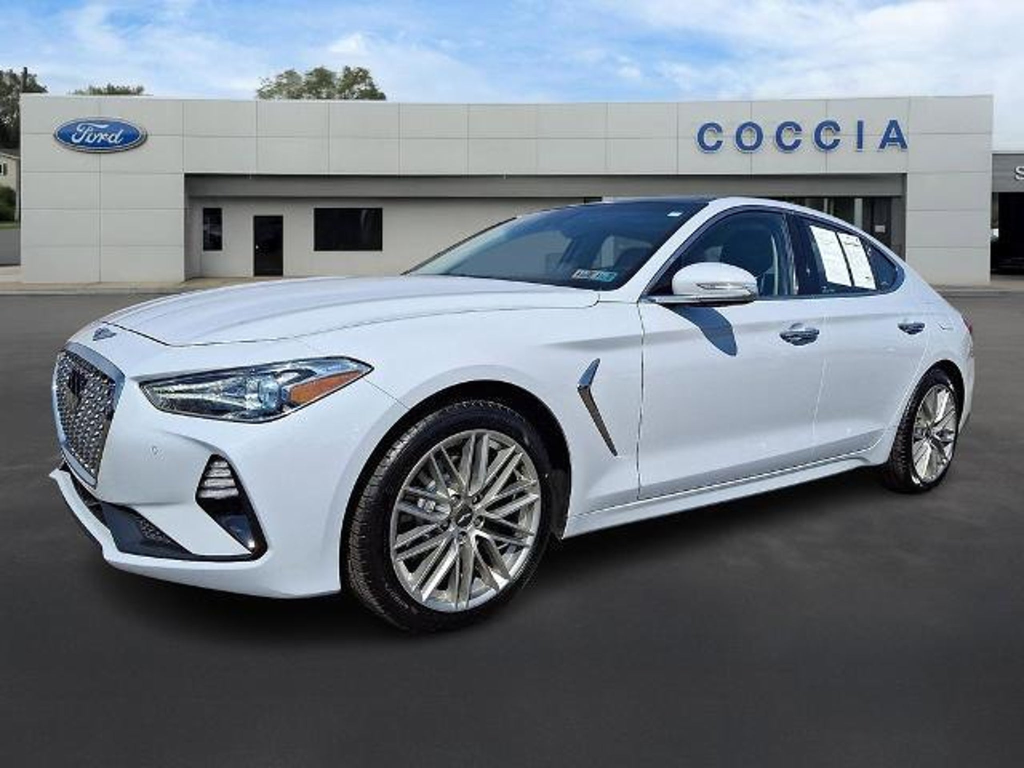 Owned Vehicles include a 3 month / 4,000 mile Ford limited warranty coverage*, 139 point inspection performed by a COCCIA factory trained technicians, Vehicle History report, 24/7 Roadside Assistance and 3 months of SirusXM Satellite Radio. COCCIA has been Family Owned and Operated for over 35 years. Certified. Odometer is 15212 miles below market average! 4D Sedan AWD 2.0L Turbocharged 8-Speed Automatic Recent Arrival! 20/27 City/Highway MPG Clean Vehicle History Report, Buy at Coccia and receive complimentary inspections for the life of your vehicle, Complimentary car wash with every service visit, Convenient Saturday service department hours available, Family owned and operated for over 35 years!, 12-Way Power Passenger Seat w/4-Way Power Lumbar, 14-Way Power Driver Seat w/ Cushion Extension, 6 Speakers, Air Conditioning, Alloy wheels, AM/FM radio: SiriusXM, Android Auto & Apple CarPlay, Auto High-beam Headlights, Auto-dimming Rear-View mirror, Automatic temperature control, Brake assist, Bumpers: body-color, Delay-off headlights, Door & Console Aluminum Trim, Driver door bin, Driver vanity mirror, Electronic Stability Control, Elite Package, Emergency communication system: Genesis Connected Services, Exterior Parking Camera Rear, Forward/Reverse Parking Distance Warning, Four wheel independent suspension, Front Bucket Seats, Front Center Armrest, Front dual zone A/C, Front Passenger Seat Walk-In Device, Front reading lights, Fully automatic headlights, Garage door transmitter: HomeLink, Genesis Logo Approach Lights, Heated door mirrors, Heated front seats, Heated Multi-Adjustable Front Bucket Seats, Illuminated entry, Integrated Memory System (IMS), Integrated Navigation System, Leather Seating Surfaces, Leatherette Seating Surfaces, Option Group 02, Outside temperature display, Overhead console, Panic alarm, Passenger door bin, Passenger vanity mirror, Power door mirrors, Power driver seat, Power Folding Auto-Dimming Outside Mirrors, Power passenger seat, Power steering, Power Tilt & Telescopic Steering Wheel, Power windows, Premium First Aid Kit, Radio: AM/FM/SiriusXM/HD Audio System, Radio: AM/FM/SiriusXM/HD Radio Lexicon Audio Sys, Rear Bumper Applique, Rear reading lights, Rear seat center armrest, Rear window defroster, Remote keyless entry, Reversible Cargo Tray, Security system, Speed control, Speed-Sensitive Wipers, Split folding rear seat, Steering wheel mounted audio controls, Tachometer, Telescoping steering wheel, Tilt steering wheel, Traction control, Trip computer, Turn signal indicat