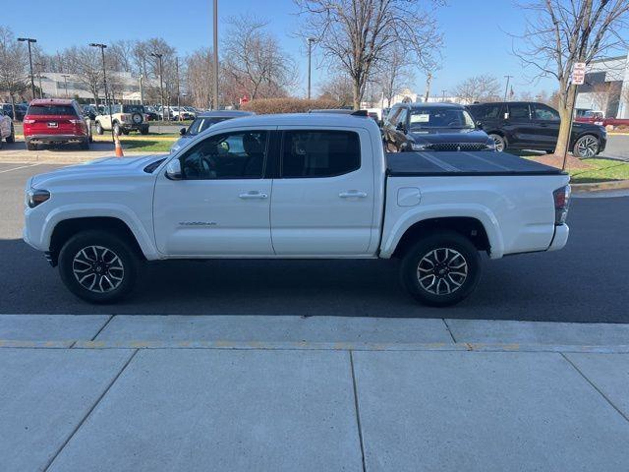 Discover the ultimate blend of capability, technology, and style with this exceptional 2021 Toyota Tacoma TRD Sport V6 4WD. Boasting a powerful 3.5L V6 engine, this Tacoma delivers impressive performance and efficiency, with 278 horsepower and up to 22 MPG on the highway. - **BLIND SPOT WARNING** - **APPLE CARPLAY / ANDROID AUTO** - **WIRELESS CHARGING PAD** - **LANE KEEPING SYSTEM** - **REVERSE SENSING SYSTEM** - **TECHNOLOGY PACKAGE** Elevate your driving experience with the TRD Sport's advanced features, including the Technology Package that adds Rear Parking Assist Sonar, Blind Spot Monitor with Rear Cross Traffic Alert, and a sleek mesh front grille. The hard tri-fold tonneau cover provides secure cargo storage, while the LED fog lamps with black bezel add a touch of rugged style. Comfort and convenience are key in this well-equipped Tacoma. Enjoy the benefits of automatic climate control, a power-adjustable driver's seat, and a smart key system with push-button start. The premium audio system with SiriusXM radio and Apple CarPlay/Android Auto integration keep you connected on the go. Safety is a top priority, with a suite of advanced driver-assistance technologies, including the Blind Spot Monitor, Rear Cross-Traffic Alert, and Lane Keeping Assist. You can drive with confidence, knowing you're protected by a comprehensive airbag system and Toyota's renowned safety engineering. Backed by the remainder of the factory warranty, this 2021 Toyota Tacoma TRD Sport V6 4WD is a true standout in the midsize truck segment. Experience the perfect blend of capability, technology, and style by scheduling a test drive today. TED BRITT 4 LIFE: (lifetime complimentary coverage) - Powertrain Coverage - Battery Replacement - Virginia State Inspection *To qualify, see Dealer for details Ted Britt Ford of Chantilly 4175 Auto Park Cir, Chantilly, VA 20151 Phone: This vehicle is at the Chantilly location. *All prices exclude tax, tags, and Dealer Processing Fee.
