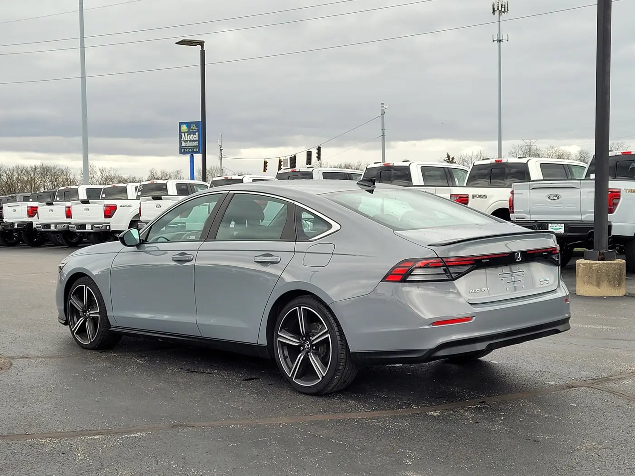 Recent Arrival!Gray 2023 Honda Accord Hybrid Sport 4D Sedan FWD 2.0L 16V DOHC eCVT2.0L 16V DOHC, 4-Wheel Disc Brakes, 8 Speakers, ABS brakes, Adaptive Cruise Control: Adaptive Cruise Control (ACC) with Low-Speed Follow, Air Conditioning, Alloy wheels, AM/FM radio, Apple CarPlay/Android Auto, Auto High-beam Headlights, Automatic temperature control, Brake assist, Bumpers: body-color, Compass, Delay-off headlights, Driver door bin, Driver vanity mirror, Dual front impact airbags, Dual front side impact airbags, Electronic Stability Control, Emergency communication system: HondaLink, Exterior Parking Camera Rear, Fabric Seat Trim, Four wheel independent suspension, Front anti-roll bar, Front Bucket Seats, Front Center Armrest, Front dual zone A/C, Front reading lights, Fully automatic headlights, Illuminated entry, Knee airbag, Lane departure: Lane Keeping Assist System (LKAS) active, Leather Shift Knob, Leather steering wheel, Low tire pressure warning, Occupant sensing airbag, Outside temperature display, Overhead airbag, Overhead console, Panic alarm, Passenger door bin, Passenger vanity mirror, Power door mirrors, Power driver seat, Power moonroof, Power steering, Power windows, Radio data system, Radio: 180-Watt Audio System, Rear anti-roll bar, Rear reading lights, Rear seat center armrest, Rear side impact airbag, Rear window defroster, Remote keyless entry, Security system, Speed control, Speed-sensing steering, Speed-Sensitive Wipers, Split folding rear seat, Spoiler, Steering wheel mounted audio controls, Telescoping steering wheel, Tilt steering wheel, Traction control, Trip computer, Variably intermittent wipers, Wheels: 19 x 8.5J Berlina Black, 2.0L 16V DOHC.This vehicle has gone through 146 point Mark Williams Auto Group inspection!!Stop Searching, Start Calling Today!
