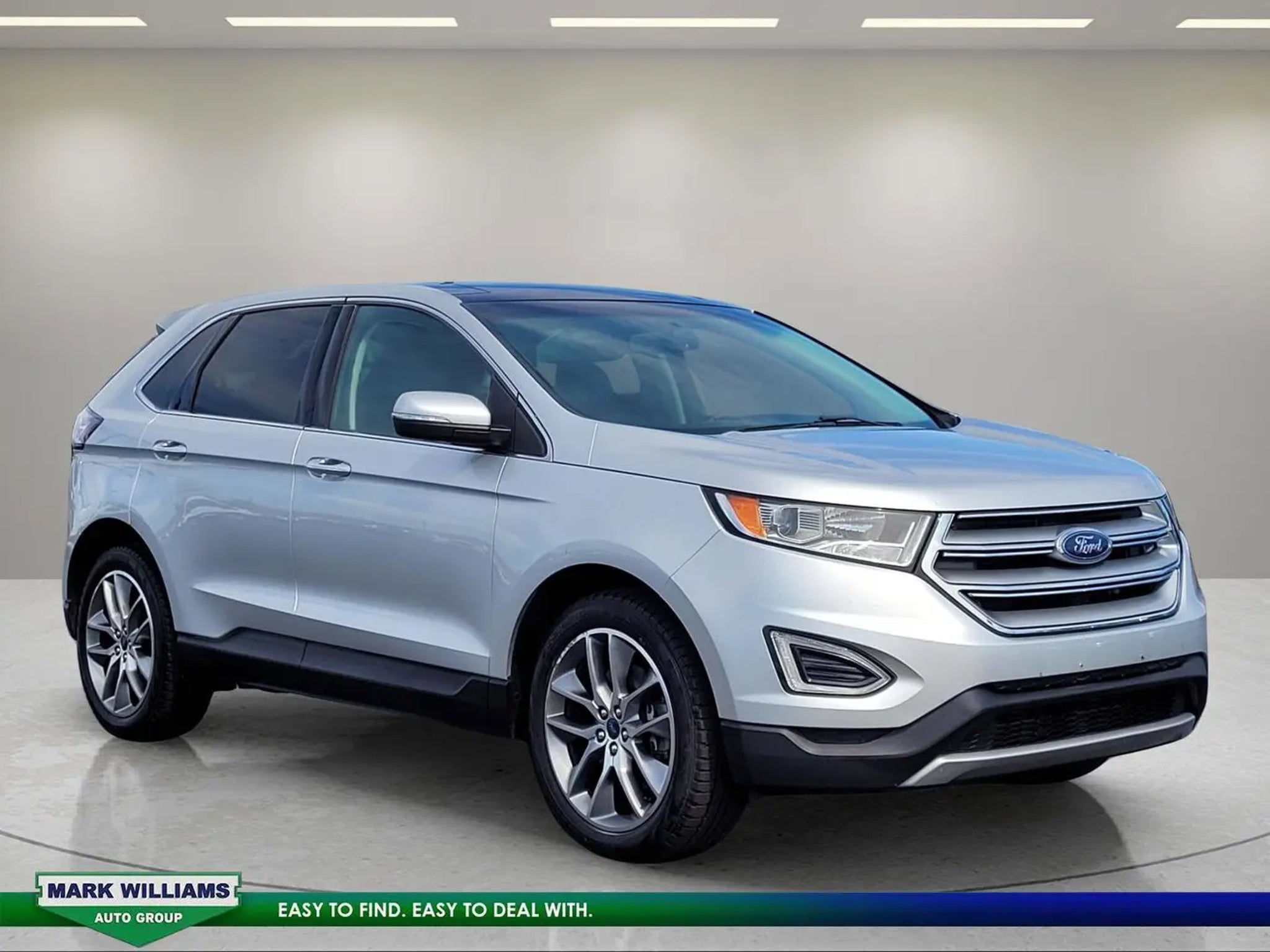Recent Arrival!Ingot Silver 2015 Ford Edge Titanium 4D Sport Utility AWD EcoBoost 2.0L I4 GTDi DOHC Turbocharged VCT 6-Speed Automatic**ONE OWNER***, **CLEAN AUTOCHECK VEHICLE HISTORY REPORT**, Alloy Wheels, Aluminum Wheels, Bluetooth, Leather Seats, Edge Titanium, 4D Sport Utility, EcoBoost 2.0L I4 GTDi DOHC Turbocharged VCT, 6-Speed Automatic, AWD, Ingot Silver, Ebony Leather, Auto-Dimming Driver's Sideview Mirror, BLIS Blind Spot Information System, Equipment Group 301A, Heated Rear-Seats, Heated Steering Wheel, Integrated SiriusXM Traffic & Travel Link, Panoramic Vista Roof, Perforated Leather Trimmed Heated/Cooled Buckets, Power Converter 110V Outlet, Radio: AM/FM Stereo w/Single CD/Navigation, Remote Start System, SiriusXM Radio, Technology Package, 12 Speakers, 3.16 Axle Ratio, 4-Wheel Disc Brakes, ABS brakes, Air Conditioning, All-Weather Floor Mats, Alloy wheels, AM/FM radio: SiriusXM, AM/FM Stereo w/Single CD Player, Auto-dimming Rear-View mirror, Automatic temperature control, Brake assist, Bumpers: body-color, CD player, Compass, Delay-off headlights, Driver door bin, Driver vanity mirror, Dual front impact airbags, Dual front side impact airbags, Electronic Stability Control, Emergency communication system, Exterior Parking Camera Rear, Four wheel independent suspension, Front anti-roll bar, Front Bucket Seats, Front Center Armrest w/Storage, Front dual zone A/C, Front reading lights, Fully automatic headlights, Garage door transmitter, Heated door mirrors, Heated front seats, Illuminated entry, Knee airbag, Leather Shift Knob, Leather-Trimmed Heated Sport Bucket Seats, Low tire pressure warning, Memory seat, Occupant sensing airbag, Outside temperature display, Overhead airbag, Overhead console, Panic alarm, Passenger door bin, Passenger vanity mirror, Power door mirrors, Power driver seat, Power Liftgate, Power passenger seat, Power steering, Power windows, Premium audio system: Sony, Rear anti-roll bar, Rear Parking Sensors, Rear reading lights, Rear seat center armrest, Rear window defroster, Rear window wiper, Remote keyless entry, Security system, Speed control, Speed-Sensitive Wipers, Split folding rear seat, Spoiler, Steering wheel mounted audio controls, SYNC w/MyFord Touch, Tachometer, Telescoping steering wheel, Tilt steering wheel, Traction control, Trip computer, Turn signal indicator mirrors, Variably intermittent wipers, Wheels: 19 Aluminum Premium Painted Luster Nickel, Wheels: 20 Premium Polished Aluminum, Edge Titanium, 4D Sport Utility, EcoBoost 2.0L I4 GTDi DOHC Turbocharged VCT, 6-Speed Automatic, AWD, Ingot Silver, Ebony Leather, Auto-Dimming Driver's Sideview Mirror, BLIS Blind Spot Information System, Equipment Group 301A, Heated Rear-Seats, Heated Steering Wheel, Integrated SiriusXM Traffic & Travel Link, Panoramic Vista Roof, Perforated Leather Trimmed Heated/Cooled Buckets, Power Converter 110V Outlet, Radio: AM/FM Stereo w/Single CD/Navigation, Remote Start System, SiriusXM Radio, Technology Package.This vehicle has gone through 146 point Mark Williams Auto Group inspection!!Stop Searching, Start Calling Today!
