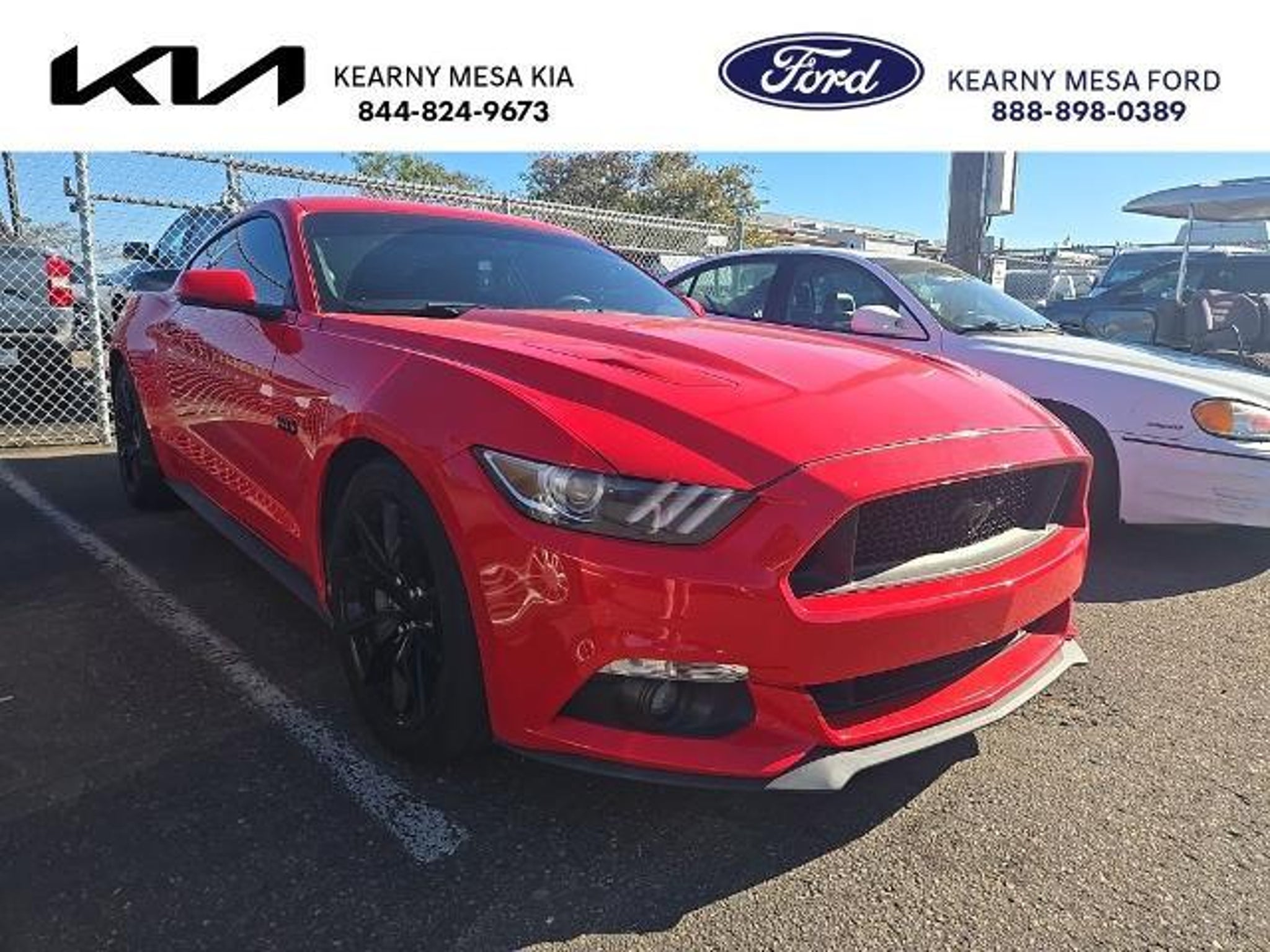We are driving excitement! Shift your expectations and come in for a test drive today! Then this stunning sporty little beauty is waiting to cruise the curves and speed off into the sunset. Recent Arrival! 2017 Ford Mustang Race Red GT Premium Mustang GT Premium, 2D Coupe, 5.0L V8 Ti-VCT, 6-Speed Automatic with Select-Shift, RWD, Race Red, Ebony Cloth. Odometer is 4805 miles below market average! Just imagine yourself behind the wheel of this beauty! Imagine all the possibilities for new adventure this vehicle can provide. Now get down here to Kearny Mesa Ford and Kia today to test drive it!