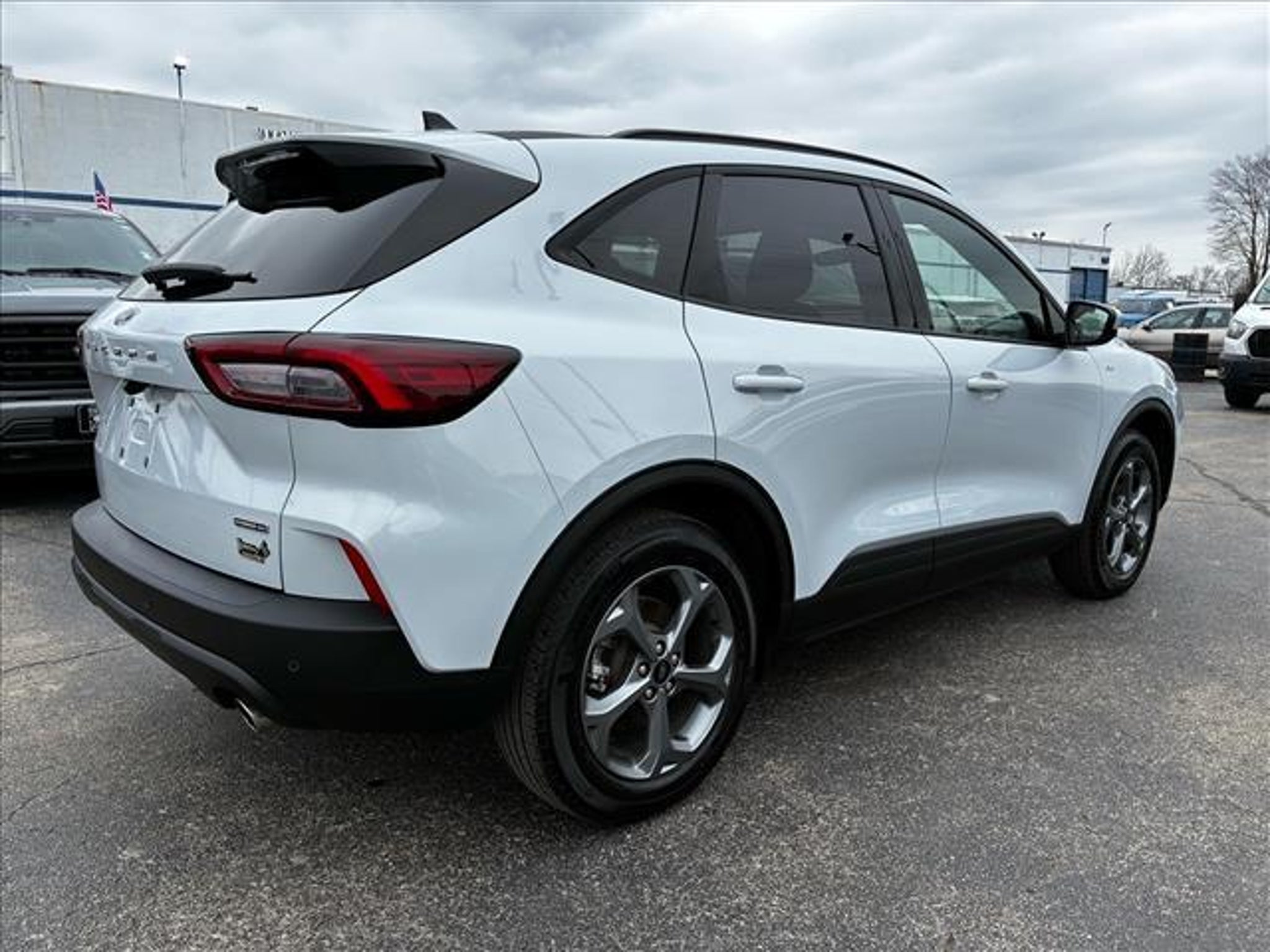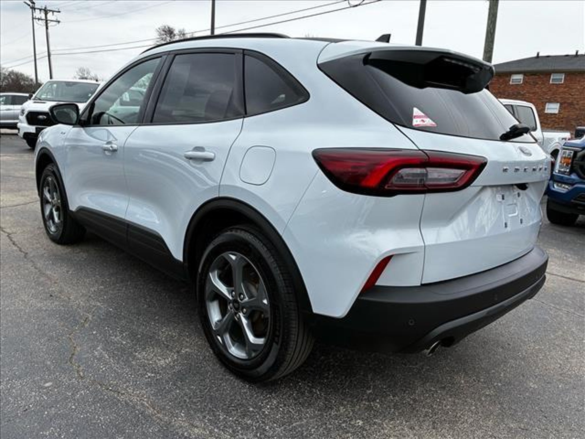 This vehicle is a 2025 Ford Escape Hybrid ST-Line Select, with an all wheel drive system and a 2.5 liter 4 cylinder engine. It has a white exterior and a black interior, and has been driven 24,512 miles. It has a fuel economy of 42 mpg in the city and 36 mpg on the highway, and it has been rated with a 5 out of 5 stars for crash test safety. It also features blind spot sensor, hill start assist, and on demand four wheel drive as some of its features. The carfax report is available for this vehicle, showing that it has been driven 24,512 miles and has a crash test rating of 5 out of 5 stars. Additionally, this car has an attractive design and modern features that make it an attractive option for anyone looking for a reliable car. Contact Details: Town and Country Ford - Louisville, 6015 Preston Hwy, Louisville, KY, 40219, tbradley@tacford.com, (502) 964-8131.