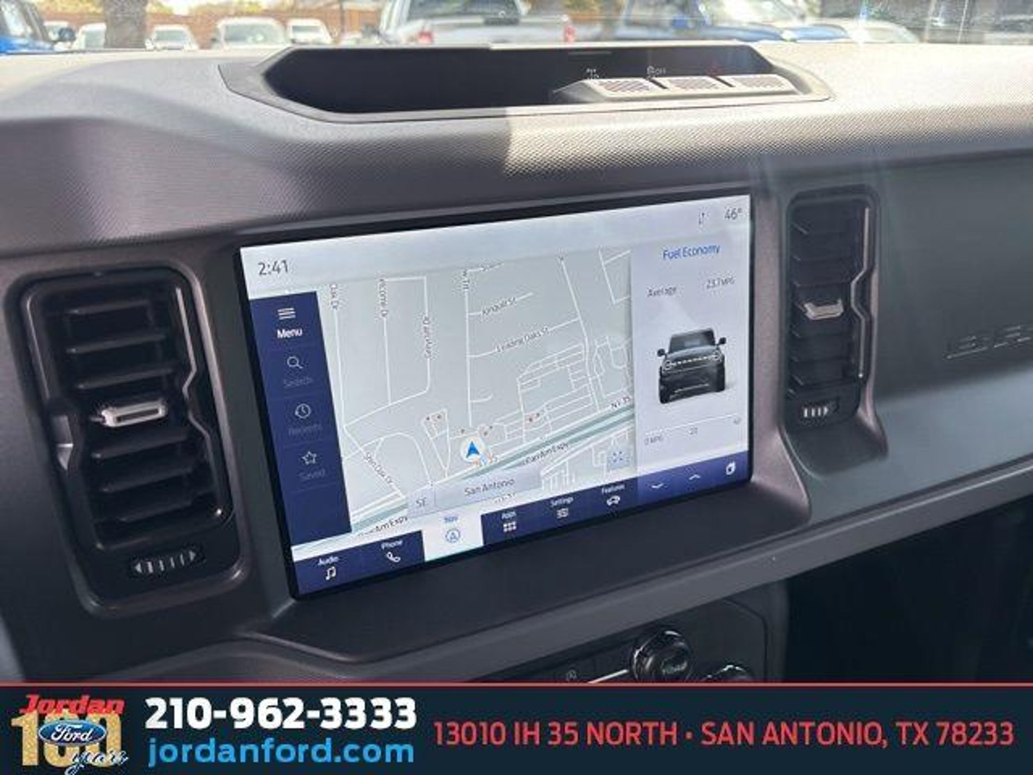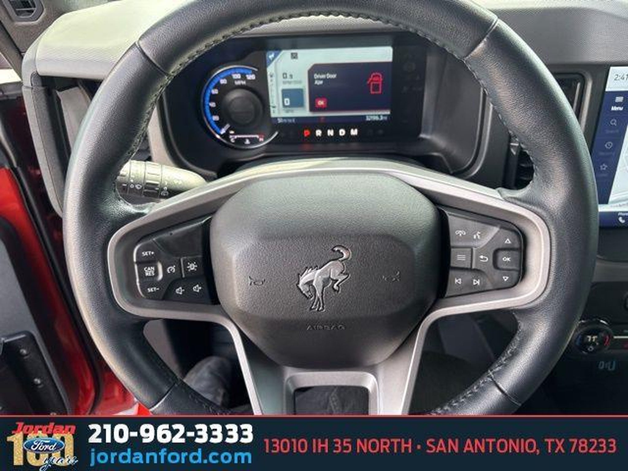 Recent Arrival! CARFAX One-Owner. Hot Pepper Red Metallic Tinted Clearcoat 2024 Ford Bronco Big Bend 4WD 2.3L EcoBoost I-4 10-Speed Automatic 2-Door Intelligent Access w/Lock/Unlock, 4-Wheel Disc Brakes, 7 Speakers, ABS brakes, Air Conditioning, Alloy wheels, AM/FM radio: SiriusXM with 360L, AM/FM Stereo, Ambient Footwell Lighting, Auto High-Beam Headlamps, Auto High-beam Headlights, Auto-Dimming Interior Rear-View Mirror, BLIS Blind Spot Information System, Brake assist, Compass, Connected Navigation, Convertible HardTop, Convertible roof lining, Delay-off headlights, Dr & Pass Illuminated Sliding Visor Vanity Mirrors, Driver door bin, Driver vanity mirror, Dual front impact airbags, Dual front side impact airbags, Dual Smart Charging USB Ports, Dual-Zone Electronic Automatic Temperature Control, Electronic Stability Control, Emergency communication system: 911 Assist, Equipment Group 222A Mid Package, Exterior Parking Camera Rear, First Aid Kit, Front anti-roll bar, Front Bucket Seats, Front Center Armrest, Front fog lights, Front License Plate Bracket, Front reading lights, Front Row Heated Seats, Front wheel independent suspension, Fully automatic headlights, Glass rear window, Heated door mirrors, Illuminated entry, Integrated roll-over protection, Lane-Keeping System, Leather Shift Knob, Low tire pressure warning, Marine Grade Vinyl Bucket Seats, Occupant sensing airbag, Outside temperature display, Overhead airbag, Overhead console, Panic alarm, Passenger door bin, Passenger vanity mirror, Powder Coated Tube Step, Power door mirrors, Power Outlet - Back Side of Center Floor Console, Power steering, Power windows, Pre-Collision Assist w/Automatic Emergency Braking, Radio data system, Rear Parking Sensors, Rear window defroster, Rear window wiper, Rear-View Camera, Remote keyless entry, Security system, SiriusXM Radio w/360L, Speed control, Split folding rear seat, Steering wheel mounted audio controls, SYNC 4, Tachometer, Telescoping steering wheel, Tilt steering wheel, Traction control, Trip computer, Variably intermittent wipers, Wheels: 17 Carbonized Gray-Painted Aluminum. Call (210)653-3673 with any questions or to schedule a test drive! Jordan Ford has proudly served drivers in San Antonio, Texas, and surrounding areas like New Braunfels, Boerne, and Schertz for over 100 years. Since 1919, we?ve been dedicated to providing a simple, transparent car-buying experience with our Simple, Easy Menu Pricing?no hidden fees or surprises. Visit Jordan Ford, conveniently located at 13010 IH 35 Nor