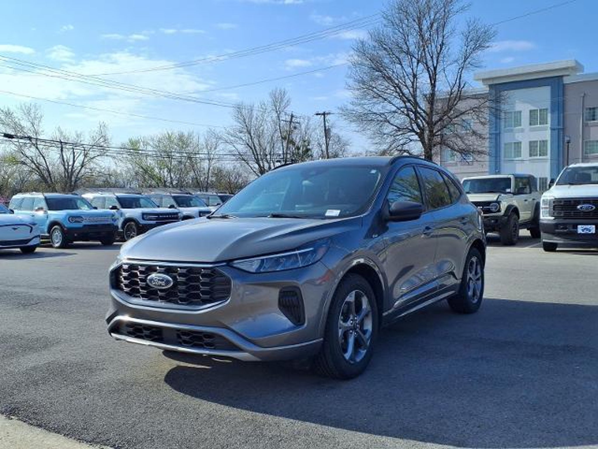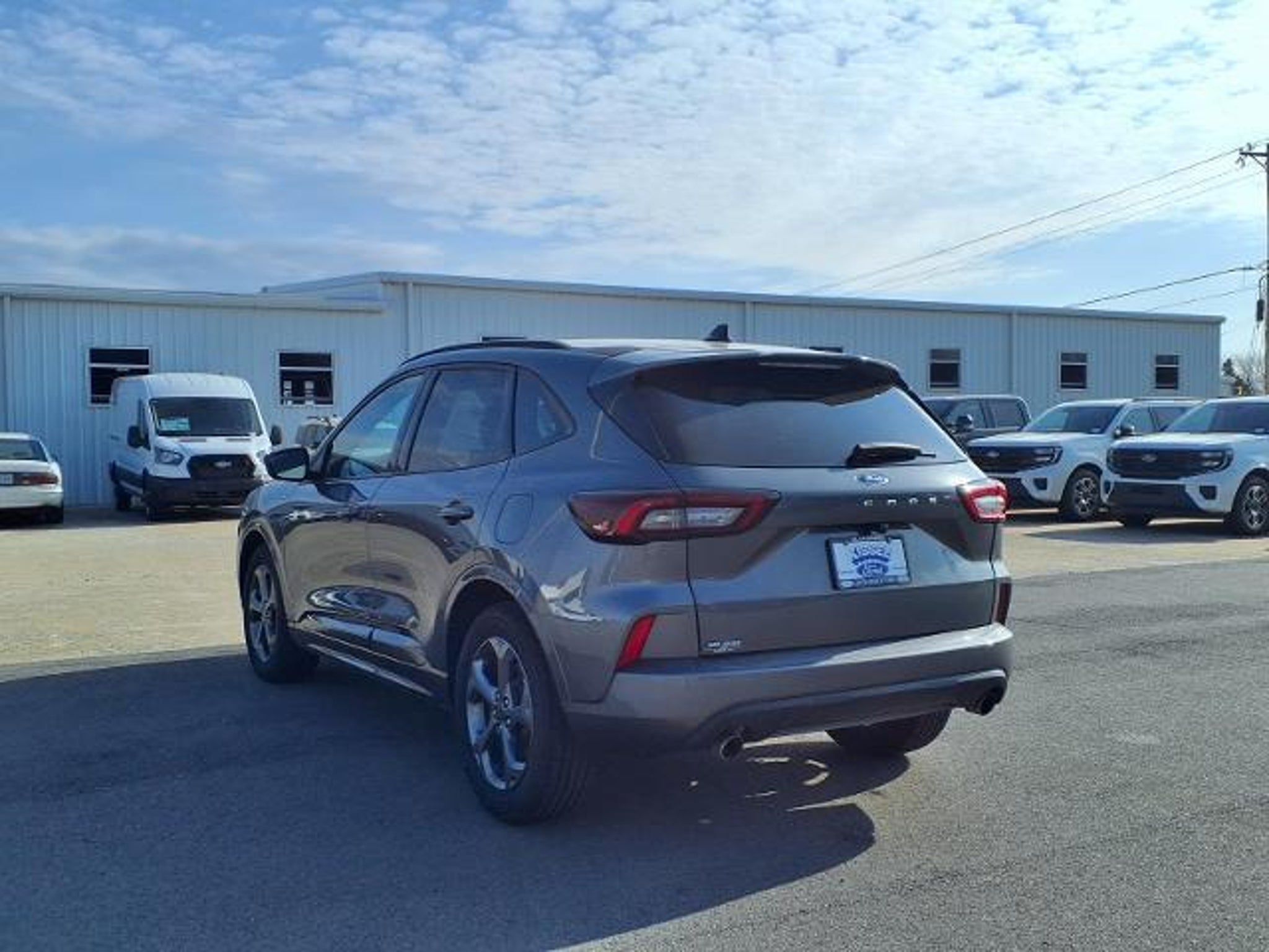This 2024 Ford Escape ST-Line in Gray Metallic comes with the following features: 1.5L EcoBoost 8-Speed Automatic FWD Equipment Group 300A, 3.81 Axle Ratio, 4-Wheel Disc Brakes, 6 Speakers, ABS brakes, Air Conditioning, Alloy wheels, AM/FM radio: SiriusXM, AM/FM Stereo, Auto High-beam Headlights, Automatic temperature control, Brake assist, Bumpers: body-color, Compass, Delay-off headlights, Driver door bin, Driver vanity mirror, Dual front impact airbags, Dual front side impact airbags, Electronic Stability Control, Emergency communication system: SYNC 4 911 Assist, Exterior Parking Camera Rear, FordPass Connect, Four wheel independent suspension, Front & Rear Floor Liners w/Carpet Mats, Front anti-roll bar, Front Bucket Seats, Front Center Armrest, Front dual zone A/C, Front License Plate Bracket, Front reading lights, Fully automatic headlights, Illuminated entry, Knee airbag, Low tire pressure warning, Occupant sensing airbag, Outside temperature display, Overhead airbag, Overhead console, Panic alarm, Passenger door bin, Passenger vanity mirror, Power door mirrors, Power driver seat, Power Liftgate, Power steering, Power windows, Radio data system, Rear anti-roll bar, Rear reading lights, Rear seat center armrest, Rear window defroster, Rear window wiper, Remote keyless entry, Roof rack: rails only, Speed control, Speed-sensing steering, Speed-Sensitive Wipers, Split folding rear seat, Spoiler, Sport steering wheel, Steering wheel mounted audio controls, SYNC 4, Tachometer, Telescoping steering wheel, Tilt steering wheel, Traction control, Trip computer, Variably intermittent wipers, Vinyl/Cloth Front Sport Contour Bucket Seats, and Wheels: 18 Rock Metallic Painted Aluminum. Gray Metallic 2024 Ford Escape ST-Line FWD 8-Speed Automatic 1.5L EcoBoost Recent Arrival! 27/34 City/Highway MPG Come see Kissee!