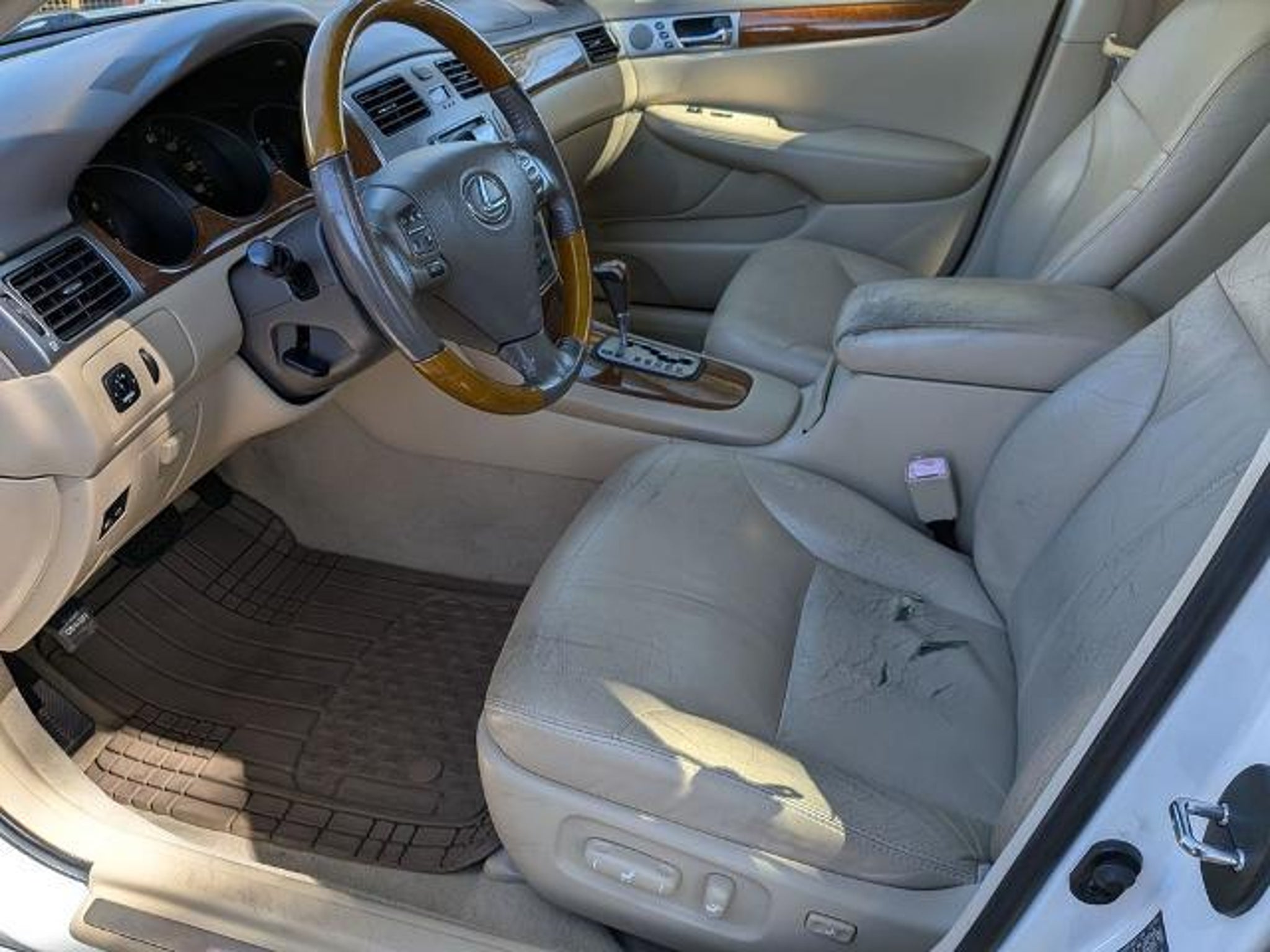 Odometer is 9165 miles below market average! Here are more details on this Crystal White 2005 Lexus ES with Ash Leather interior trim at Sandy Sansing Dealerships. Come see the largest inventory on the Gulf coast. Clean CarFax, Local Trade, Sunroof, *** LOCAL TRADE ****, Ash Leather, Power moonroof. Ash Leather, Power moonroof, 16 x 6.5 Alloy Wheels, 4-Wheel Disc Brakes, 7 Speakers, ABS brakes, Air Conditioning, Alloy wheels, AM/FM radio, Anti-whiplash front head restraints, Auto-dimming door mirrors, Auto-dimming Rear-View mirror, Automatic temperature control, Bodyside moldings, Bumpers: body-color, Cassette, CD player, Compass, Delay-off headlights, Driver door bin, Driver vanity mirror, Dual front impact airbags, Dual front side impact airbags, Four wheel independent suspension, Front anti-roll bar, Front Bucket Seats, Front Center Armrest w/Storage, Front dual zone A/C, Front fog lights, Front reading lights, Fully automatic headlights, Garage door transmitter: HomeLink, Genuine wood console insert, Genuine wood dashboard insert, Genuine wood door panel insert, Heated door mirrors, Illuminated entry, Leather Seat Trim, Leather Shift Knob, Leather steering wheel, Memory seat, Occupant sensing airbag, Outside temperature display, Overhead airbag, Overhead console, Panic alarm, Passenger door bin, Passenger vanity mirror, Power door mirrors, Power driver seat, Power passenger seat, Power steering, Power windows, Premium AM/FM/Cassette w/Single In Dash CD, Radio data system, Rear anti-roll bar, Rear seat center armrest, Rear window defroster, Remote keyless entry, Security system, Speed control, Speed-sensing steering, Sport steering wheel, Steering wheel mounted audio controls, Tachometer, Tilt steering wheel, Trip computer, and Variably intermittent wipers.
