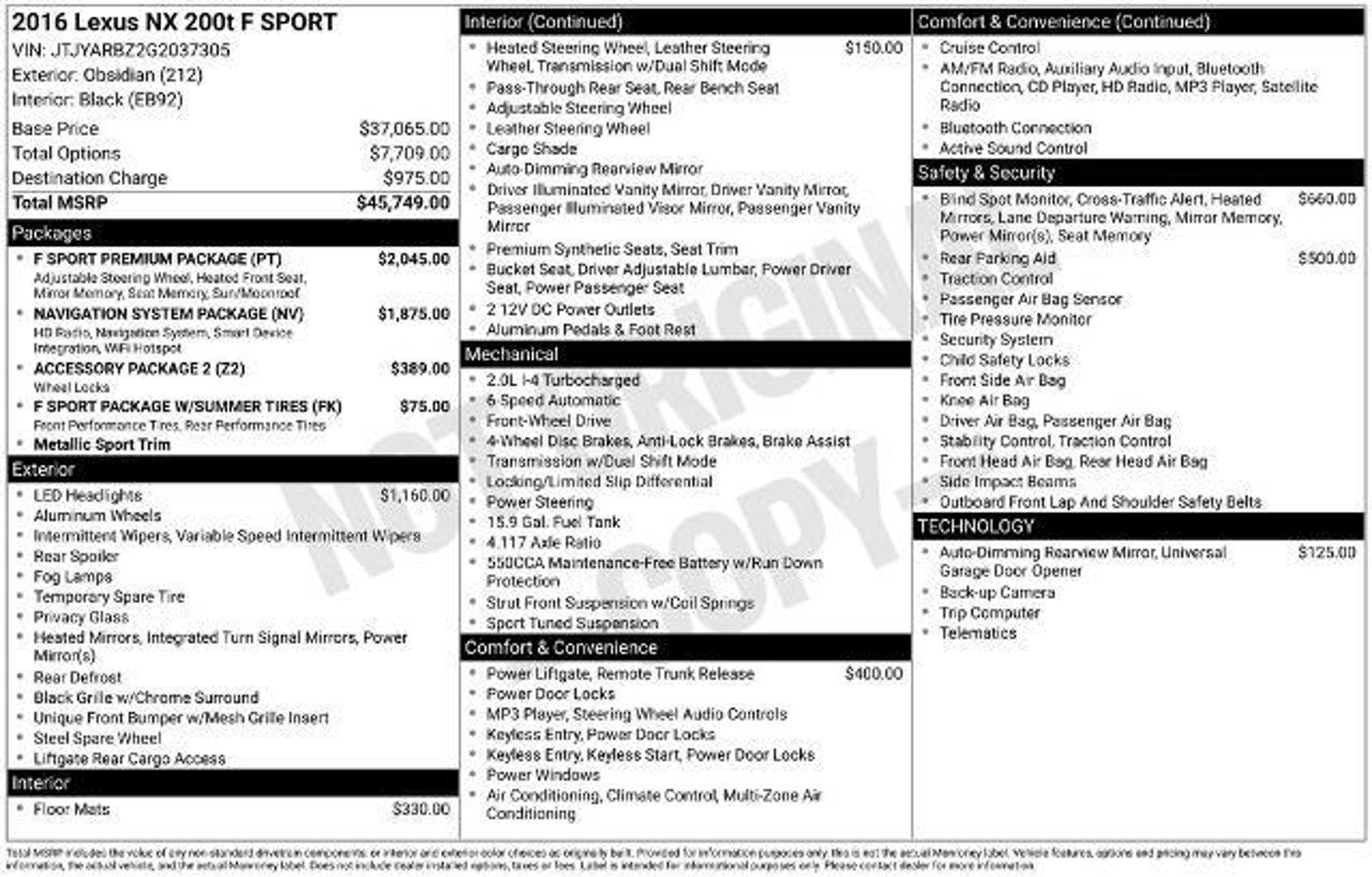 At Lamarque Ford, our customers come first?Every Deal, Every Day, All the Time. That's why we're honored as Best of New Orleans and celebrated for Customer Satisfaction by J.D. Power and Ford Motor Company. All Vehicles are subject to an $895 Prep and Conditioning Fee at time of Purchase. This stunning 2016 Lexus NX 200t offers an impressive array of premium features that elevate the driving experience. Boasting a sleek black exterior and a well-appointed interior, this crossover SUV is a testament to Lexus' commitment to exceptional craftsmanship and attention to detail. - F SPORT PREMIUM PACKAGE - NAVIGATION SYSTEM PACKAGE - LED HEADLAMPS W/O AUTO HIGH BEAMS - ELECTROCHROMIC OUTSIDE MIRRORS W/MEMORY - INTUITIVE PARKING ASSIST - POWER BACK DOOR - ACCESSORY PACKAGE 2 - HEATED PERFORATED LEATHER TRIMMED STEERING WHEEL - F SPORT PACKAGE W/SUMMER TIRES The NX 200t's 2.0L 16V DOHC engine, paired with a 6-speed automatic transmission and front-wheel drive, delivers a responsive and efficient performance, with an EPA-estimated 22 city/28 highway MPG. The vehicle's advanced safety features, including a Blind Spot Monitor, Rear Cross Traffic Alert, and Intuitive Parking Assist, provide added peace of mind on the road. Step inside the NX 200t and you'll be greeted by a wealth of premium amenities, including a state-of-the-art navigation system, a premium audio system, and a power-adjustable driver's seat with memory function. The heated and ventilated front seats, along with the power tilt-and-slide moonroof, create a truly luxurious driving experience. This Lexus NX 200t is the perfect blend of style, performance, and technology, making it an exceptional choice for the discerning buyer. With its low mileage of just 89,025, this vehicle is a fantastic opportunity to own a well-maintained, high-quality crossover SUV. We look forward to you being part of the family and remember always feel free to visit our full-service dealership at 3101 Williams Blvd, Kenner, LA 70065 or Call Lamarque Ford at (504) 443-2500 to schedule a test drive today!