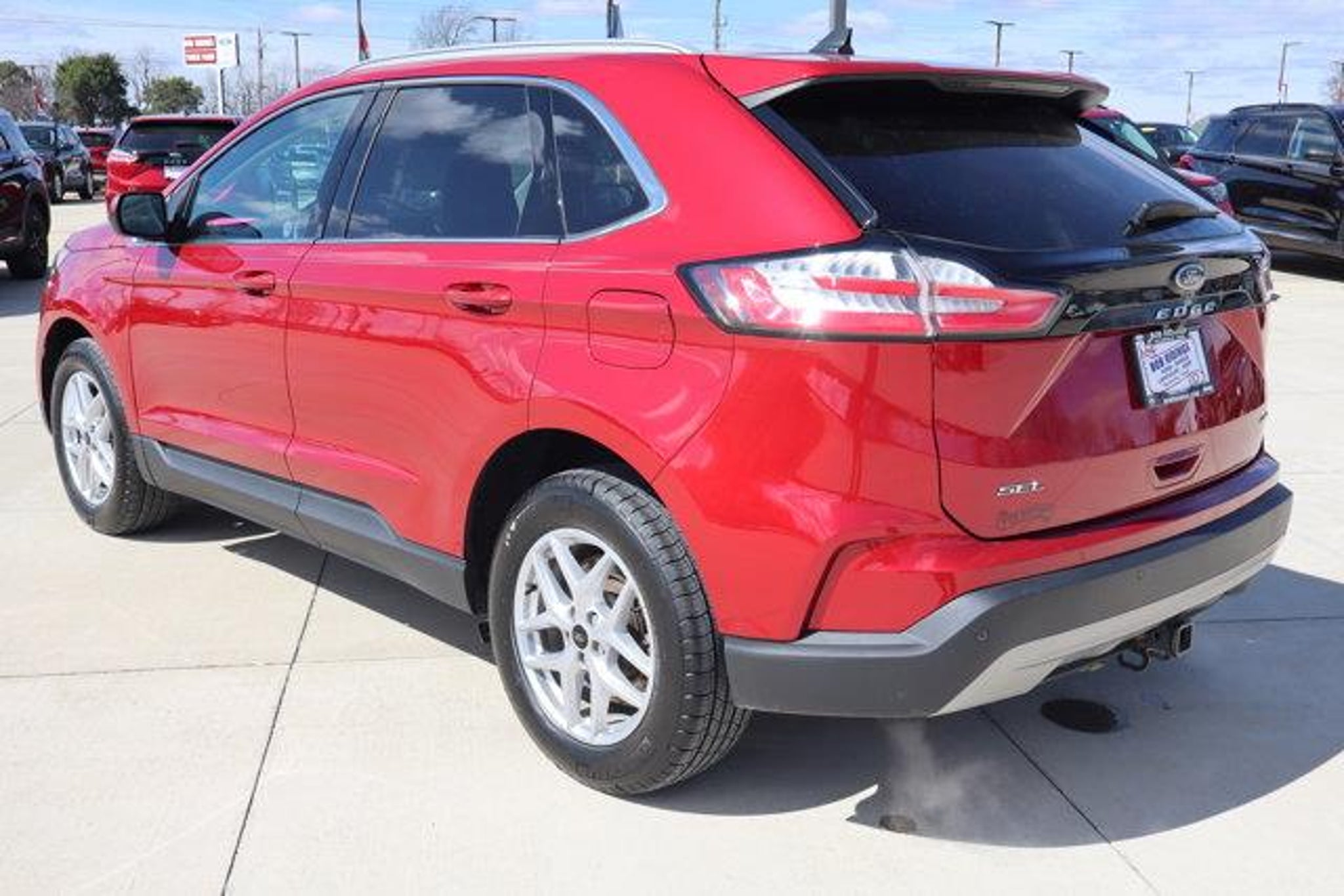 2024 Ford Edge SEL Rapid Red Metallic Tinted Clearcoat AWD 8-Speed Automatic EcoBoost 2.0L I4 GTDi DOHC Turbocharged VCT110V/150W AC Power Outlet, Class II Trailer Tow Package, Convenience Package, Equipment Group 201A, Fog Lamps w/Iconic Silver Bezel, Perimeter Alarm, Power Liftgate, Remote Start System, Universal Garage Door Opener (UGDO), Wireless Charging Pad.Odometer is 4258 miles below market average! 21/28 City/Highway MPG