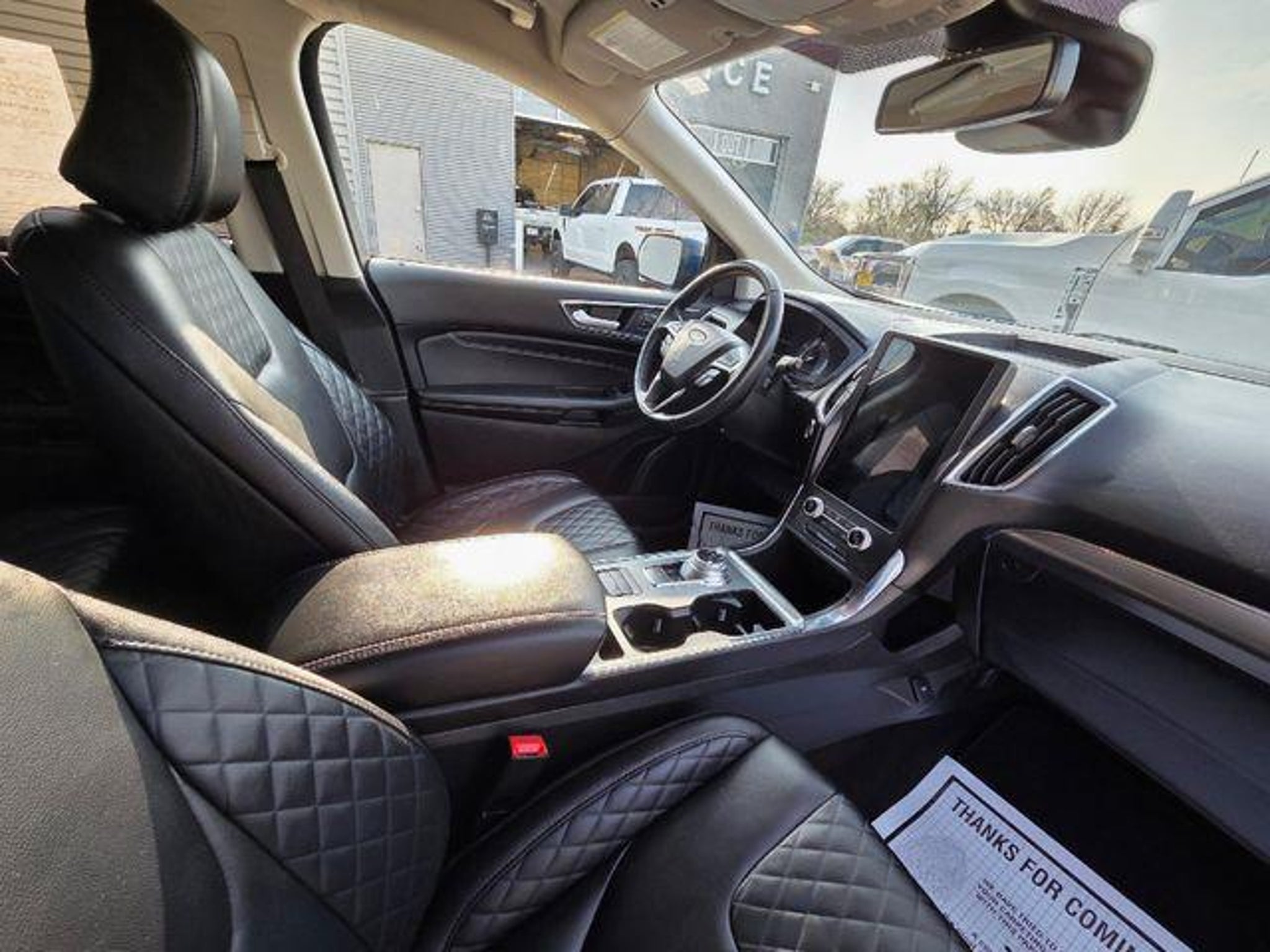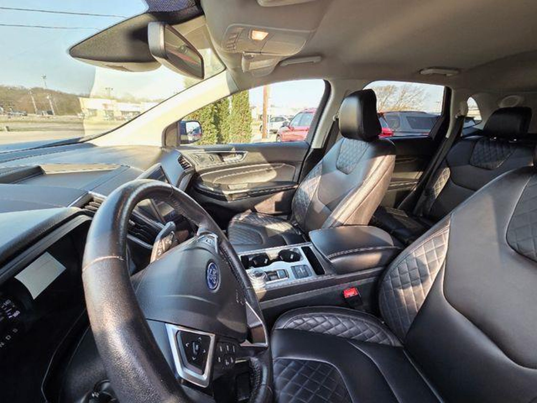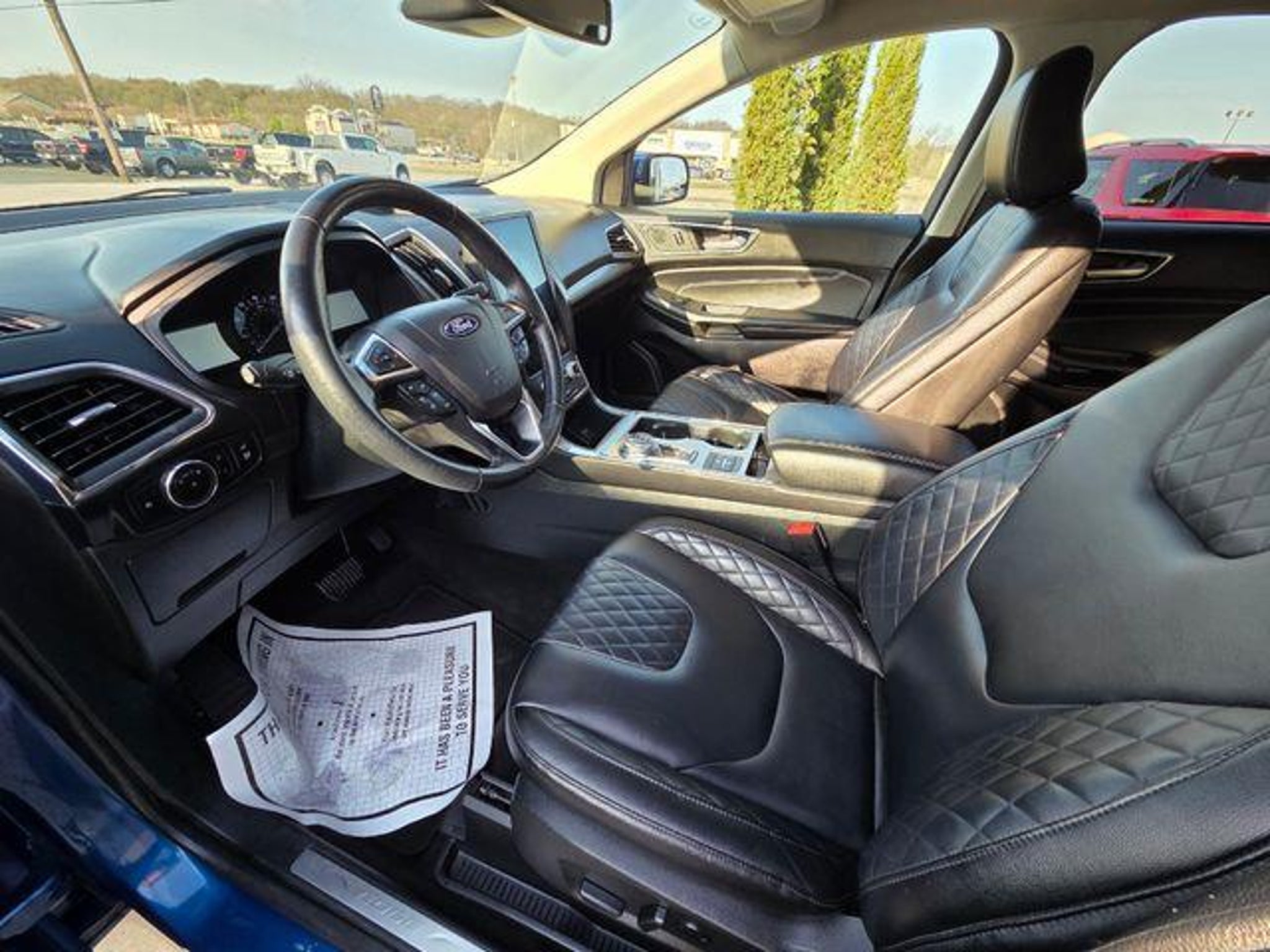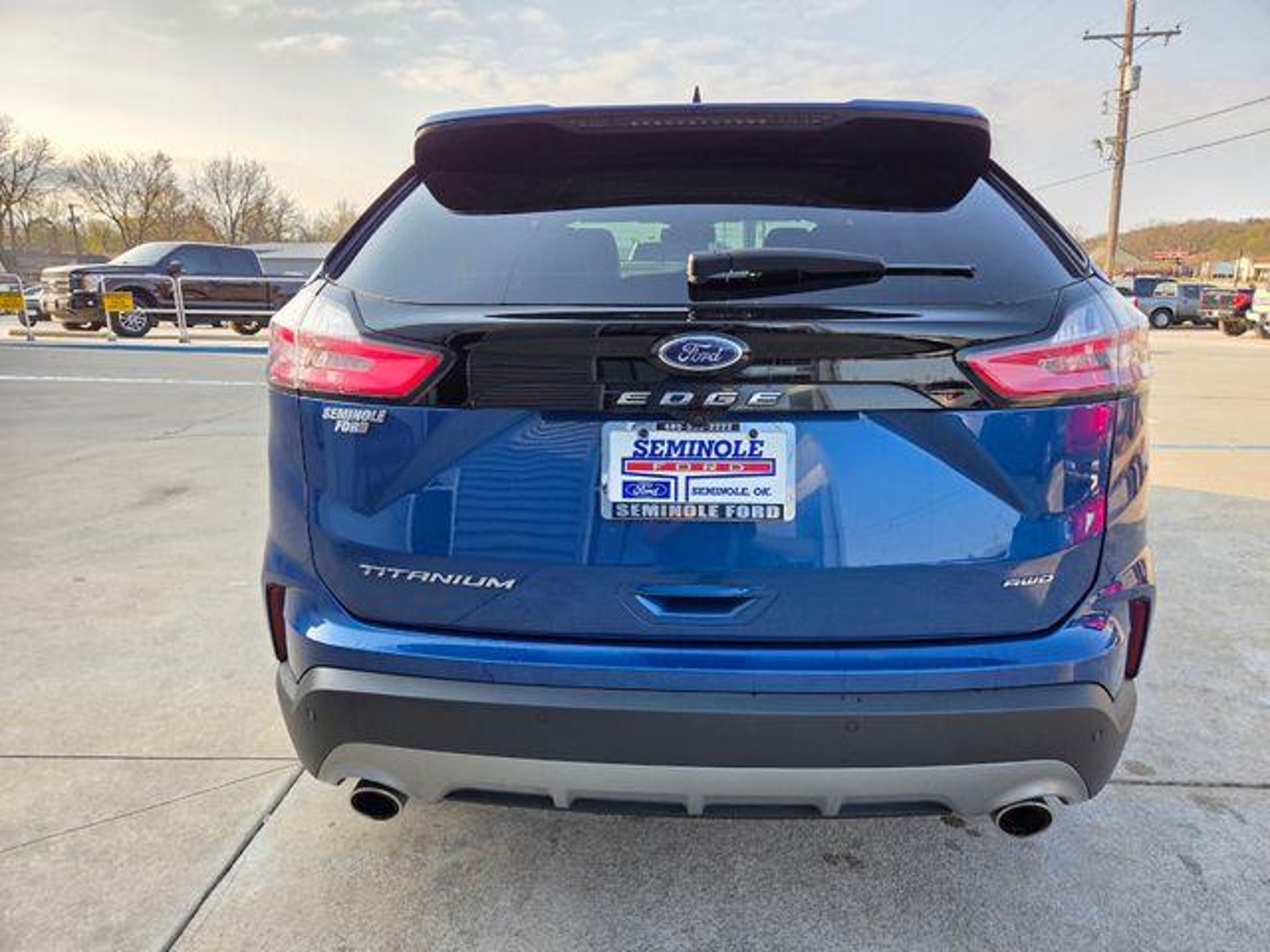 2024 Ford Edge Titanium ONE OWNER, LEATHER SEATS, HEATED SEATS, BLUETOOTH, REAR VIEW CAMERA, REMOTE START, KEYLESS ENTRY, SATELLITE RADIO, ALL WHEEL DRIVE, AWD. EcoBoost 2.0L I4 GTDi DOHC Turbocharged VCT AWD 21/28 City/Highway MPG Equipment Group 300A, AWD, 12 Speakers, 3.80 Axle Ratio, 4-Wheel Disc Brakes, ABS brakes, ActiveX-Trimmed Heated Sport Bucket Seats, Air Conditioning, Alloy wheels, AM/FM radio: SiriusXM with 360L, Auto High-beam Headlights, Auto-dimming Rear-View mirror, Automatic temperature control, Brake assist, Bumpers: body-color, Compass, Delay-off headlights, Driver door bin, Driver vanity mirror, Dual front impact airbags, Dual front side impact airbags, Electronic Stability Control, Emergency communication system: SYNC 4 911 Assist, FordPass Connect, Four wheel independent suspension, Front anti-roll bar, Front Bucket Seats, Front Center Armrest w/Storage, Front dual zone A/C, Front fog lights, Front reading lights, Fully automatic headlights, Garage door transmitter, Heated door mirrors, Heated front seats, Heated steering wheel, Illuminated entry, Knee airbag, Leather steering wheel, Low tire pressure warning, Memory seat, Occupant sensing airbag, Outside temperature display, Overhead airbag, Overhead console, Panic alarm, Passenger door bin, Passenger vanity mirror, Power door mirrors, Power driver seat, Power Liftgate, Power passenger seat, Power steering, Power windows, Radio: B&O Sound System by Bang & Olufsen, Rain sensing wipers, Rear anti-roll bar, Rear reading lights, Rear seat center armrest, Rear window defroster, Rear window wiper, Remote keyless entry, Security system, SiriusXM w/360L, Speed control, Speed-Sensitive Wipers, Split folding rear seat, Spoiler, Steering wheel mounted audio controls, SYNC 4A w/Enhanced Voice Recognition, Tachometer, Telescoping steering wheel, Tilt steering wheel, Traction control, Trip computer, Turn signal indicator mirrors, Variably intermittent wipers, and Wheels: 19 Luster Nickel-Painted Aluminum. IF WE DON'T SERVE YOU, WE DON'T DESERVE YOU! Seminole Ford proudly serving the following communities Seminole, Shawnee, Prague, Tecumseh, Wewoka, Holdenville, Wetumka, Ada, Norman, Stroud, Okemah & Meeker.