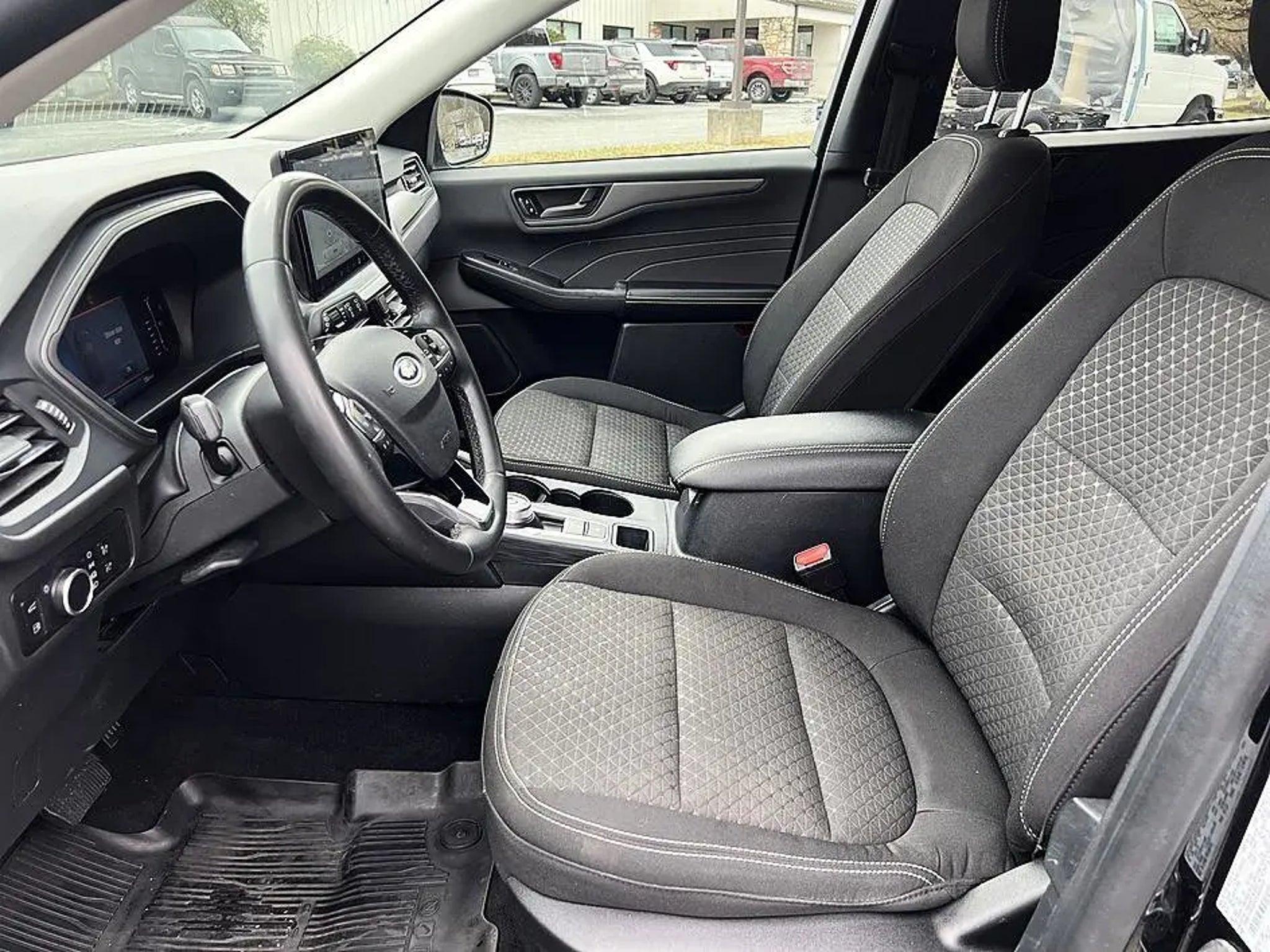 Recent Arrival! The 2023 Ford Escape Hybrid Active is a compact SUV that combines fuel efficiency, modern technology, and everyday practicality. It is powered by a 2.5-liter four-cylinder hybrid system paired with electric motors producing about 192 horsepower, matched with an electronically controlled CVT and available front- or all-wheel drive for smooth and efficient performance . The Escape Hybrid delivers excellent fuel economy of around 39 41 mpg combined, making it ideal for both city commuting and longer drives . Inside, it offers seating for five with a flexible interior, sliding second-row seats, and up to 60 cubic feet of cargo space for added versatility . Technology features include Ford's SYNC® 4 infotainment system with an 8-inch touchscreen, Apple CarPlay® and Android AutoTM, Bluetooth connectivity, and available digital displays, while comfort features include dual-zone climate control and a power liftgate . Safety is enhanced with Ford Co-Pilot360TM, offering driver-assist features like lane-keeping assist, pre-collision braking, and blind-spot monitoring. With its efficient hybrid powertrain, comfortable ride, and modern tech, the 2023 Ford Escape Hybrid Active delivers a well-balanced and economical SUV experience.. Black Metallic AWD CARFAX One-Owner. Clean CARFAX.2023 Ford Escape Hybrid Active