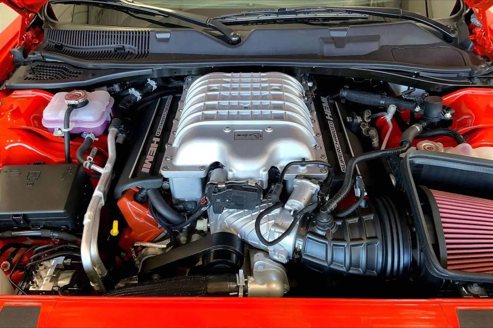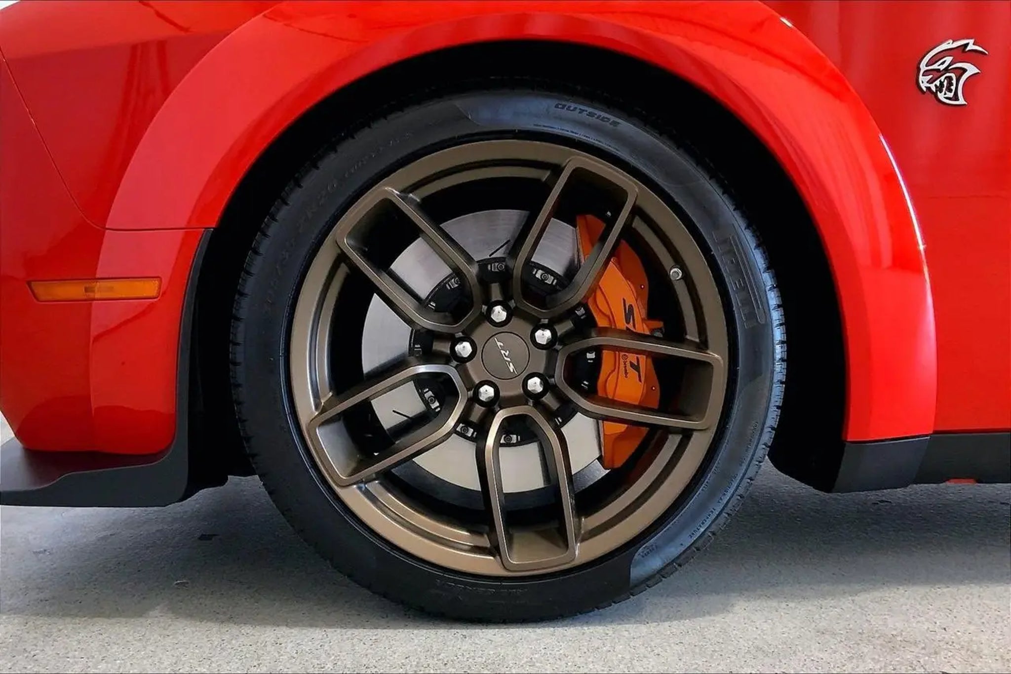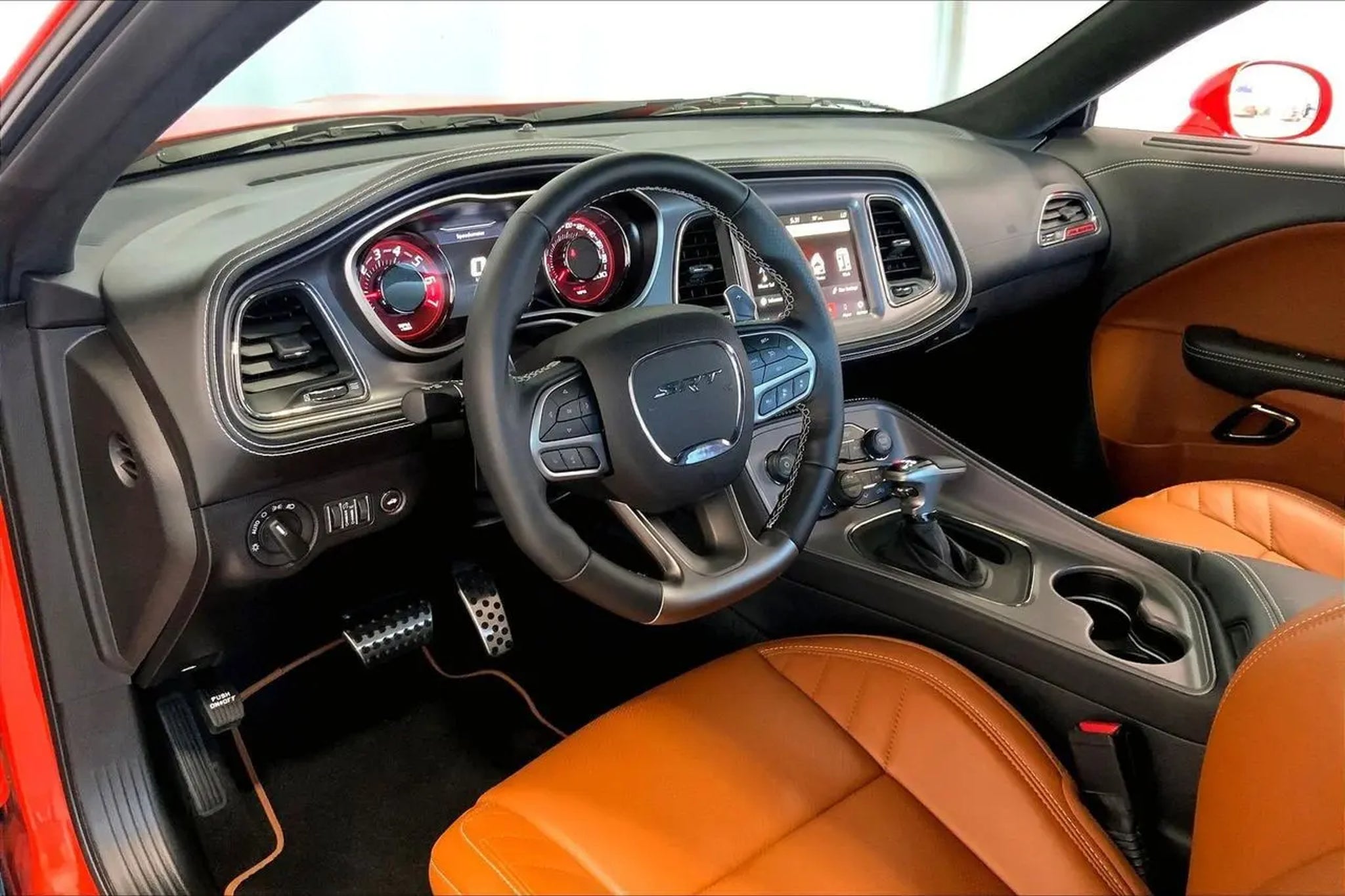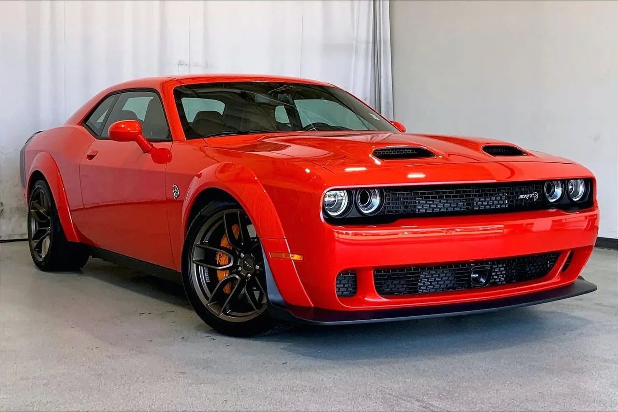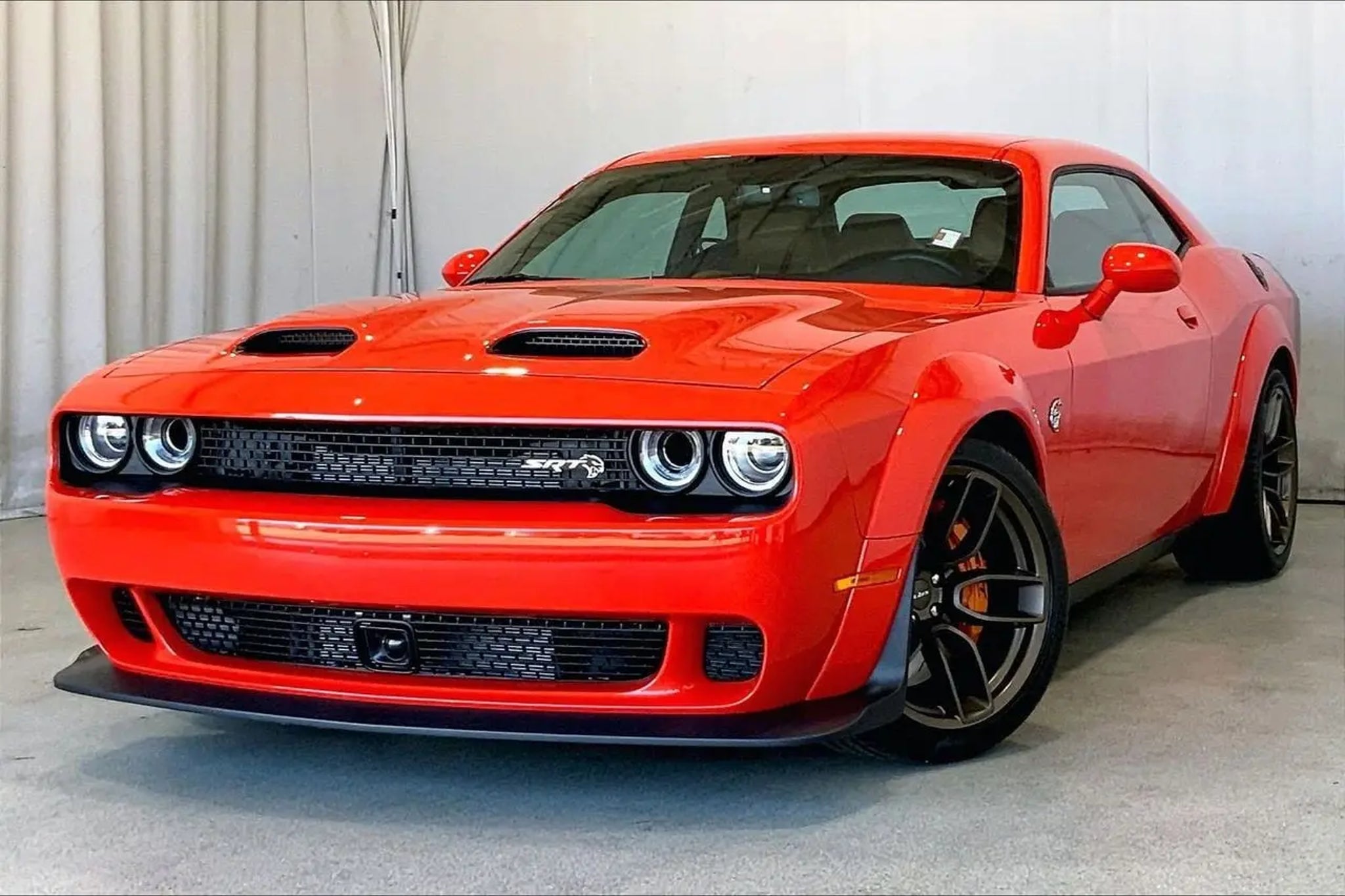 18 Speakers Premium Audio System, ABS brakes, Alloy wheels, Black Seat Belts, Blind Spot & Cross Path Detection, Body Color Exterior Mirrors, Compass, Driver Convenience Group, Electronic Stability Control, Exterior Mirrors w/Heating Element, Front dual zone A/C, harman/kardon Audio Group w/Subwoofer, harman/kardon GreenEdge Amp, Heated door mirrors, Heated Front Seats, Heated front seats, Heated Steering Wheel, Hellcat Logo Laguna Leather Seat, High-Intensity Discharge Headlamps, Illuminated entry, Jailbreak IP Badge, Laguna Leather Package (DISC), Low tire pressure warning, ParkView Rear Back-Up Camera, Power Multi-Function Foldaway Mirrors, Power Tilt/Telescope Steering Column, Premium Laguna Door Trim Panel, Premium-Stitched Dash Panel, Quick Order Package 26C Hellcat Widebody Jailbreak, Radio/Driver Seat/Mirrors Memory, Remote keyless entry, Sepia Seat Belts, Surround Sound, Traction control, Trunk Mounted Subwoofer, Ventilated Front Seats, Wheels: 20 x 11.0 Brass Monkey Widebody, Wheels: 20 x 11.0 Devil's Rim Granite, Widebody Competition Suspension, Widebody Fender Flares. CARFAX One-Owner. Clean CARFAX. Odometer is 5547 miles below market average! Recent Arrival! Go Mango 2023 Dodge Challenger SRT Hellcat Jailbreak RWD 8-Speed Automatic 6.2L 8-Cylinder SMPI Supercharged OHV