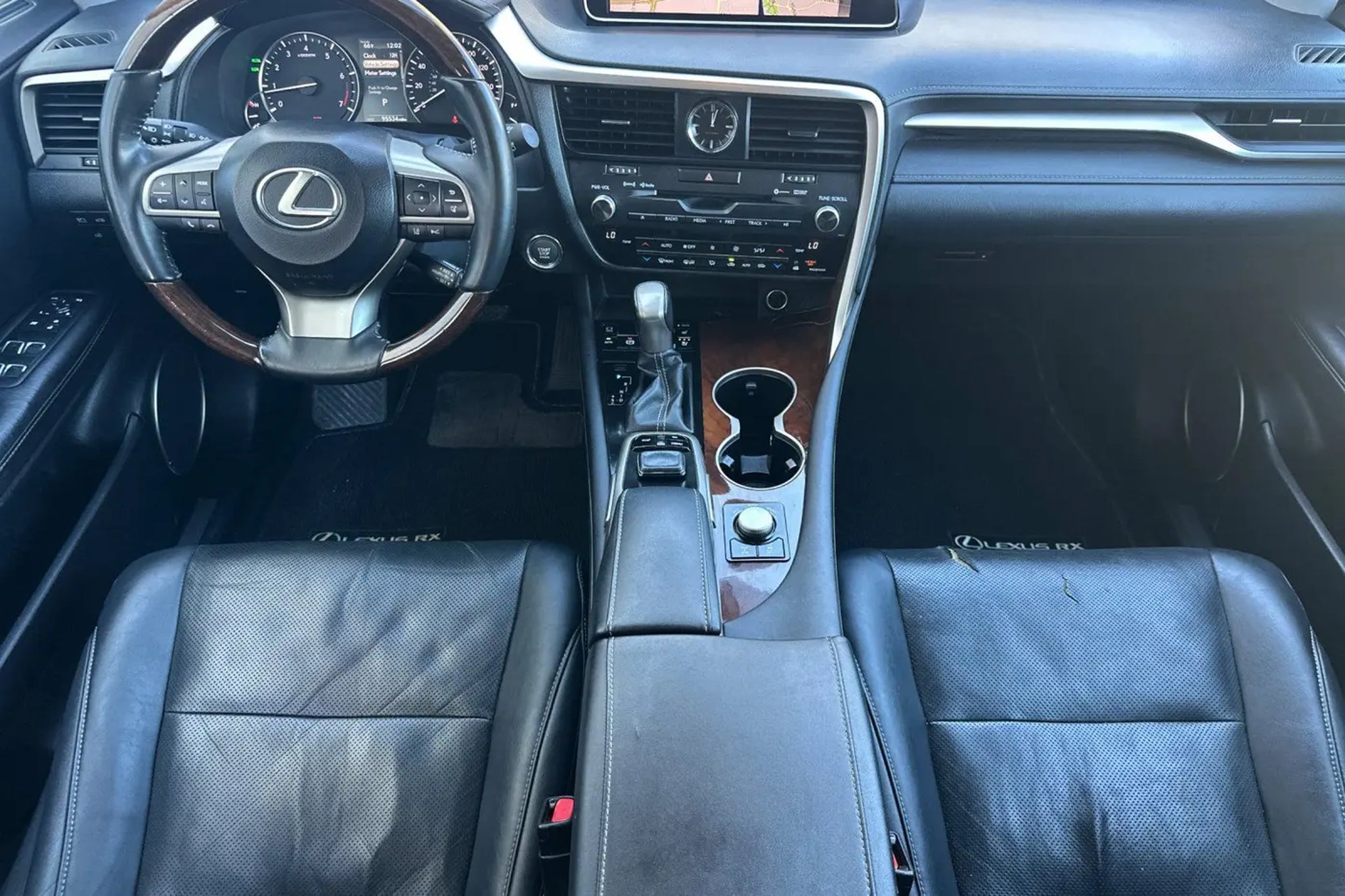 Accessories F BD Blind Spot Monitor w/Rear-Cross Traffic Alert F FV 20 Gray Metallic Alloy Wheels w/Machined Finish F GL Lexus Safety System F HF Touch Free Power Rear Door F HS Heated and Ventilated Front Seats F NW Navigation System with 12.3 multimedia display Lexus Enform Destinations (1-year trial subscription included), Lexus Enform App Suite (Complimentary) F PA Intuitive Parking Assist F PM Premium Package Includes: Leather Trim Seats, Power-folding Outside Mirrors, Driver's Seat/Steering Wheel/Mirror Memory, Rain-sensing Wipers, Aluminum Roof Rails F SR Moonroof F TO Towing Prep Pkg: Transmission Cooler, Heavy Duty Alternator/Radiator (does not include ball mount) F WN Espresso Walnut Interior Wood Trim F WX Heated Espresso Walnut Steering Wheel P 3T Cargo Cross Bars STANDARD FEATURES 3.5 Liter 295HP Four Cam 24-Valve V6 Engine with Variable Valve Timing (VVT-iW) 8-Speed Automatic Transmission Drive Mode Select Full Time Active Torque Control All-Wheel Drive 18 Aluminum Alloy Wheels Tire-Specific Pressure Monitoring System 10 Airbags: Driver & Front Passenger: Front, Knee & Side (6), Rear Side (2), Side Curtain (2) Anti-Lock Braking System (ABS) w/ Electronic Brakeforce Distribution (EBD) & Brake Assist Automatic On/Off Bi-LED Headlamps / Integrated Fog Lamps / LED Tail Lamps LED Daytime Running Lamps (DRL) Vehicle Theft-Deterrent Sys w/Engine Immobilizer Lexus Enform Safety Connect: Automatic Collision Notification, Stolen Vehicle Location Emergency Button (SOS) and Roadside Assistance. Lexus Enform Service Connect, Lexus Enform Remote, (1-year trial subscription included) Lexus 9-speaker Premium Display Audio System, HD Radio w/iTunes tagging, Dual USB iPod/MP3 Control, SiriusXM Satellite Radio (3-month All Access trial subscription included) Backup Camera Auto Dual Zone Climate Control Sys w/Rear Vents 10-Way Power NuLuxe-trimmed Front Seats Power Tilt-and-Telescopic Steering Column Reclining/Sliding 40/20/40 Split Rear Seat Power Back Door Rear View Mirror- Auto Dimming, Homelink Garage Door with Compass SmartAccess with push-button Start/Stop Striated Black Interior Trim 4.2 Multi-Information Display with Lexus Personalized Settings, Trip Computer & Outside Temp Display Carpeted Floor Mats, RX 350, 4D Sport Utility, 3.5L V6 DOHC 24V, 8-Speed Automatic, AWD, Eminent White Pearl, Parchment w/Leather Seat Trim. 19/26 City/Highway MPG Clean CARFAX. Simple Price, Simple Process. Awards: * 2016 KBB.com Best Resale Value Awards * 2016 KBB.com Brand Image Awards