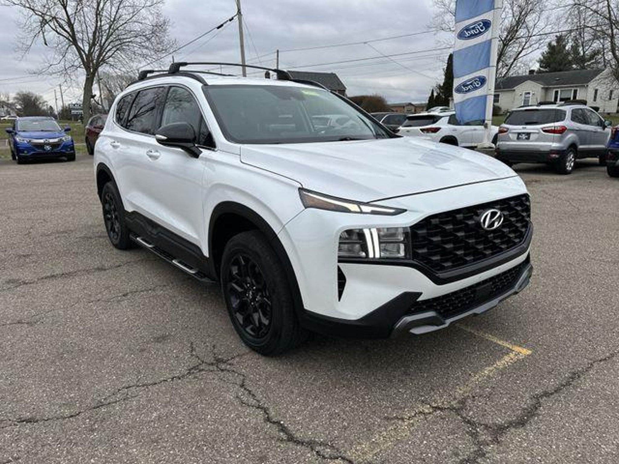 Clean CARFAX. Certification Program Details: NO ADDITIONAL COST: 7-YEAR/100,000 MILE POWERTRAIN WARRANTY, 3-MONTH/3,000 MILE LIMITED COMPREHENSIVE BUMPER-TO-BUMPER COVERAGE, 3-DAY/300 MILE EXCHANGE GUARANTEE & RENTAL REIMBURSEMENT! SEE DEALER FOR COMPLETE DETAILS. 2022 Hyundai Santa Fe XRT AWD - ALL WHEEL DRIVE, APPLE CAR PLAY / ANDROID AUTO, BACKUP CAMERA, BLUETOOTH, Santa Fe XRT, SPITZER SHIELD Certified, AWD, Quartz White, Black w/YES Essentials Stain-Resistant Cloth Seat Trim, 4-Wheel Disc Brakes, 6 Speakers, ABS brakes, Air Conditioning, Alloy wheels, AM/FM radio: SiriusXM, Apple CarPlay & Android Auto, Auto High-beam Headlights, Auto-dimming Rear-View mirror, Automatic temperature control, Axle Ratio: 4.081, Brake assist, Bumper Applique, Bumpers: body-color, Cargo Cover/Screen, Cargo Net, Cargo Tray, Carpeted Floor Mats, Delay-off headlights, Driver door bin, Driver vanity mirror, Dual front impact airbags, Dual front side impact airbags, Electronic Stability Control, Emergency communication system, Exterior Parking Camera Rear, First Aid Kit, Four wheel independent suspension, Front anti-roll bar, Front Bucket Seats, Front Center Armrest, Front dual zone A/C, Front reading lights, Fully automatic headlights, Garage door transmitter: HomeLink, Heated door mirrors, Heated Front Bucket Seats, Heated Front Seats, Illuminated entry, Leather steering wheel, Low tire pressure warning, Occupant sensing airbag, Option Group 01, Outside temperature display, Overhead airbag, Overhead console, Panic alarm, Passenger door bin, Passenger vanity mirror, Power door mirrors, Power driver seat, Power Liftgate, Power steering, Power windows, Radio: AM/FM Display Audio, Rear anti-roll bar, Rear seat center armrest, Rear window defroster, Rear window wiper, Remote keyless entry, Roof rack, Security system, Speed control, Speed-sensing steering, Split folding rear seat, Spoiler, Steering wheel mounted audio controls, Tachometer, Telescoping steering wheel, Tilt steering wheel, Traction control, Trip computer, Turn signal indicator mirrors, Variably intermittent wipers, Wheels: 18 x 7.5J Exclusive Dark-Tone Alloy, YES Essentials Stain-Resistant Cloth Seat Trim, Santa Fe XRT, AWD, Quartz White, Black w/YES Essentials Stain-Resistant Cloth Seat Trim.