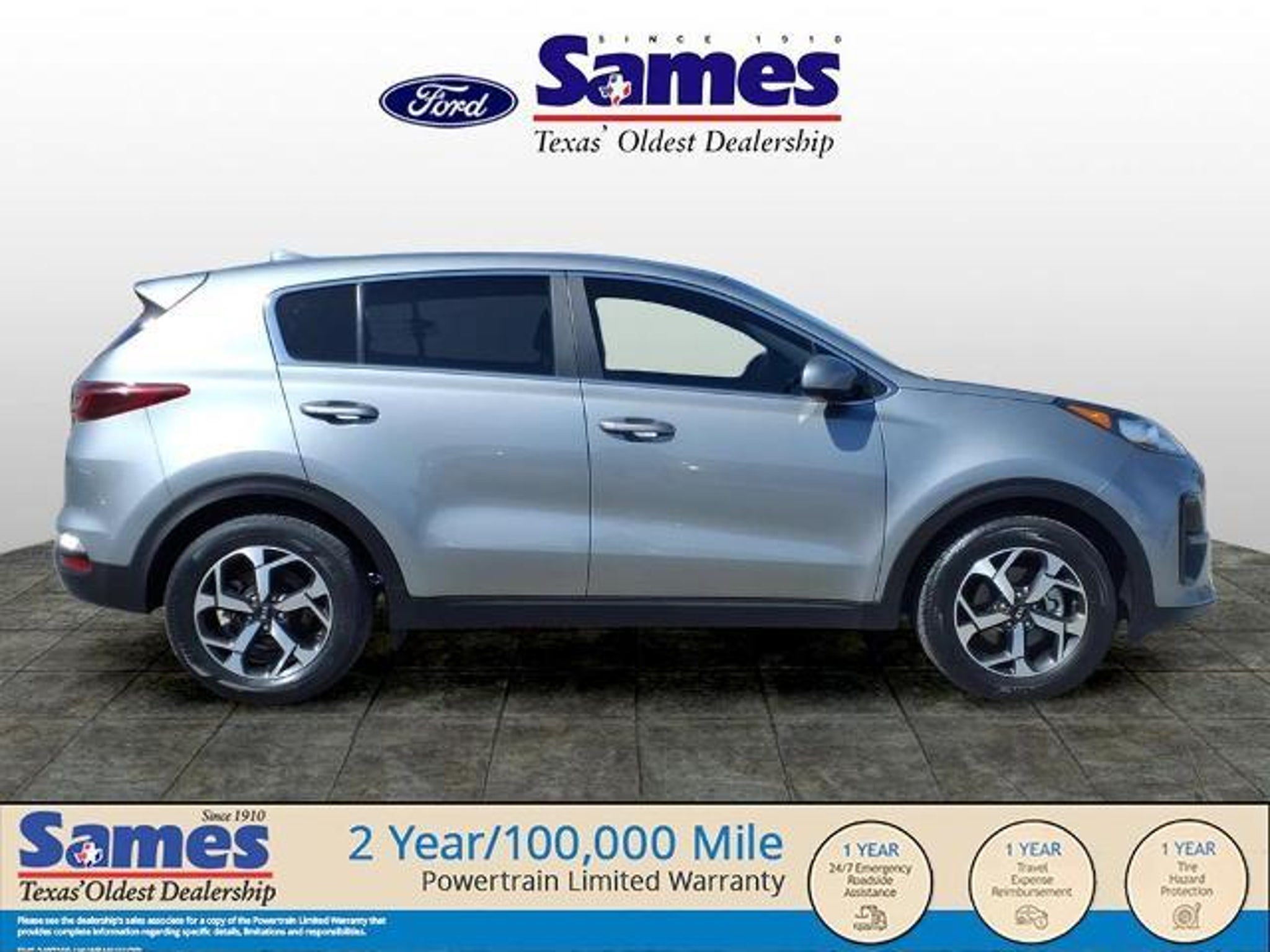 This 2022 Kia Sportage LX in Steel Gray comes with the following features: 2.4L I4 DGI DOHC 16V 6-Speed Automatic Electronic with Overdrive FWD 17 Alloy Wheels, 4-Wheel Disc Brakes, 6 Speakers, 6-Way Manual Adjustable Driver's Seat, ABS brakes, Air Conditioning, Alloy wheels, AM/FM radio, Apple CarPlay & Android Auto, Auto High-beam Headlights, Axle Ratio: 3.064, Brake assist, Bumpers: body-color, Cargo Mat, Carpeted Floor Mats, Cloth Seat Trim, Delay-off headlights, Driver door bin, Driver vanity mirror, Dual front impact airbags, Dual front side impact airbags, Dual USB Charger, Electronic Stability Control, Exterior Parking Camera Rear, Four wheel independent suspension, Front anti-roll bar, Front Bucket Seats, Front Center Armrest, Front reading lights, Fully automatic headlights, Illuminated entry, Low tire pressure warning, Occupant sensing airbag, Outside temperature display, Overhead airbag, Overhead console, Panic alarm, Passenger door bin, Passenger vanity mirror, Power door mirrors, Power steering, Power windows, Radio: AM/FM Audio System, Rear anti-roll bar, Rear seat center armrest, Rear window defroster, Rear window wiper, Remote keyless entry, Security system, Speed control, Speed-sensing steering, Split folding rear seat, Spoiler, Steering wheel mounted audio controls, Tachometer, Telescoping steering wheel, Tilt steering wheel, Traction control, Trip computer, and Variably intermittent wipers. Certification Program Details: 2 Year/100,000 Mile Limited Powertrain Warranty, Rental Reimbursement, Road Side Assist, Emergency Travel Expense Reimbursement, Tire Hazard Protection. See dealer for details. Sames Auto Group stores have been in business for over 115 years, as part of the Oldest Auto Group in Texas we're committed to providing exceptional service before, during, and after your purchase. Our expert team at Sames Ford of Bastrop will ensure you drive away completely satisfied. Schedule your virtual consultation or test drive today. No hassle remote delivery to Houston, Austin and San Antonio and the rest of Texas available upon request.