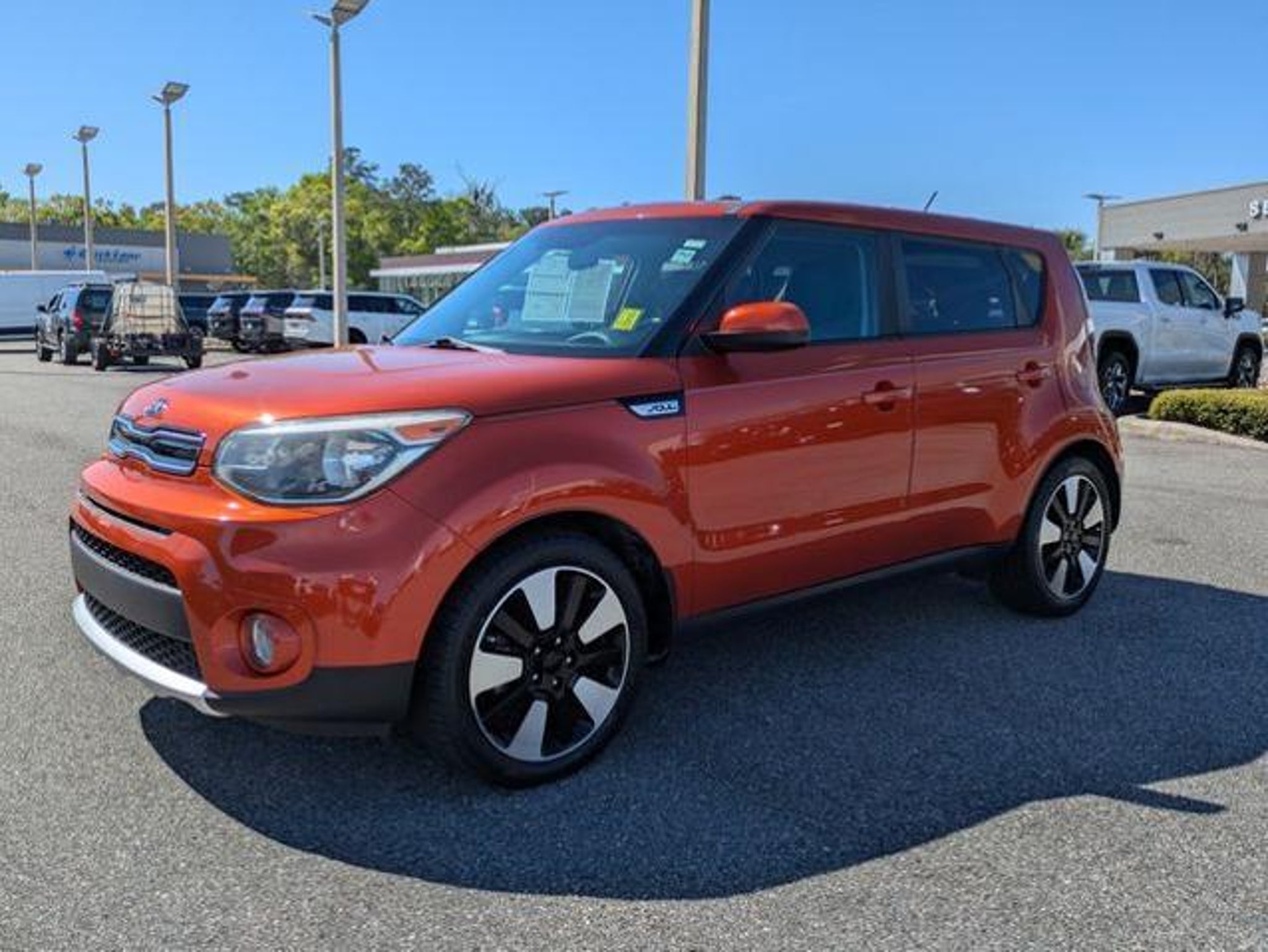 Certified. 2018 Kia Soul Plus FWD 6-Speed Automatic with Sportmatic I4 Wild Orange Soul Plus, Designer Collection Package, Leather-Wrapped Steering Wheel & Shift Knob, Radio: AM/FM/MP3 Audio System, Wheels: 18 Black Spoke Alloy. THIS VEHICLE INCLUDES THE FOLLOWING FEATURES AND OPTIONS: Designer Collection Package (Leather-Wrapped Steering Wheel & Shift Knob and Wheels: 18 Black Spoke Alloy), Soul Plus, Ford Blue Advantage: Blue Certified Certified, Radio: AM/FM/MP3 Audio System, 17 Alloy Wheels, 4-Wheel Disc Brakes, 6 Speakers, 6-Way Adjustable Driver's Seat, ABS brakes, Air Conditioning, Alloy wheels, AM/FM radio: SiriusXM, Apple CarPlay & Android Auto, Automatic temperature control, Brake assist, Bumpers: body-color, Cargo Net, Carpeted Floor Mat, Cloth Seat Trim, Driver door bin, Driver vanity mirror, Dual front impact airbags, Dual front side impact airbags, Electronic Stability Control, Emergency communication system: UVO eServices, Exterior Parking Camera Rear, Front anti-roll bar, Front Bucket Seats, Front Center Armrest, Front fog lights, Front reading lights, Front wheel independent suspension, Fully automatic headlights, Heated door mirrors, Illuminated entry, Low tire pressure warning, Occupant sensing airbag, Outside temperature display, Overhead airbag, Overhead console, Panic alarm, Passenger door bin, Passenger vanity mirror, Power door mirrors, Power steering, Power windows, Rear seat center armrest, Rear window defroster, Rear window wiper, Remote keyless entry, Speed control, Speed-sensing steering, Split folding rear seat, Steering wheel mounted audio controls, Tachometer, Telescoping steering wheel, Tilt steering wheel, Traction control, Trip computer, and Variably intermittent wipers. Certification Program Details: Ford Blue Advantage: Blue Certified * 139 Point Inspection * Transferable Warranty * Vehicle History * Warranty Deductible: $100 * Roadside Assistance * Limited Warranty: 3 Month/4,000 Mile (whichever comes first) after new car warranty expires or from certified purchase date * and 11,000 FordPass Rewards Points to use toward first maintenance visit Awards: * 2018 KBB.com 10 Best Used Compact Cars Under $15,000 * 2018 KBB.com 10 Coolest New Cars Under $20,000