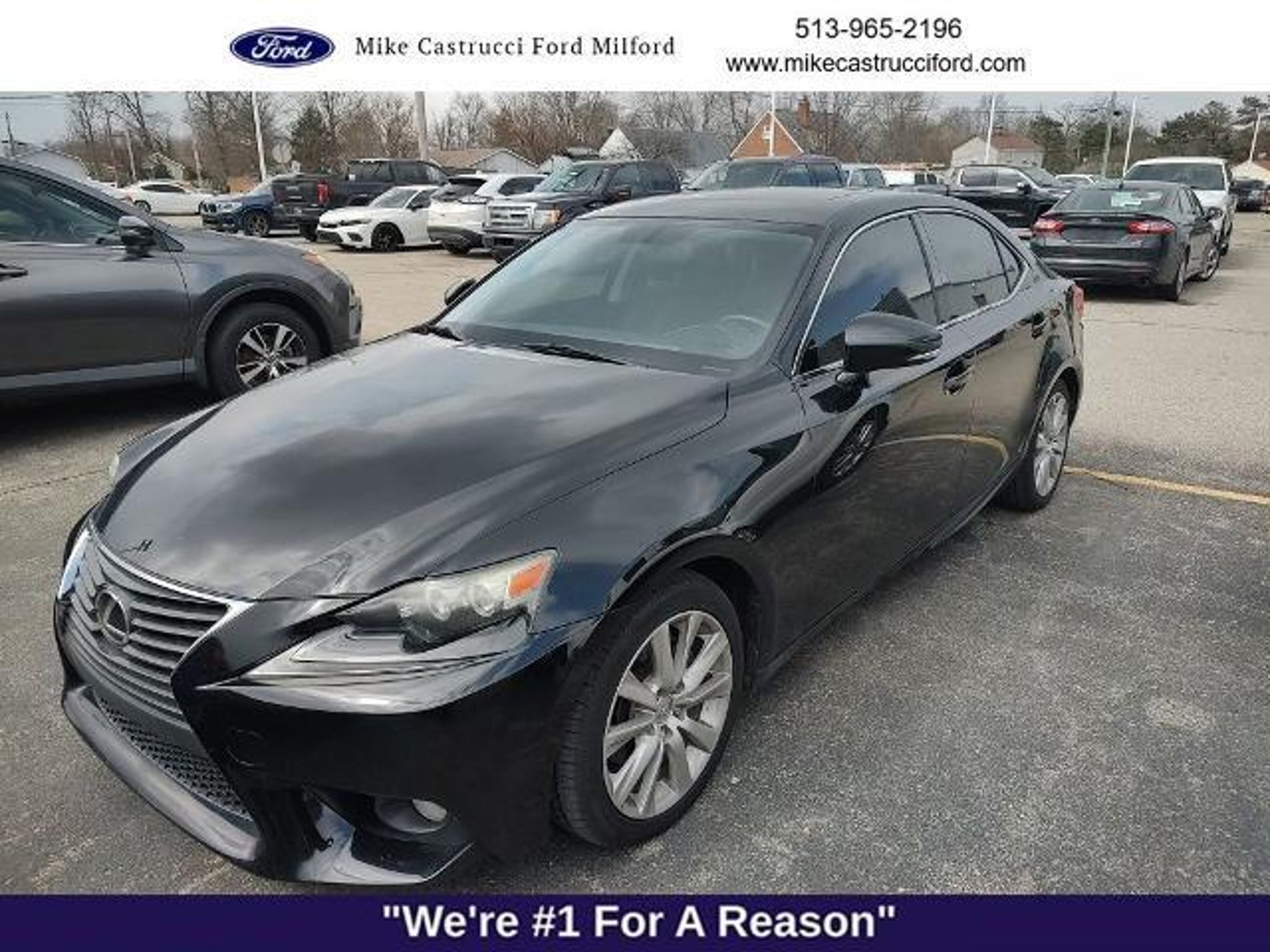 Mike Castrucci Ford is Cincinnatis and Surrounding Tri-State Number #1 Ford store. Come see why we have earned this honor with are pricing and customer service. We are proud to offer this charming 2014 Lexus IS in Obsidian and comes with the following features; AWD, Black Artificial Leather. Obsidian 2014 Lexus IS 250 AWD 6-Speed Automatic Electronic with ECT-i 2.5L V6 DOHC 24V VVT-i Recent Arrival! Odometer is 62923 miles below market average! 20/27 City/Highway MPG Awards: * 2014 KBB.com Brand Image Awards * 2014 KBB.com Best Resale Value Awards * 2014 KBB.com 5-Year Cost to Own Awards Reviews: * Opting for the most visually appealing vehicle in a particular segment can sometimes mean settling for less when it comes to long-term reliability and value. Not so with the 2014 Lexus IS, as it blends eye-catching style and luxurious interior treatments with one of the most enjoyable ownership experiences in the industry. Source: KBB.com * Upscale and well-built interior; communicative steering; smooth ride. Source: Edmunds Mike Castrucci Ford established community-oriented roots in 1958, welcoming the flourishing populations of Milford, Cincinnati, and everywhere in between. Owner Mike Castrucci has played a major role in lending a hand to local organizations, serving, and strengthening the Milford community through involvement and sponsorship. Without the support of our local society, we wouldn't be able to prosper and strive to meet our goal of being the best Ford dealer in Milford, OH, and across the entire region. As you enter our showroom, you will be greeted by similar loyal faces, and it will feel like you are joining the family. More than 60 years of trust and commitment are apparent at your premier Milford, OH, Ford dealer and we always listen intently to your driving needs so that your buying or leasing experience is seamless from start to finish. Please stop by and see us at 1020 OH-28, Milford OH 45150. You can also visit us online at www.mikecastrucciford.com and call us! 855-441-9650!