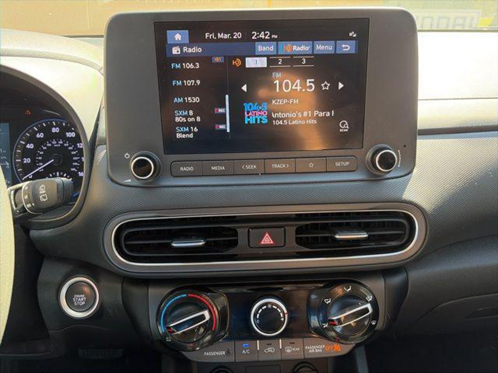 Meet the 2023 Hyundai Kona SELthe compact SUV that proves big personality can come in a small package. Its stylish, sporty, and just bold enough to make your neighbor wonder if you got a promotion. With its sharp lines and confident stance, this is the kind of vehicle that makes even a quick grocery run feel like a main character moment. Step inside and youll find a cabin thats surprisingly upscale for something this practical. Youve got an intuitive touchscreen, wireless Apple CarPlay and Android Auto, and enough comfort features to make your daily commute feel slightly less commute-y. Heated seats, push-button start, and a power drivers seat come standard, so yesyou can feel fancy even when youre just grabbing drive-thru. Under the hood, the Kona SEL keeps things efficient and easygoing with a 2.0L engine putting out 147 horsepowerperfect for city driving, road trips, and confidently merging without needing a motivational speech. Its smooth, practical, and fuel-efficient (around 30/35 MPG), meaning fewer gas stops and more Ill just keep driving moments. And when it comes to safety, this Kona has your back like a very responsible friend. With features like lane-keeping assist, forward collision warning, blind-spot monitoring, and more, its basically your co-pilot that never zones out. The 2023 Kona SEL isnt just a smart choiceits the kind of vehicle that makes everyday driving feel a little more fun, a little more comfortable, and a lot more put together. Recent Arrival! 2023 Hyundai Kona Call us today at to schedule a test drive, or just stop by. We look forward to seeing you! Clean CARFAX. 28/33 City/Highway MPG