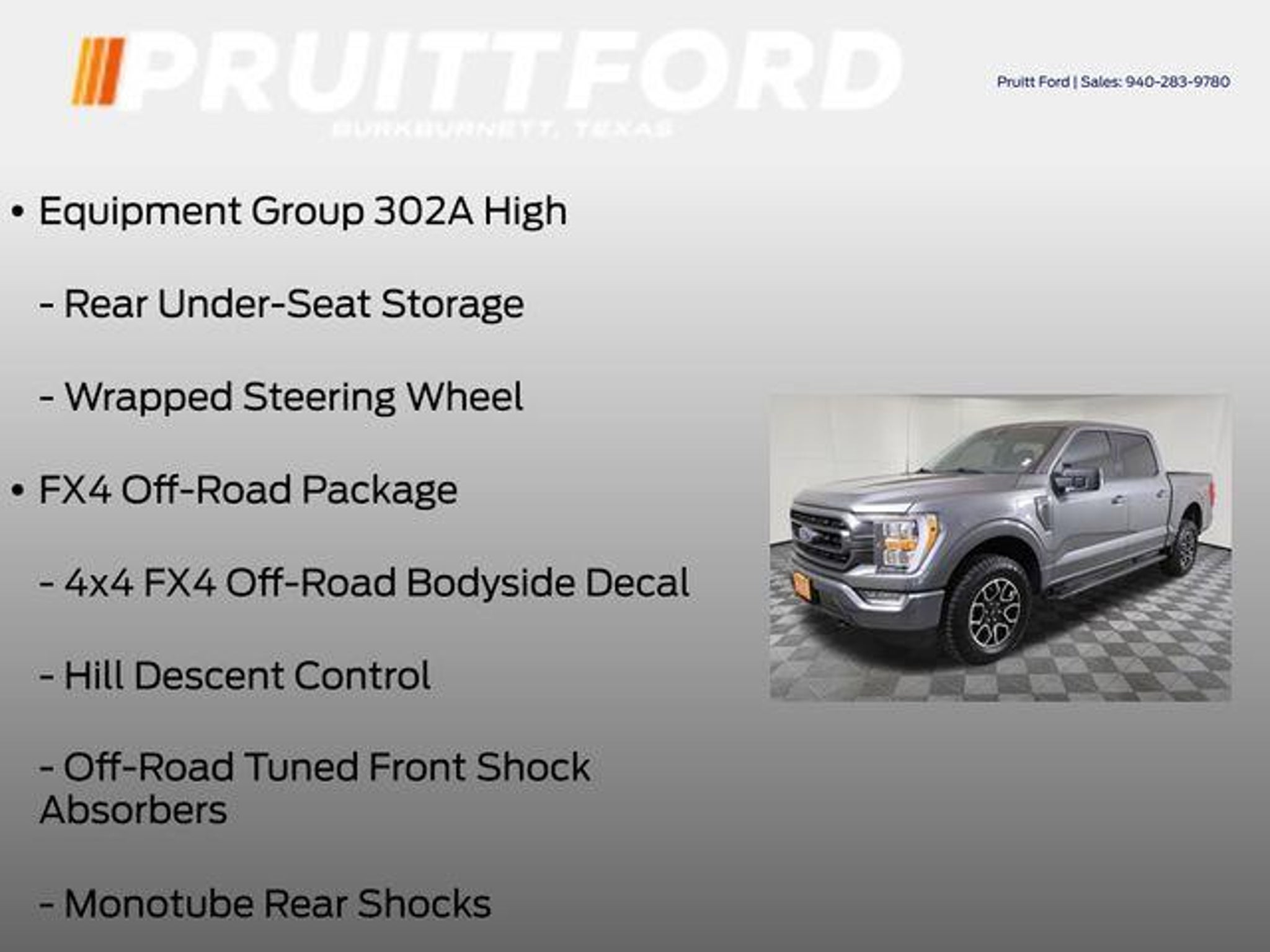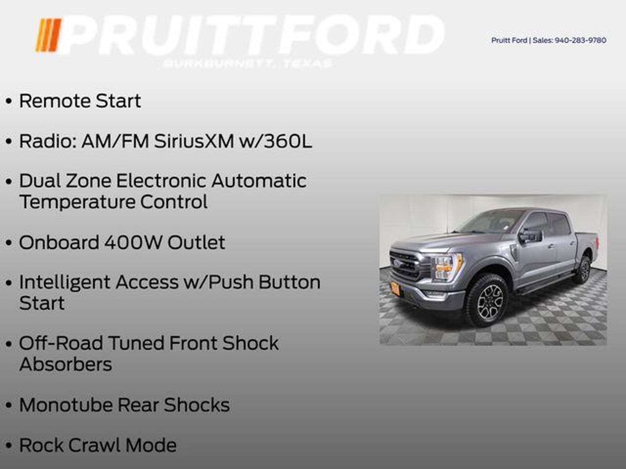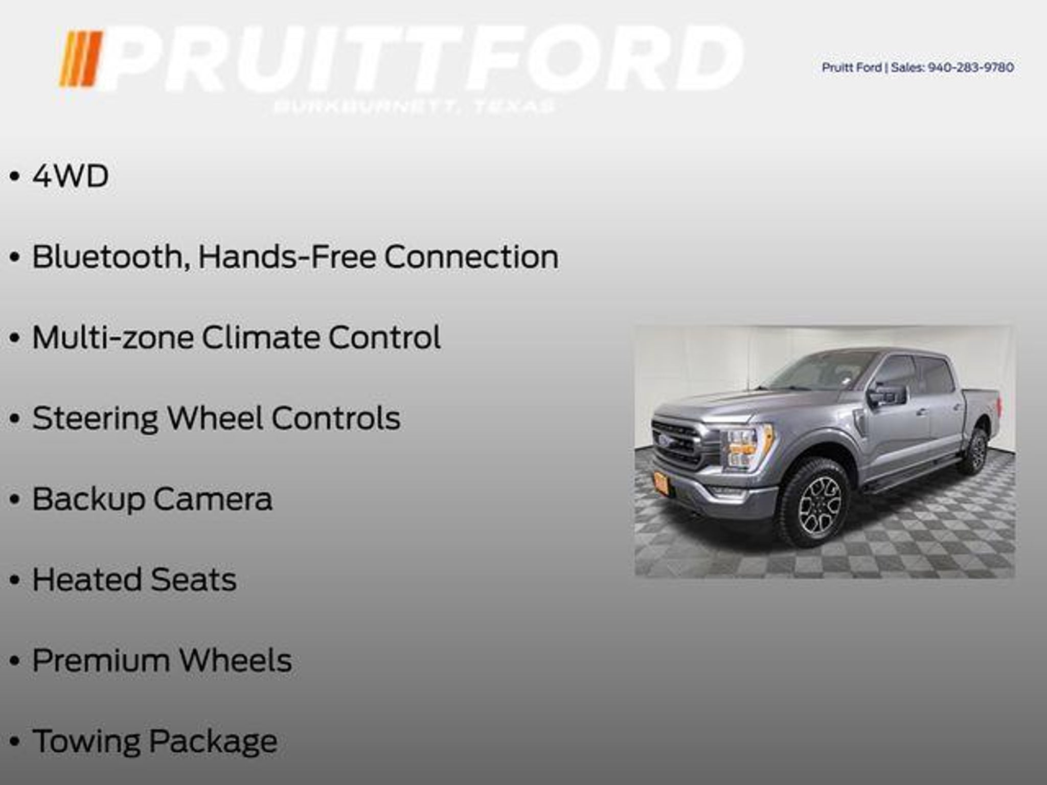 Discover the exceptional 2023 Ford F-150 XLT, a versatile and capable pickup that's ready to take on any challenge. With its powerful 3.5L V6 EcoBoost engine, 4-wheel drive, and impressive towing capacity, this F-150 is the ultimate work companion. - 4WD - Bluetooth, Hands-Free Connection - Multi-zone Climate Control - Steering Wheel Controls - Backup Camera - Heated Seats - Premium Wheels - Towing Package - Remote Start This XLT model also comes equipped with the impressive Equipment Group 302A High, which includes a Class IV Trailer Hitch Receiver, smart trailer tow connector, and an onboard 400W outlet. The FX4 Off-Road Package further enhances its capabilities with off-road tuned shock absorbers, skid plates, and rock crawl mode. The XLT Sport Appearance Package adds a touch of style with body-color front and rear bumpers, a black grille, and unique 18-inch wheels. Enjoy the convenience of the Intelligent Access with Push-Button Start, the security of the SecuriCode Keyless-Entry Keypad, and the connectivity of the SYNC 4 infotainment system with wireless phone integration. Comfort and technology are equally impressive, with features like dual-zone automatic climate control, an 8-inch productivity screen, and a power-adjustable driver's seat. The LED sideview mirror spotlights and zone lighting enhance visibility, while the auto-dimming rearview mirror and heated side mirrors provide added convenience. Whether you're tackling tough job sites, exploring off-road trails, or just enjoying the open road, this 2023 Ford F-150 XLT is the perfect companion. Experience the perfect blend of capability, technology, and style. Visit our showroom today and let us demonstrate why this F-150 is the ultimate choice for your next adventure.