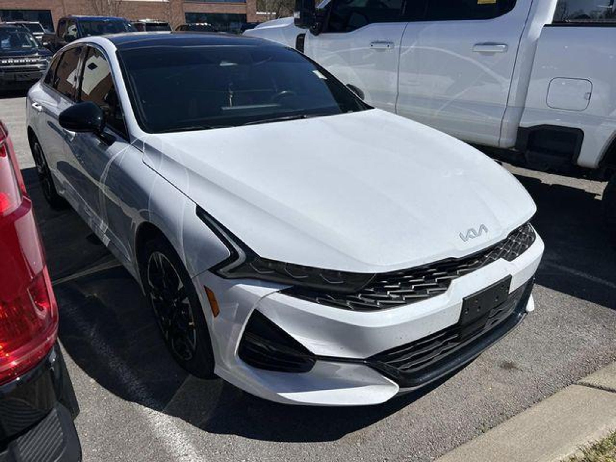 2023 Kia K5 GT-Line SUNROOF/MOONROOF, NAVIGATION, BACK UP CAMERA, CLEAN CARFAX, CERTIFIED, LOCAL TRADE, ONE OWNER, *LIFETIME POWERTRAIN WARRANTY*, Forward Collision Avoidance-Assist, Gloss Black Trim, GT-Line Panoramic Sunroof Package, GT-Line Premium Package, GT-Line Red Interior Package, Highway Driving Assist, LED Interior Lighting, LED Projection Headlamps, Navigation System, Panoramic Sunroof, Smart Cruise Control w/Stop & Go. Certification Program Details: Ford Blue Advantage: Blue Certified * 139 Point Inspection * Transferable Warranty * Vehicle History * Warranty Deductible: $100 * Roadside Assistance * Limited Warranty: 3 Month/4,000 Mile (whichever comes first) after new car warranty expires or from certified purchase date * and 11,000 FordPass Rewards Points to use toward first maintenance visit This vehicle includes the following features and options: GT-Line Panoramic Sunroof Package (Gloss Black Trim, LED Interior Lighting, and Panoramic Sunroof), GT-Line Premium Package (Forward Collision Avoidance-Assist, Highway Driving Assist, LED Projection Headlamps, and Smart Cruise Control w/Stop & Go), GT-Line Red Interior Package, Ford Blue Advantage: Blue Certified Certified, Navigation System, 4-Wheel Disc Brakes, 6 Speakers, ABS brakes, Air Conditioning, Alloy wheels, AM/FM radio: SiriusXM, Apple CarPlay & Android Auto, Auto High-beam Headlights, Automatic temperature control, Brake assist, Bumpers: body-color, Carpeted Floor Mats, Cloth/SynTex Seat Trim, Delay-off headlights, Driver door bin, Driver vanity mirror, Dual front impact airbags, Dual front side impact airbags, Electronic Stability Control, Four wheel independent suspension, Front anti-roll bar, Front Bucket Seats, Front Center Armrest, Front dual zone A/C, Front fog lights, Front reading lights, Fully automatic headlights, Heated door mirrors, Illuminated entry, Knee airbag, Low tire pressure warning, Occupant sensing airbag, Outside temperature display, Overhead airbag, Overhead console, Panic alarm, Passenger door bin, Passenger vanity mirror, Power door mirrors, Power driver seat, Power steering, Power windows, Radio data system, Radio: AM/FM/MP3 Audio System, Rear anti-roll bar, Rear seat center armrest, Rear side impact airbag, Rear window defroster, Remote keyless entry, Security system, Speed control, Speed-sensing steering, Split folding rear seat, Spoiler, Sport steering wheel, Steering wheel mounted audio controls, Tachometer, Telescoping steering wheel, Tilt steering wheel, Traction control, Trip computer, Turn signal i