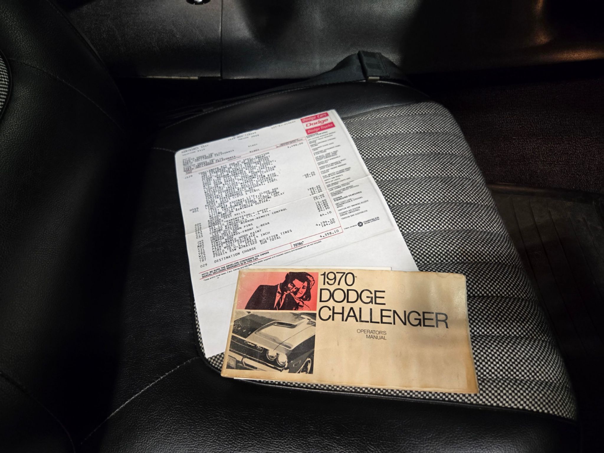 1970 Dodge Challenger RT/SE. Truly a 1 of 1 car with a fascinating and incredible history, binders full of documentation, and very highly optioned to boot! This is one spectacular unicorn! According to documents and the original window sticker, this car was sold new at Studio Dodge in North Hollywood California. The first owner was Mr. John Check. To prevent it being lost in a divorce, he changed the roof and stripes in an attempt to convince his wife it was a different car, but she didnt take the bait. They ended up divorced and it ended up on a used car lot and sold to Stephen B Ross " Jay Lenos Producer for The Tonight show and Jay Lenos Garage. The car spent time with Jays crew getting tune ups and work done to it. Eventually it was traded for an Amphicar by Stephen, and that Amphicar was sold to Jay. Afterwords, it passed hands to a few more collectors, one of which was found guilty of fraud and the Challenger and 25 other cars from his car collection ended up at Barrett Jackson auction. From there it was purchased and brought to Alberta Canada. Its had a few more owners since, but fortunately one of the more recent ones spent the time researching and confirming the cars unique history! All of the written history comes with the car explaining the entire history in detail! Also included are not one, but two factory broadcast sheets, the owners manual, and every other document including all of the Barret Jackson Auction paperwork, import paperwork, US titles, appraisals throughout the years and loads of vintage pictures spanning back for decades. Some of them even are shot at Jay Lenos garage. Everything is catalogued in a binder and photo box " its extraordinary! The car was also registered with the Galen Govier Registry which proves its a 1 of 1 car and also completely explains every option and factory piece of equipment. At some point the car went through a rotisserie restoration, and everything was restored back to exact factory specs apart from the wheels. This is a very highly optioned car, but it left the factory with stamped black steel 14 wheels and wire wheel covers. Those have been upgraded to year correct 15 rallyes with Firestone Wide O white letter belted radials. The List of features and options is extensive. Its a true RT/SE with the factory numbers matching 383 4-bbl V8 and optional 4-speed manual transmission and power steering. Its one of 6 painted in FF4 light green metallic and has the optional V1F vinyl green top. The SE pack included the vinyl top, formal rear window with small glass, unique bright trim around the beltline of the car, and an aluminum trim panel around the taillights along with the high-grade cloth and vinyl bucket seats with houndstooth black and white fabric, upgraded door panels with carpet trim and an overhead console with extra warning lights. A light package was ordered with the car along with the radio group, rallye instrument cluster, deluxe restraint system and woodgrain console with pistol grip floor shifter. A chrome LH door mirror was ordered as well as hood pins, drip rail mouldings, body belt mouldings, dual exhaust with chrome tips, tachometer performance hood tape treatment and longitudinal black stripes. The car still has the compact spare in the trunk with the tire inflator, jack and tire iron. The interior is very nice and shows no wear, and under the hood is neat and tidy. Theres paint protection film on the lower quarter of the car, the entire way around. The car shows 9.9 out of 10 and should be considered by any serious Mopar collector. It really doesnt get much better than this! The car also has 79,000 miles on the odometer, and thanks to extensive paperwork it can be said with confidence that thats the correct and original milage despite only having a 5-digit odometer. Display sign boards are also included with the car.