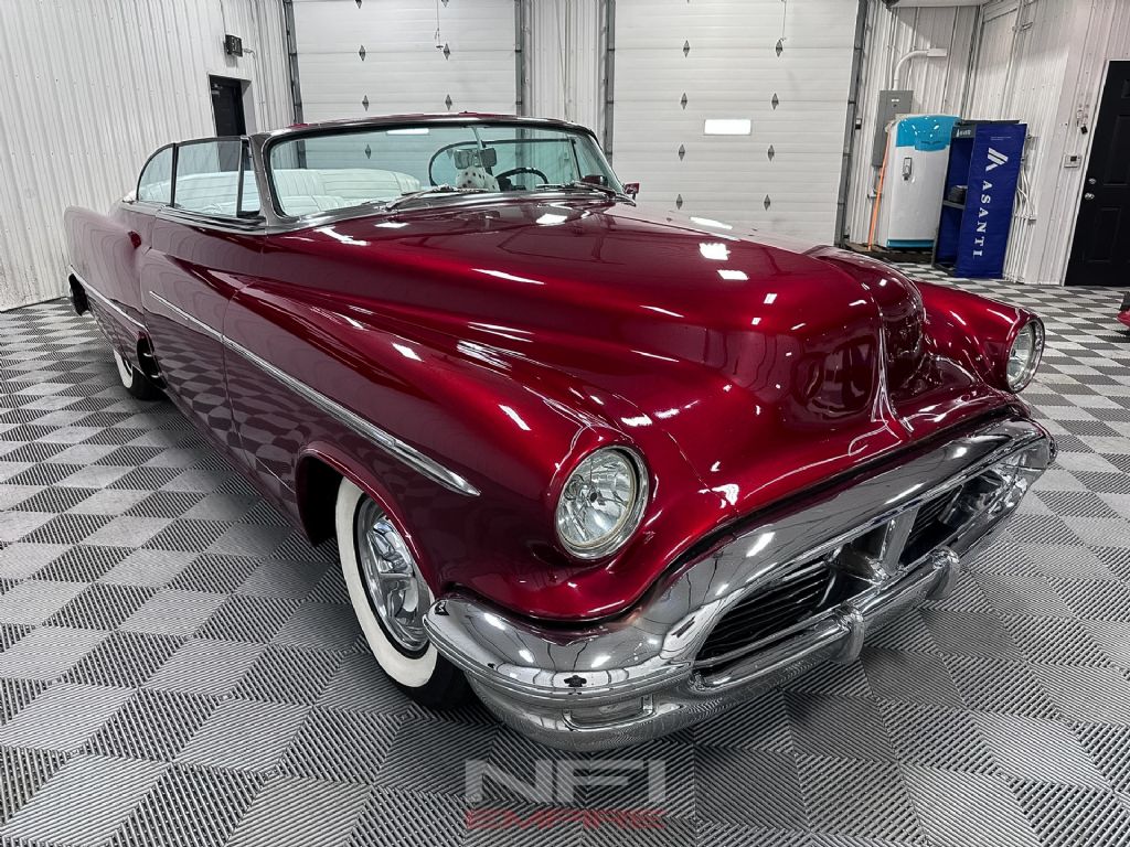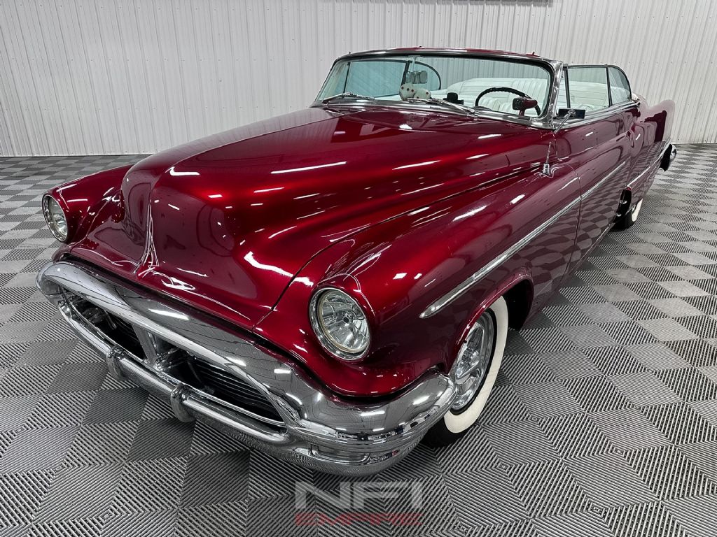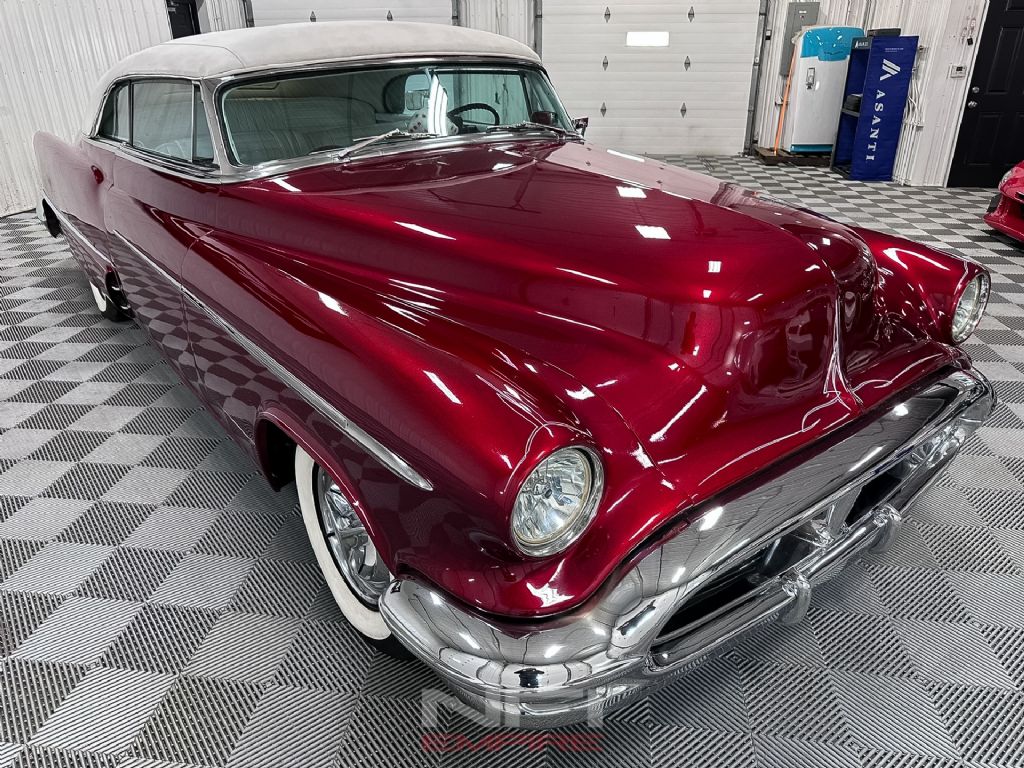 This 1953 Oldsmobile 98 is a traditional custom that blends early-1950s GM luxury with period hot rod and custom touches. Finished in red metallic Candy Brandywine with a white top and white interior, it has the look of a full-size Oldsmobile custom while still keeping the long, substantial lines that make the Ninety-Eight such a recognizable platform. The car fires right up, runs like a top, and presents as a well-sorted cruiser with the right combination of visual changes and drivability upgrades.