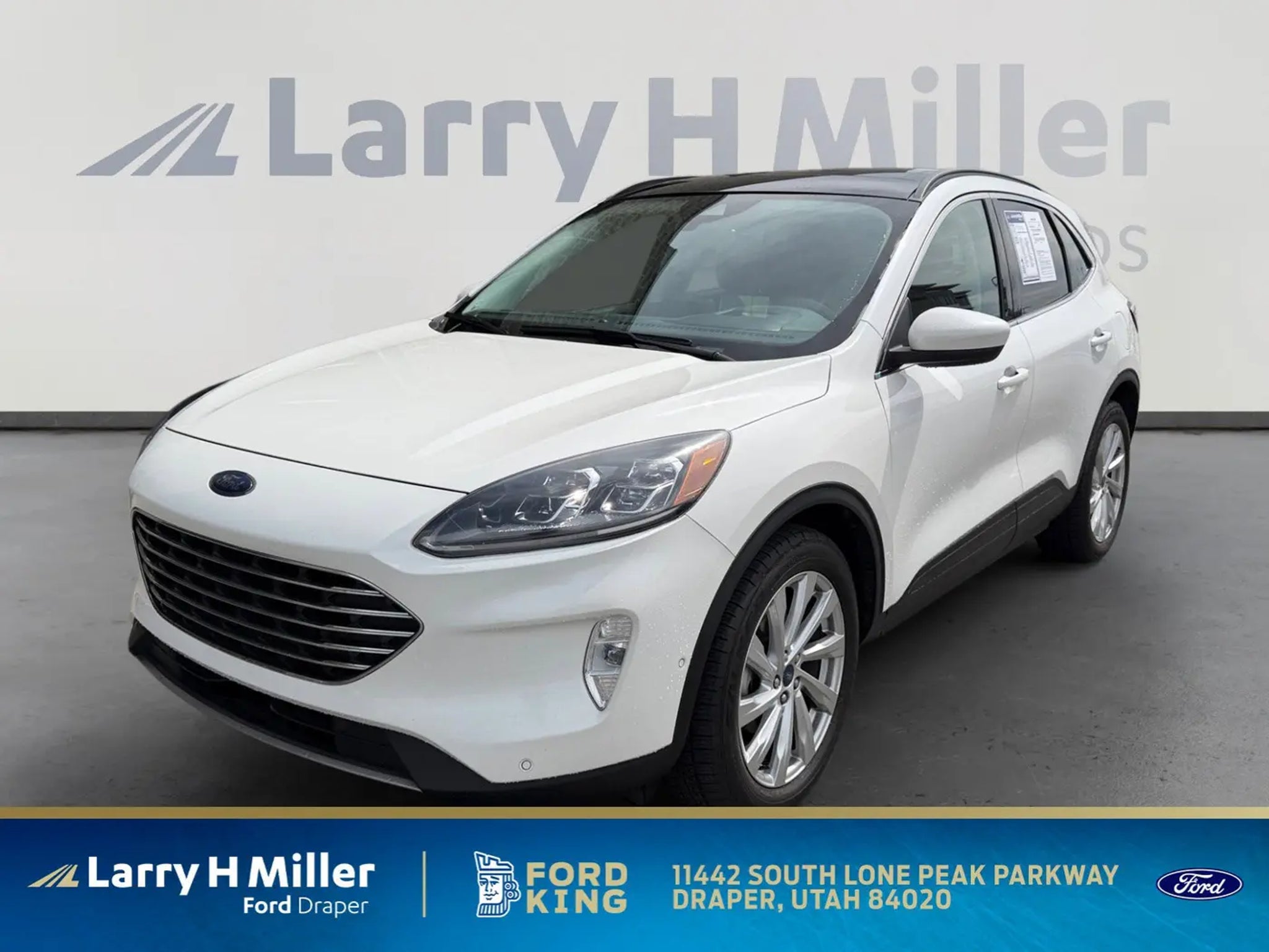 CARFAX One-Owner.2022 Ford Escape TitaniumCertified.22/31 City/Highway MPGCall (801) 563-4011 today to schedule your test drive!Class II Trailer Tow Package, Equipment Group 401A, Titanium Elite Package (Active Park Assist 2.0, Chrome 5-Bar Upper Grille w/Chrome Surround, Front & Rear Floor Mats, Front & Rear Silver Skid Plates, HD Radio, Head-Up Display, Heated Leather-Trimmed Front Sport Contour Seats, Leather Wrapped Steering Wheel, Radio: B&O Sound System by Bang & Olufsen, Wheels: 19 Luster Nickel-Painted Aluminum, and Wireless Charging Pad), Ford Gold Certified Certified, AWD, 3.47 Axle Ratio, 4-Wheel Disc Brakes, 6 Speakers, ABS brakes, Air Conditioning, Alloy wheels, AM/FM radio: SiriusXM, AM/FM Stereo, Auto High-beam Headlights, Auto-dimming Rear-View mirror, Automatic temperature control, Black Roof-Rack Side Rails, Brake assist, Bumpers: body-color, Compass, Delay-off headlights, Driver door bin, Driver vanity mirror, Dual front impact airbags, Dual front side impact airbags, Electronic Stability Control, Emergency communication system: SYNC 3 911 Assist, Exterior Parking Camera Rear, FordPass Connect, Four wheel independent suspension, Front anti-roll bar, Front Bucket Seats, Front Center Armrest, Front dual zone A/C, Front fog lights, Front reading lights, Fully automatic headlights, Garage door transmitter, Heated ActiveX Trimmed Front Sport Contour Bucket Seats, Heated door mirrors, Heated front seats, Heated steering wheel, Illuminated entry, Knee airbag, Low tire pressure warning, Memory seat, Navigation System, Occupant sensing airbag, Outside temperature display, Overhead airbag, Overhead console, Panic alarm, Panoramic Vista Roof, Passenger door bin, Passenger vanity mirror, Power door mirrors, Power driver seat, Power Liftgate, Power passenger seat, Power steering, Power windows, Radio data system, Rain sensing wipers, Rear anti-roll bar, Rear reading lights, Rear seat center armrest, Rear window defroster, Rear window wiper, Remote keyless entry, Roof rack: rails only, Security system, Speed control, Speed-sensing steering, Speed-Sensitive Wipers, Split folding rear seat, Spoiler, Steering wheel mounted audio controls, SYNC 3 Communications & Entertainment System, Tachometer, Telescoping steering wheel, Tilt steering wheel, Traction control, Trip computer, Variably intermittent wipers, Voice-Activated Touchscreen Navigation System, and Wheels: 19 Machined-Face Aluminum. AWD.