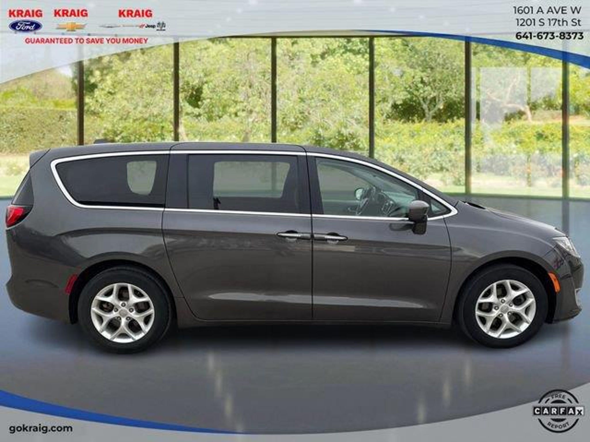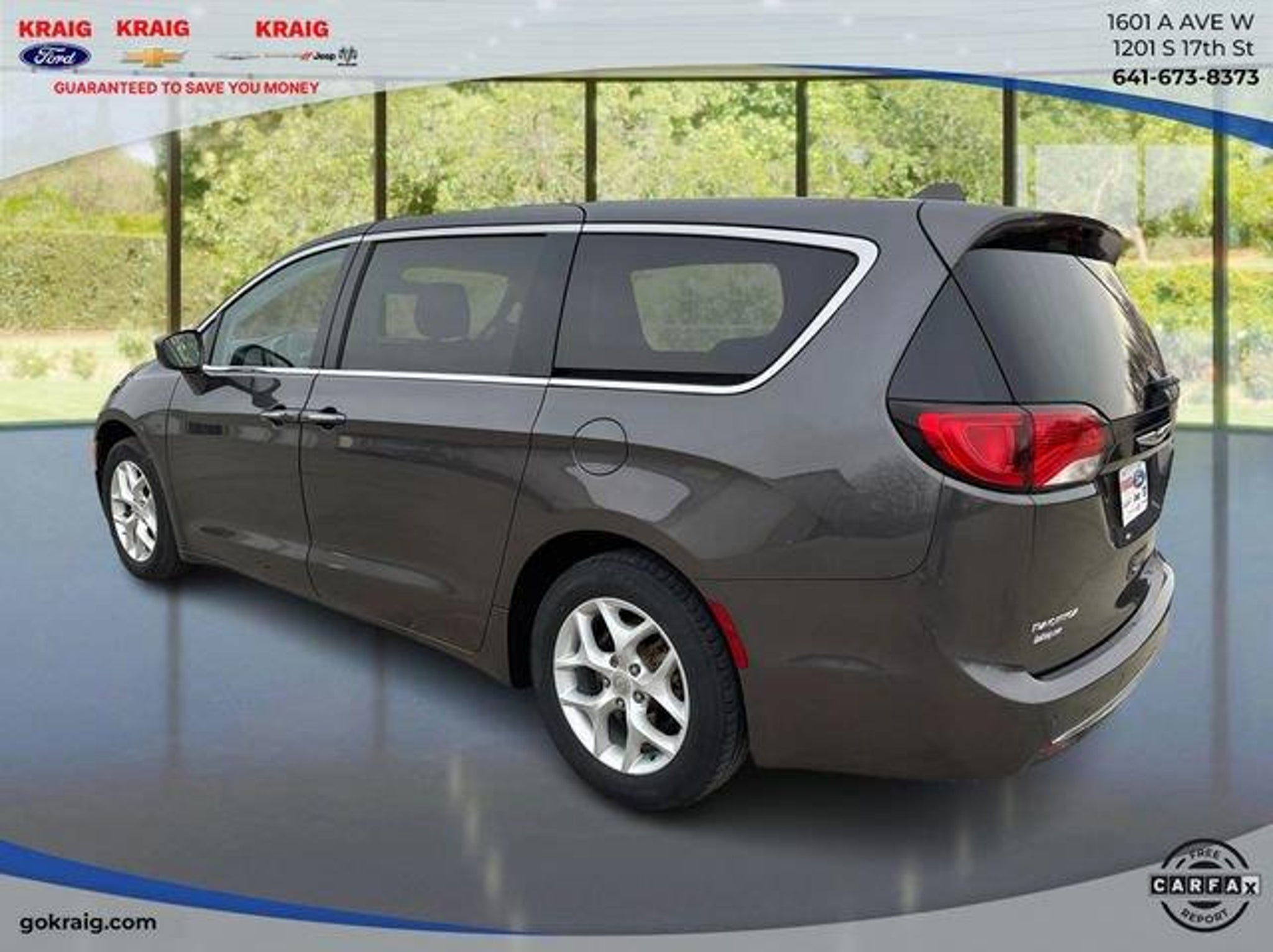19/28 City/Highway MPGLOCAL TRADE IN, 18 x 7.5 Painted Aluminum Wheels, Blind Spot & Cross Path Detection, Nexen Brand Tires, ParkSense Rear Park Assist w/Stop, Remote Start System, SafetyTec (DISC), Security Alarm, Security Group (DISC), Tire & Wheel Group.Granite Crystal Metallic Clearcoat 2018 Chrysler Pacifica Touring Plus FWD 9-Speed Automatic 3.6L V6 24V VVTAt Kraig Ford CDJR our vast selection of Pre-Owned vehicles along with competitive pricing and financing options equals great deals and savings for you!Awards:* JD Power Automotive Performance, Execution and Layout (APEAL) Study * 2018 KBB.com 10 Most Affordable 3-Row Vehicles * 2018 KBB.com Best Family CarsKraig Ford CDJR is a family owned dealership and that is portrayed in the small town atmosphere of the dealership. The owner of the dealership, Craig Ford, is a veteran of the U.S. Army and proudly supports our troops and veterans.