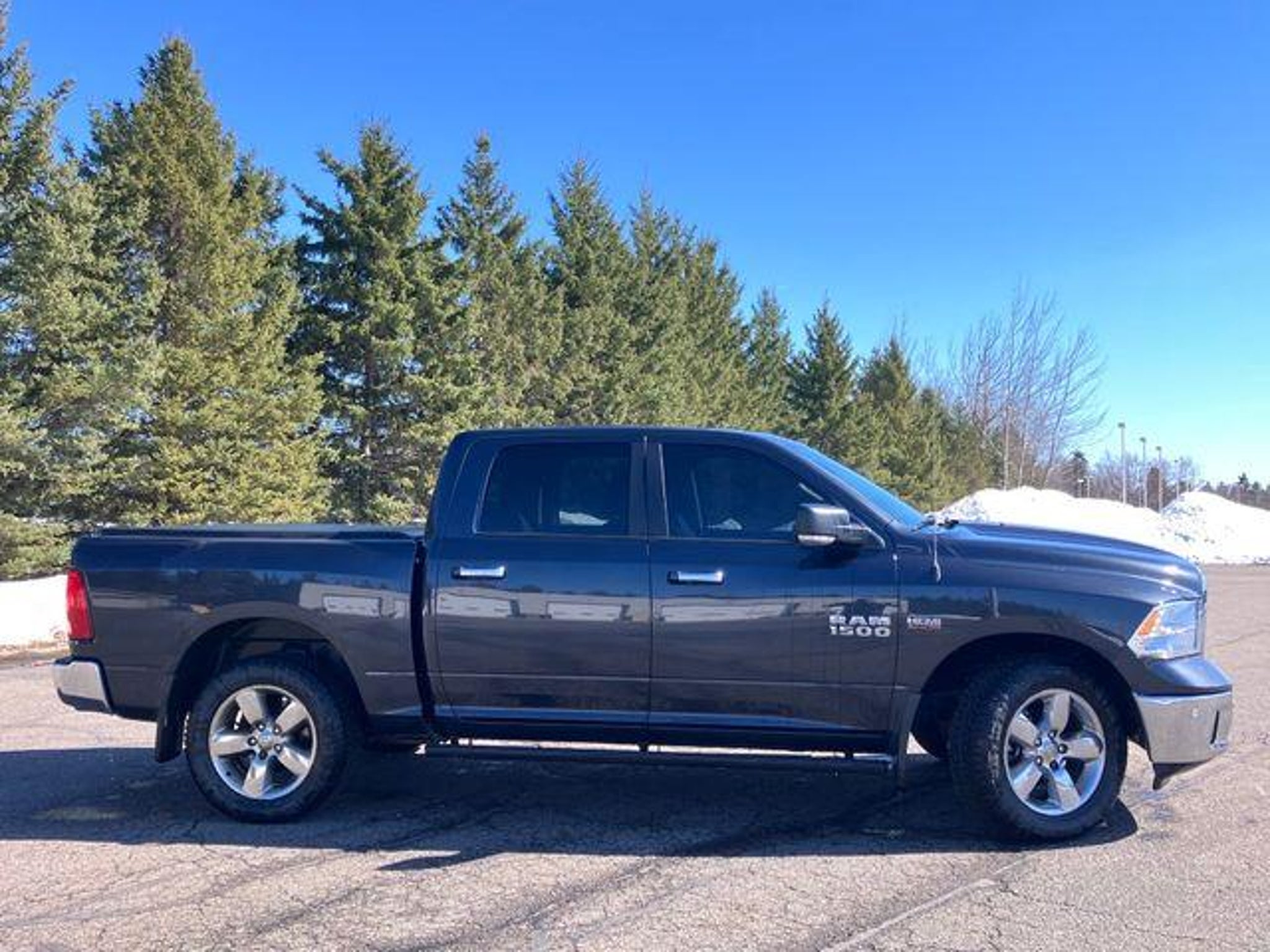 Discover the perfect blend of power, capability, and comfort in this 2015 Ram 1500 Big Horn. Boasting a HEMI 5.7L V8 engine with 8-speed automatic transmission, this 4WD truck delivers exceptional performance and efficiency, with an impressive 15 city/21 highway MPG rating. - Quick Order Package 26Z Big Horn - Luxury Group - Protection Group - Comfort Group - Remote Start & Security Group - Rear Camera & Park Assist Group - Power 10-Way Driver Seat - Power Lumbar Adjust - Rear 60/40 Split Folding Seat - Security Alarm - Universal Garage Door Opener - Fog Lamps - Electric Shift-On-Demand Transfer Case This Ram 1500 Big Horn is more than just a workhorse ? it's a well-appointed, feature-rich truck that's ready to tackle any task with confidence. The Luxury Group adds premium touches like a leather-wrapped steering wheel, power-folding mirrors, and an electroluminescent instrument cluster, while the Comfort Group ensures you and your passengers stay cozy with heated front seats and a heated steering wheel. Beyond the impressive performance and amenities, this Big Horn also boasts a bold, distinctive style. The Bright/Bright Billets grille and Big Horn badge give it a commanding presence on the road, while the 20-inch chrome-clad aluminum wheels add a touch of premium flair. Whether you're hauling heavy loads, navigating rough terrain, or simply enjoying the daily commute, this 2015 Ram 1500 Big Horn is the perfect companion. With its exceptional capabilities, thoughtful features, and refined styling, it's a truck that's sure to exceed your expectations. Experience the difference for yourself ? schedule a test drive today and discover the power and versatility of this impressive Ram 1500.