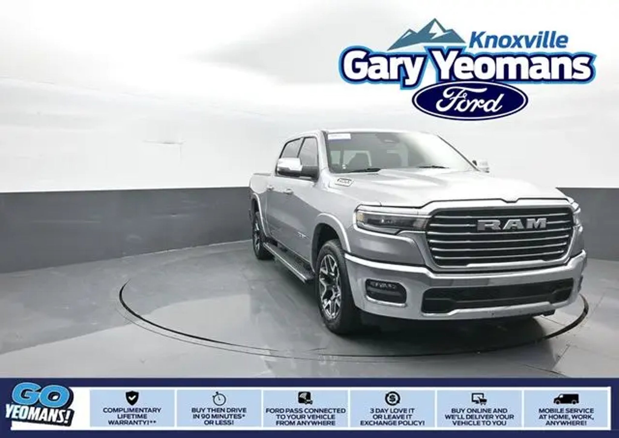 2025 Ram 1500 Laramie Billet Silver Metallic Clearcoat 4WD 3.0L I6 **INCLUDED FEATURES & OPTIONS: Bed Utility Group (MOPAR 4 Adjustable Cargo Tie-Down Hooks and MOPAR Spray In Bedliner), Laramie Level 1 Equipment Group (Rain Sensitive Windshield Wipers and Remote Tailgate Release), Quick Order Package 21H Laramie, 10 Speakers, 3 Rear Seat Head Restraints, 3.55 Rear Axle Ratio, 4 Way Front Headrests, 4-Wheel Disc Brakes, 4G LTE Wi-Fi Hot Spot, ABS brakes, Air Conditioning, Alloy wheels, AM/FM radio: SiriusXM with 360L, Apple CarPlay, Apple CarPlay/Android Auto, Audio memory, Auto High-beam Headlights, Auto Power-Folding Mirrors, Auto-dimming door mirrors, Auto-Dimming Exterior Driver Mirror, Auto-dimming Rear-View mirror, Automatic temperature control, Brake assist, Bumpers: chrome, Chrome Exterior Mirrors, Compass, Connected Travel & Traffic Services, Connectivity - US/Canada, Convex Wide-Angle Exterior Mirror Insert, Delay-off headlights, Driver door bin, Driver Seat Memory, Driver vanity mirror, Dual front impact airbags, Dual front side impact airbags, Electronic Stability Control, Exterior Mirrors Courtesy Lamps, Exterior Mirrors w/Heating Element, Exterior Mirrors w/Memory, Exterior Mirrors w/Supplemental Signals, Front anti-roll bar, Front Center Armrest w/Storage, Front dual zone A/C, Front fog lights, Front reading lights, Front Seat Back Map Pockets, Front wheel independent suspension, Fully automatic headlights, Garage door transmitter, Google Android Auto, GPS Antenna Input, GPS Navigation, HD Radio, Heated door mirrors, Heated Front Seats, Heated front seats, Heated rear seats, Heated Steering Wheel, Heated steering wheel, Illuminated entry, Integrated Voice Command w/Bluetooth, Leather steering wheel, Leather Trim 40/20/40 Bench Seat, Low tire pressure warning, Memory seat, Navigation System, Occupant sensing airbag, Outside temperature display, Overhead airbag, Overhead console, Panic alarm, ParkView Rear Back-Up Camera, Passenger door bin, Passenger vanity mirror, Power 2-Way Driver Lumbar Adjust, Power 2-Way Passenger Lumbar Adjust, Power Adjust 8-Way Front Passenger Seat, Power door mirrors, Power driver seat, Power passenger seat, Power steering, Power windows, Radio data system, Radio: Uconnect 5 Nav w/12.0 Display, RAM Grille Badge - Chrome, Rear anti-roll bar, Rear reading lights, Rear seat center armrest, Rear step bumper, Remote keyless entry, Security system, SiriusXM w/360L, Speed control, Split folding rear seat, Steering wheel mounted audio controls, Tachometer, Telescoping steering wheel, Tilt steering wheel, Traction control, Trailer Brake Control, Trip computer, Turn signal indicator mirrors, USB Host Flip, Variably intermittent wipers, Ventilated Front Seats, Ventilated front seats, Voltmeter, and Wheels: 20 x 9 Premium Paint/Polish. At Gary Yeomans Ford Knoxville we offer Market Based Pricing, so please call to check on the availability of this vehicle. Awards: * Motor Trend Automobiles of the year