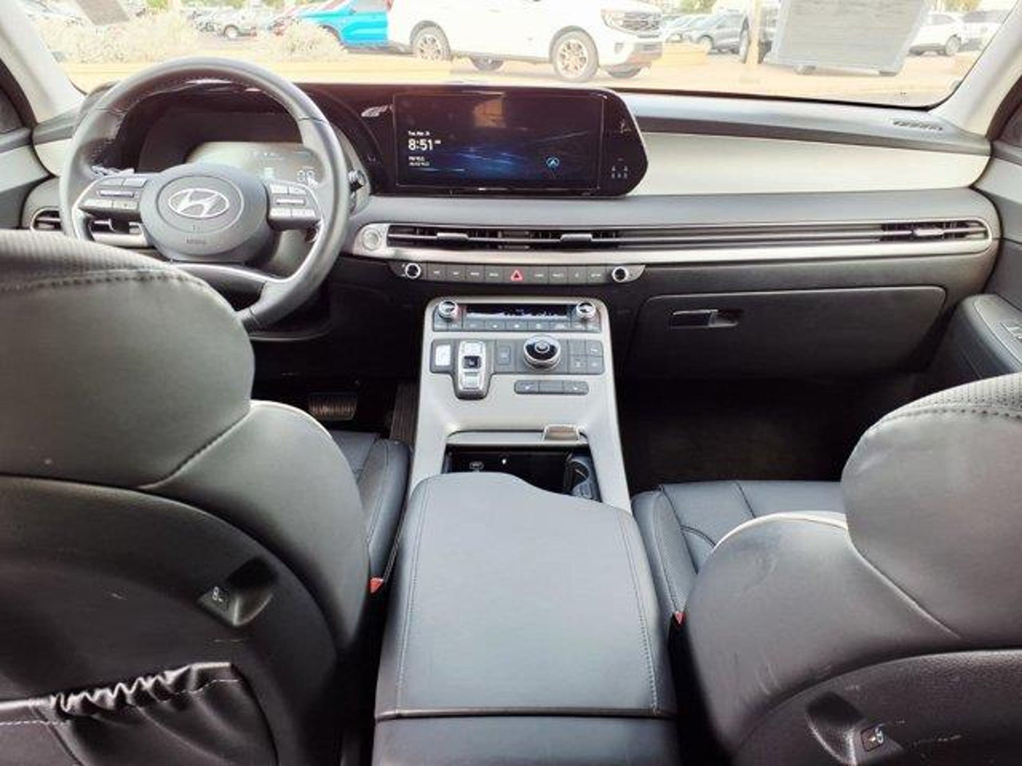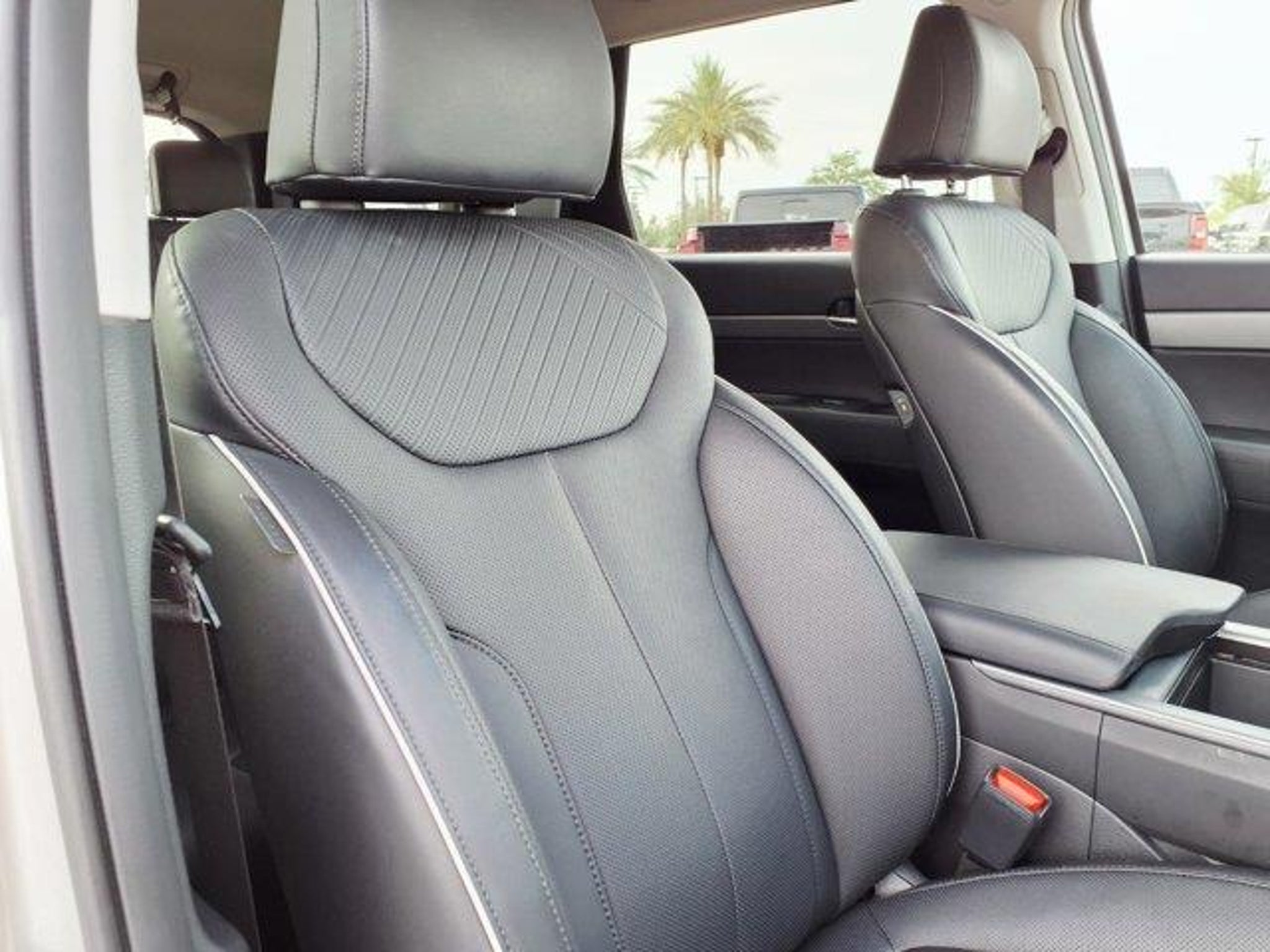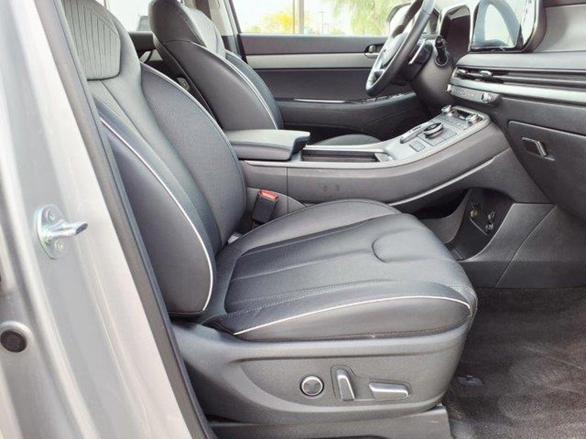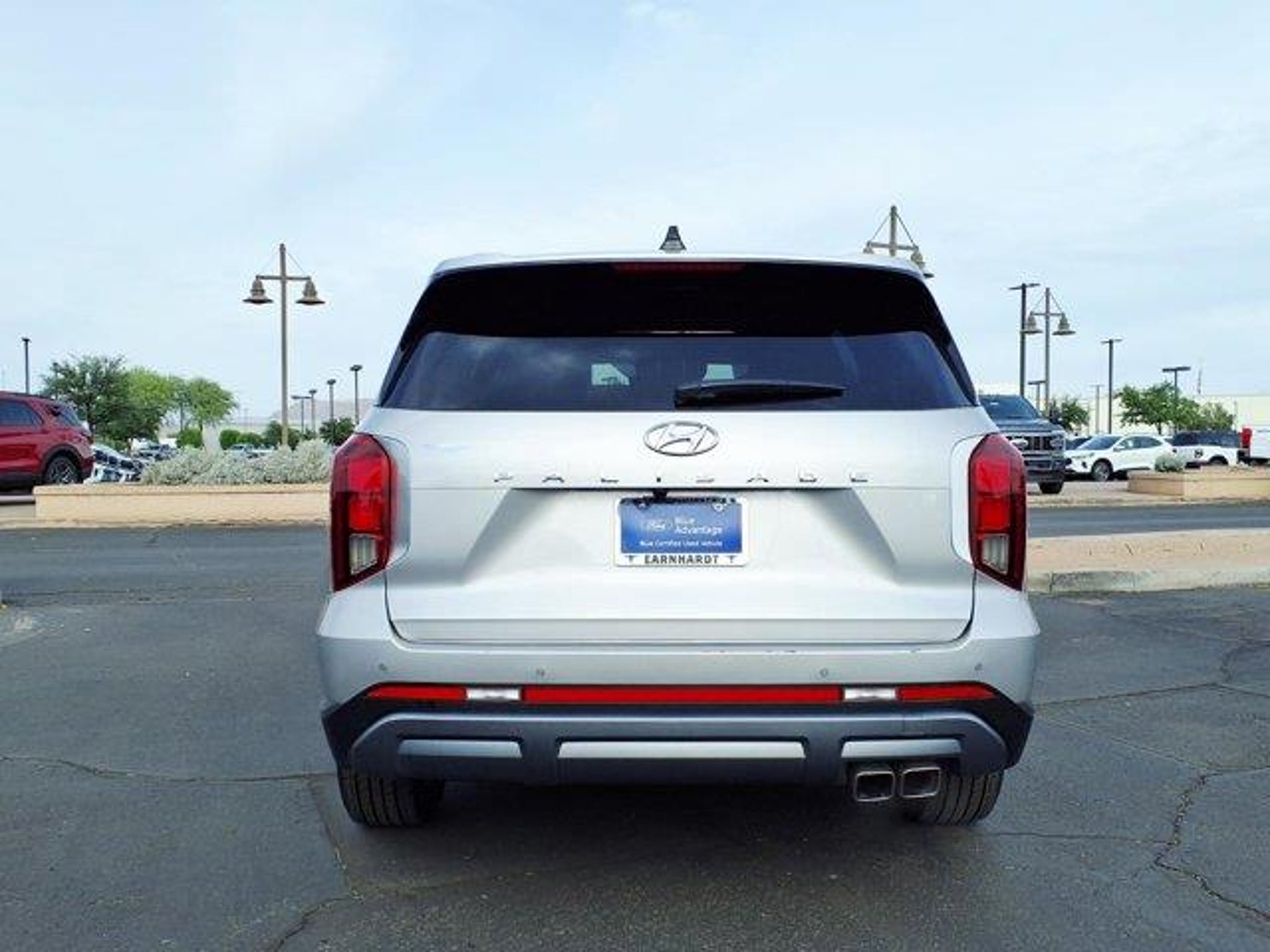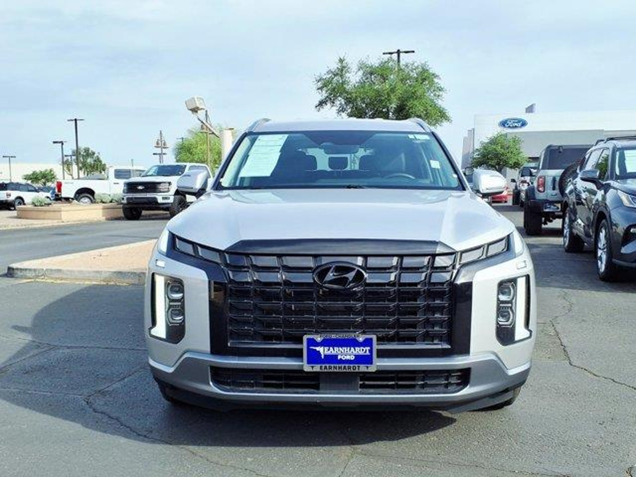 Typhoon Silver 2025 Hyundai Palisade SEL FWD 8-Speed Automatic with SHIFTRONIC V6 3rd row seats: split-bench, 4-Wheel Disc Brakes, 6 Speakers, ABS brakes, Air Conditioning, Alloy wheels, AM/FM radio: SiriusXM, Apple CarPlay & Android Auto, Auto High-beam Headlights, Auto-dimming Rear-View mirror, Automatic temperature control, Brake assist, Bumpers: body-color, Delay-off headlights, Driver door bin, Driver vanity mirror, Dual front impact airbags, Dual front side impact airbags, Electronic Stability Control, Emergency communication system, Exterior Parking Camera Rear, Four wheel independent suspension, Front anti-roll bar, Front Bucket Seats, Front Center Armrest, Front dual zone A/C, Front reading lights, Fully automatic headlights, H-Tex Leatherette Seat Trim, Heated door mirrors, Heated Front Bucket Seats, Heated front seats, Illuminated entry, Knee airbag, Leather steering wheel, Low tire pressure warning, Navigation System, Occupant sensing airbag, Option Group 01, Outside temperature display, Overhead airbag, Overhead console, Panic alarm, Passenger door bin, Passenger vanity mirror, Power door mirrors, Power driver seat, Power Liftgate, Power passenger seat, Power steering, Power windows, Radio data system, Radio: AM/FM/MP3 Audio System, Rear air conditioning, Rear anti-roll bar, Rear audio controls, Rear reading lights, Rear side impact airbag, Rear window defroster, Rear window wiper, Reclining 3rd row seat, Remote keyless entry, Security system, Speed control, Speed-sensing steering, Split folding rear seat, Spoiler, Steering wheel mounted audio controls, Tachometer, Telescoping steering wheel, Tilt steering wheel, Traction control, Trip computer, Turn signal indicator mirrors, Variably intermittent wipers, Wheels: 18 x 7.5J Painted Finish Alloy.Recent Arrival! Odometer is 13408 miles below market average! 19/26 City/Highway MPG