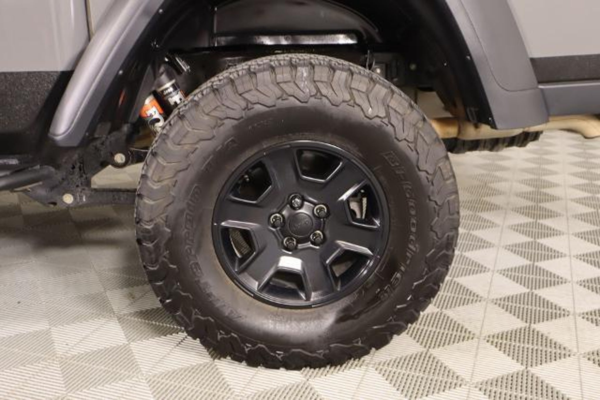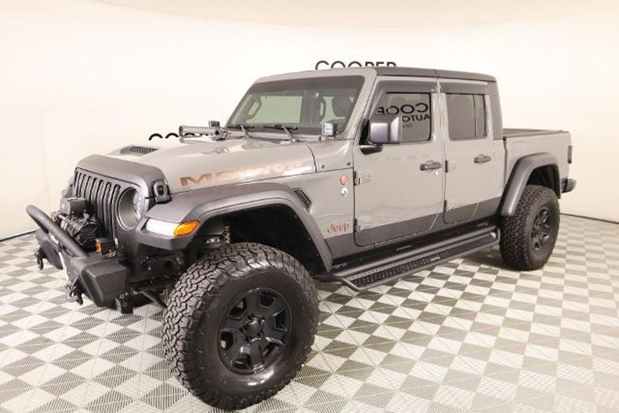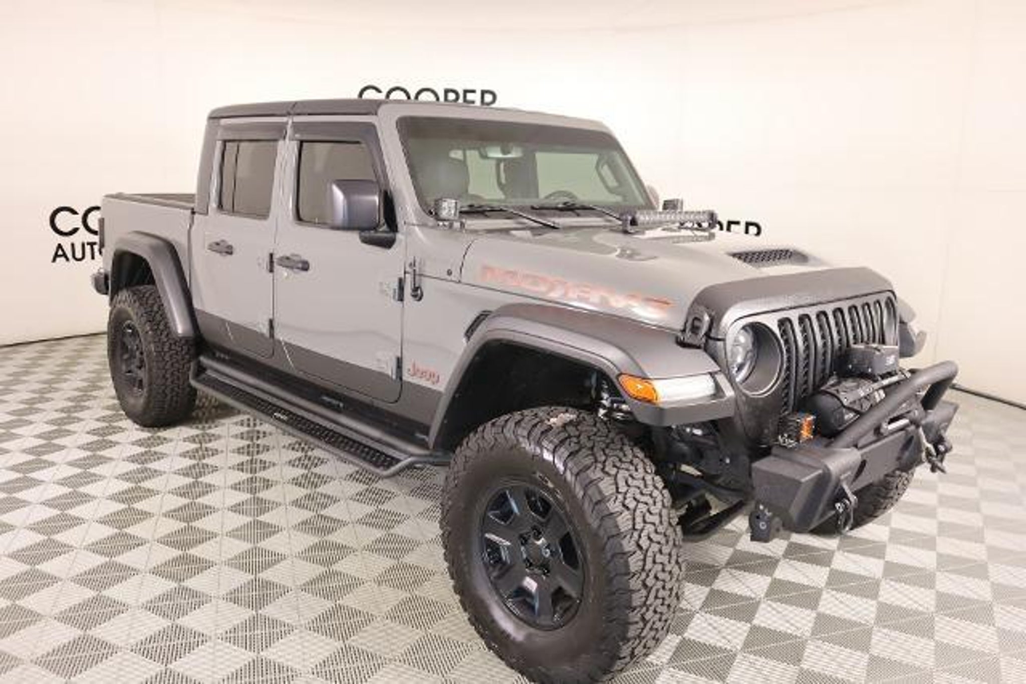 2023 Jeep Gladiator Mojave Sting-Gray Clearcoat 4WD 3.6L V6 24V VVT Recent Arrival! ? LED lighting package with fog lamps and LED headlights ? Trailer tow package with tow hitch and backup camera ? Premium leather bucket seats ? Convertible hardtop with rear defrost and sliding rear window ? 8-speed automatic transmission ? Bluetooth wireless speaker ? Heated mirrors ? Navigation system ? Premium sound system ? Keyless entry, keyless start, and power doors ? Power windows and power locks ? Air conditioning with multi-zone climate control ? Auto-dimming rearview mirror ? Adjustable driver lumbar and steering wheel ? Universal garage door opener ? WiFi hotspot and smart device integration ? Backup camera and parking assistance ? Front and side airbags, stability control, traction control ? Privacy glass and aluminum wheels ? Front and rear all-terrain tires with five skid plates
