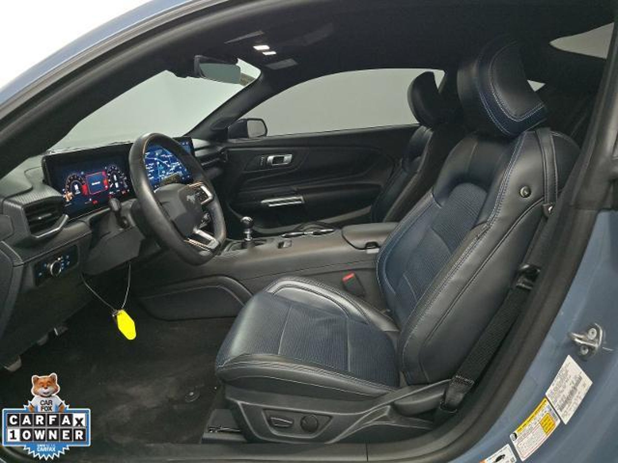 Recent Arrival! CARFAX One-Owner. 2024 Ford Mustang 2D Coupe GT Premium Vapor Blue RWD 5.0L V8 Ti-VCT 6-Speed Manual Active Anti-Theft System, B&O Sound System by Bang & Olufsen, Black Burkeshire w/Accent Stitching Floor Mats, Black Horizontal Bars w/Rave Blue Bezels Grille, Black Onyx w/Accent Stitching Door Trim Panels, Black Side Stripe, California Special Package, Connected Built-In Navigation, Equipment Group 401A High Package, Ford Co-Pilot360 Assist, Headlamps w/Black Bezels, Illuminated Door-Sill Scuff Plates, Integrated Turn Signals, Leather Bucket Seats, Leather-Trimmed Bucket Seats w/Color Accents, Locking Center Console, Memory Driver Seat & Mirrors, Pre-Collision Assist w/Automatic Emergency Braking, Rave Blue Side Stripe, Security Package, Wheel Locking Kit. California Special Package (Black Burkeshire w/Accent Stitching Floor Mats, Black Horizontal Bars w/Rave Blue Bezels Grille, Black Onyx w/Accent Stitching Door Trim Panels, Black Side Stripe, Headlamps w/Black Bezels, Leather Bucket Seats, and Rave Blue Side Stripe), Equipment Group 401A High Package (B&O Sound System by Bang & Olufsen, Illuminated Door-Sill Scuff Plates, Integrated Turn Signals, Leather-Trimmed Bucket Seats w/Color Accents, and Memory Driver Seat & Mirrors), Ford Co-Pilot360 Assist (Connected Built-In Navigation and Pre-Collision Assist w/Automatic Emergency Braking), Security Package (Active Anti-Theft System, Locking Center Console, and Wheel Locking Kit), 4-Wheel Disc Brakes, 9 Speakers, ABS brakes, Active Valve Performance Exhaust, Air Conditioning, Alloy wheels, AM/FM radio: SiriusXM with 360L, AM/FM Stereo, Auto High-beam Headlights, Auto-dimming Rear-View mirror, Automatic temperature control, Brake assist, Bumpers: body-color, Climate Controlled Heated/Cooled Front Seats, Compass, Delay-off headlights, Driver door bin, Driver vanity mirror, Dual fro'nt side impact airbags, Dual front impact airbags, Electronic Stability Control, Emergency communication system: 911 Assist, Exterior Parking Camera Rear, Four wheel independent suspension, Front anti-roll bar, Front Bucket Seats, Front Center Armrest, Front dual zone A/C, Front reading lights, Fully automatic headlights, Garage door transmitter, HD Radio, Heated door mirrors, Heated front seats, Heated steering wheel, Illuminated entry, Knee airbag, Leather Shift Knob, Leather steering wheel, Leather-Trimmed Bucket Seats, Low tire pressure warning, Occupant sensing airbag, Outside temperature display, Overhead airbag, Overhead console, Panic alarm, Passenger door