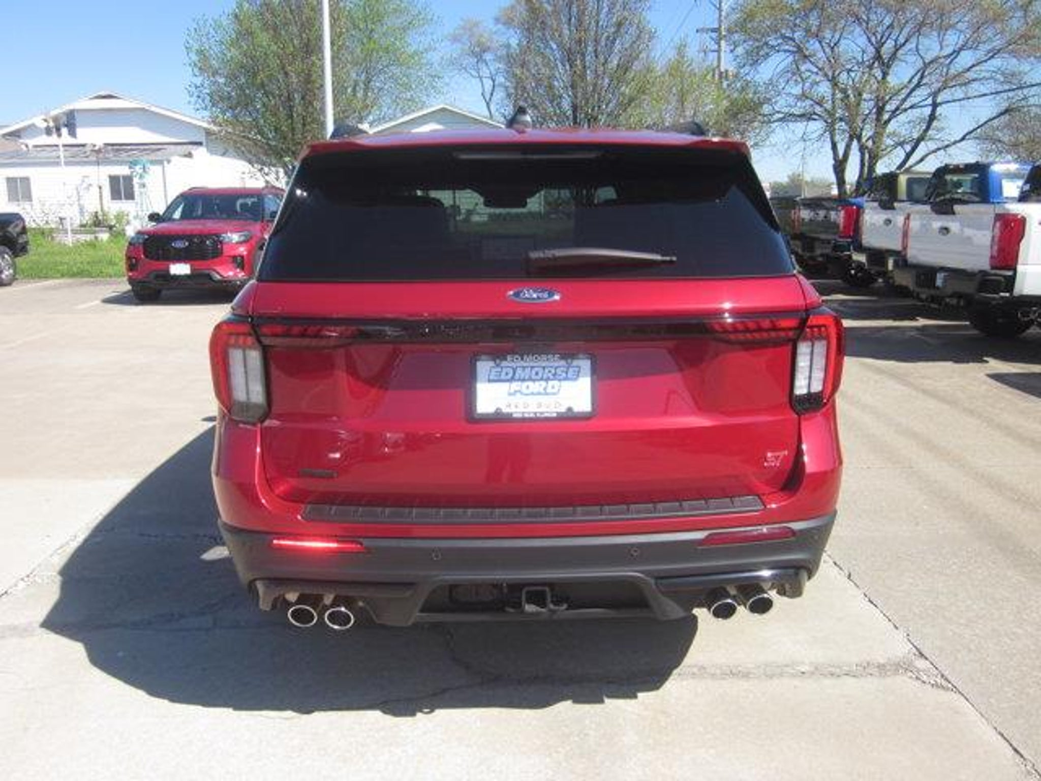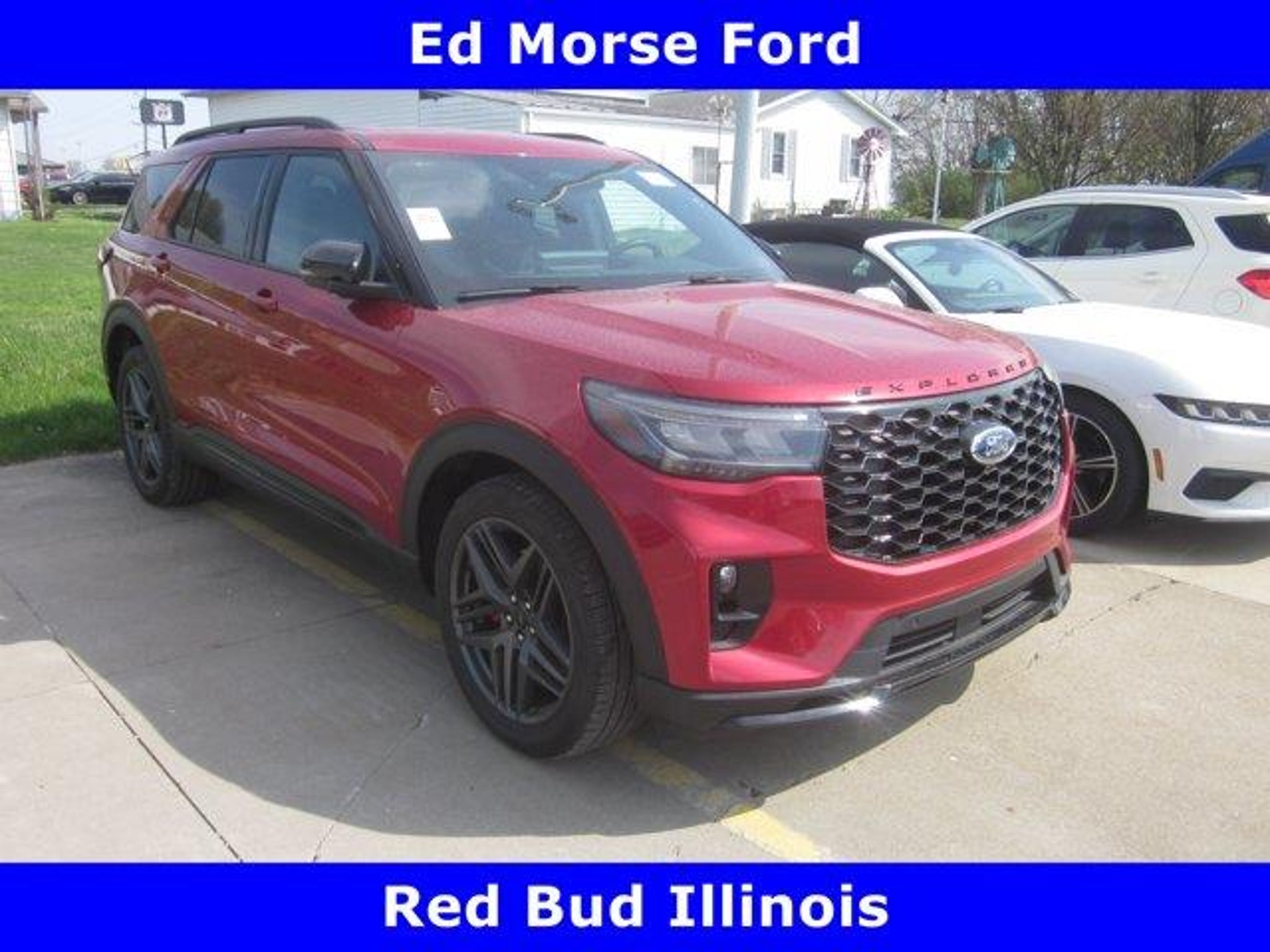 Recent Arrival!2025 Ford Explorer ST Red Metallic 4WDJoin the 2 Million Customers and Counting ED MORSE 75 YEARS OF EXCELLENCE!Equipped with Equipment Group 400A Standard Package, 10 Speakers, 3.58 Non-Limited Slip Rear Axle, 3rd row seats: bench, 4-Wheel Disc Brakes, ABS brakes, Air Conditioning, Alloy wheels, AM/FM radio: SiriusXM with 360L, Apple CarPlay/Android Auto, Auto High-beam Headlights, Auto-dimming door mirrors, Auto-dimming Rear-View mirror, Automatic temperature control, Brake assist, Bumpers: body-color, Compass, Delay-off headlights, Driver door bin, Driver vanity mirror, Dual front impact airbags, Dual front side impact airbags, Electronic Stability Control, Emergency communication system: 911 Assist, Exterior Parking Camera Rear, Four wheel independent suspension, Front & 2nd Rows Floor Liners w/Carpet Floor Mats, Front anti-roll bar, Front Bucket Seats, Front Center Armrest, Front dual zone A/C, Front fog lights, Front reading lights, Fully automatic headlights, Garage door transmitter, Heated door mirrors, Heated front seats, Heated rear seats, Heated steering wheel, Heated/Ventilated Miko Sport Captain's Chairs, Illuminated entry, Internet access capable: FordPass Connect 5G, Knee airbag, Leather steering wheel, Low tire pressure warning, Memory seat, Navigation System, Occupant sensing airbag, Outside temperature display, Overhead airbag, Overhead console, Panic alarm, Passenger door bin, Passenger vanity mirror, Power door mirrors, Power driver seat, Power Liftgate, Power passenger seat, Power steering, Power windows, Radio: B&O Sound System by Bang & Olufsen, Rain sensing wipers, Rear air conditioning, Rear anti-roll bar, Rear reading lights, Rear window defroster, Rear window wiper, Remote keyless entry, Security system, Speed control, Speed-sensing steering, Speed-Sensitive Wipers, Split folding rear seat, Spoiler, Sport steering wheel, Steering wheel mounted audio controls, Tachometer, Telescoping steering wheel, Tilt steering wheel, Traction control, Trip computer, Turn signal indicator mirrors, Variably intermittent wipers, Ventilated front seats, and Wheels: 21 Magnetite-Painted Aluminum.