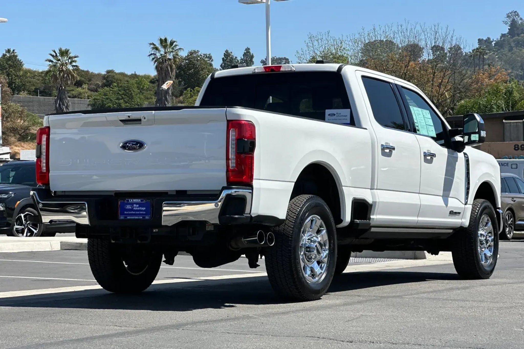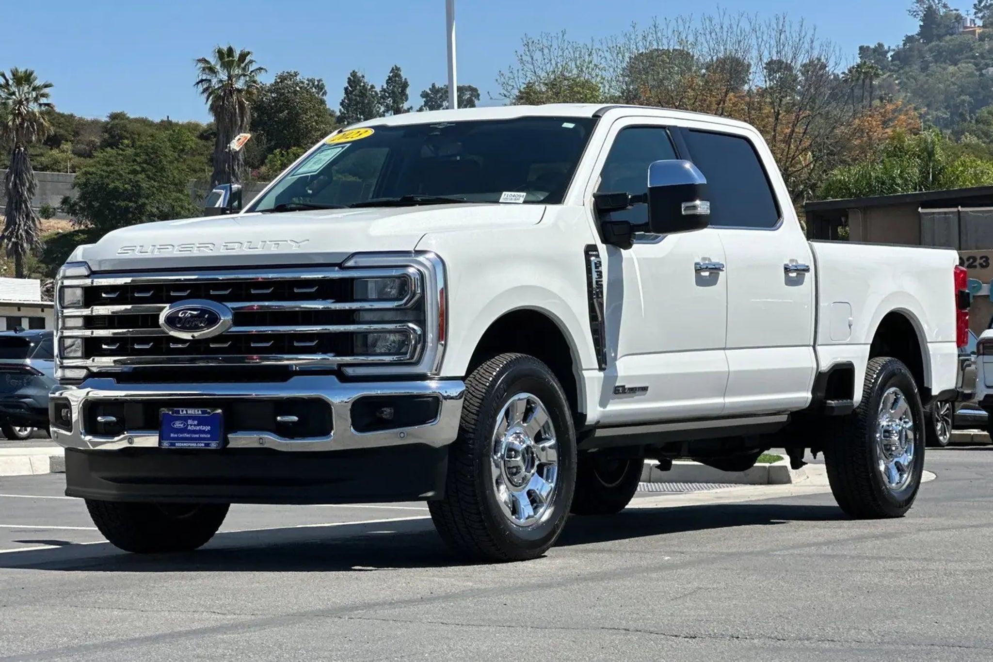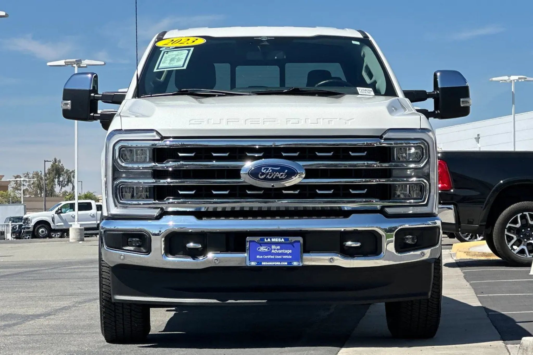 Clean CARFAX. CARFAX One-Owner. Recent Arrival! Priced below KBB Fair Purchase Price! Certified. This 2023 Star White Metallic Tri-Coat Ford F-350 SuperDuty Lariat 4WD is well equipped and includes these features and benefits: 4WD, 4-Way Adjustable Headrests, 6 Angular Bright Anodized Step Bars, Adjustable pedals, Auto-dimming Rear-View mirror, BLIS w/Cross-Traffic Alert, Chrome Door Handles, Chrome Exhaust Tip, Chrome Package, Dual 68 AH/65 AGM Batteries, Electronic-Locking w/3.73 Axle Ratio, Exterior Parking Camera Rear, Front Sensing System, FX4 Off-Road Package, Garage door transmitter, Head-Up Display, Heated front seats, Heated rear seats, Hill Descent Control, Illuminated entry, Lariat Ultimate Package, Navigation system: Connected Navigation, Off-Road Specifically Tuned Shock Absorbers, Order Code 618A, Power passenger seat, Power-Deployable Running Boards, Pro Trailer Backup Assist, Pro Trailer Hitch Assist, Radio: B&O Unleashed Sound System by Bang & Olufsen, SYNC 4 w/Enhanced Voice Recognition, Tailgate Step & Handle, Tow Technology Package, Unique Chrome Mirror Caps, Unique FX4 Off-Road Box Decal, Upfitter Switches (6), Ventilated front seats, Wheels: 20 Chrome PVD Aluminum, Wireless Charging Pad. Certification Program Details: Ford Blue Advantage: Blue Certified * 139 Point Inspection * Transferable Warranty * Vehicle History * Warranty Deductible: $100 * Roadside Assistance * Limited Warranty: 3 Month/4,000 Mile (whichever comes first) after new car warranty expires or from certified purchase date * and 11,000 FordPass Rewards Points to use toward first maintenance visit Sedano Ford is a trusted used and Ford Certified Pre-Owned dealership in La Mesa, California, offering a wide selection of quality pre-owned cars, trucks, and SUVs for sale across San Diego County. Our pre-owned and Ford Blue Certified inventory includes used Ford F-150, Super Duty, Bronco, Explorer, Escape, Ranger, Maverick, Mustang, and Ford Certified vehicles that pass a rigorous multi-point inspection and include warranty coverage and vehicle history reports. Located in La Mesa and serving El Cajon, Santee, Lemon Grove, Spring Valley, Chula Vista, and San Diego, Sedano Ford provides competitively priced used vehicles, transparent online listings, and easy financing for shoppers searching for used cars and certified Ford vehicles near them.