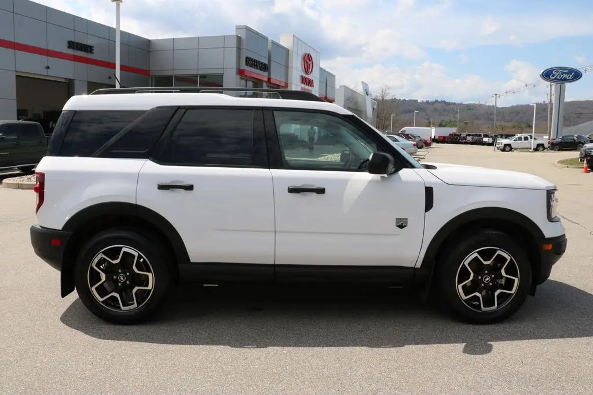 ***Price includes dealer documentation fee of $549.*** KEY FEATURES: One-owner vehicle, no accidents reported, regular oil changes, 15 service records, well maintained personal vehicle, AWD capability, and desirable Convenience Package. This 2024 Ford Bronco Sport Big Bend delivers a perfect mix of efficiency and rugged capability with its terrain management system and confident all-wheel drive. Powered for everyday driving and weekend adventure, it features auto start stop technology and a smooth ride with responsive handling. Equipped with the Convenience Package adding heated front seats, wireless charging pad, rear parking sensors, LED fog lamps, 8-way power driver seat, and universal garage door opener. Inside offers comfort and practicality with electronic climate control, split-fold rear seating, rubberized cargo floor, and SYNC 3 with 8-inch touchscreen, Apple CarPlay and Android Auto compatibility. Safety comes standard with Ford Co-Pilot360 including rear view camera, blind spot features, and advanced driver assist systems. Exterior highlights include 18-inch machined wheels, LED lighting, roof rack side rails, and heated power mirrors. A clean, well cared for SUV ready for any season. Come in for a test drive today at 1 Main Street in Greenfield, Ma off of exit 43 (Previously exit 26) on I-91. Includes, $549 Dealer Documentation fee. Proudly serving Franklin & Hampshire County. Including Greenfield, Montague, Millers Falls, Erving, Gill, Northfield, Deerfield, Sunderland, Bernardston, Hadley, Amherst and Northampton, Massachusetts. Minutes from Brattleboro, VT & Keene, NH. Price excludes, tax, title, and registration fees.