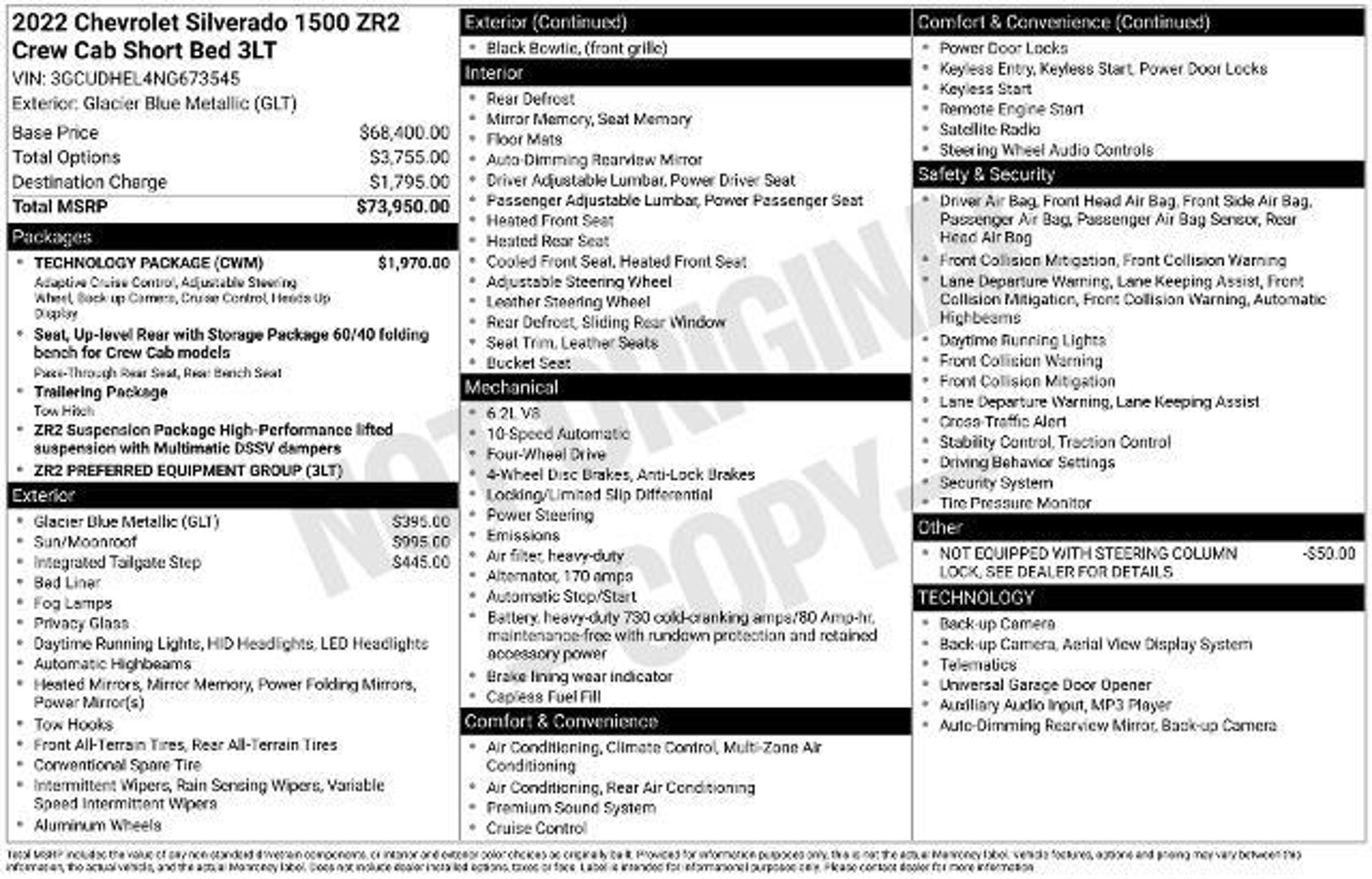 Jones Ford on Rivers Avenue in North Charleston is proud to offer a wide selection of quality used vehicles backed by experience, transparency, and a commitment to doing business the right way. We hand-pick our inventory and put every vehicle through a detailed inspection process so customers from Charleston, Summerville, Mount Pleasant, Hanahan, Moncks Corner, West Ashley, James Island, Daniel Island, Ladson, Wando, Ravenel, and Johns Island can shop with complete confidence. From hardworking trucks and versatile SUVs to dependable daily drivers, our used vehicles are competitively priced and ready for the road, all supported by a knowledgeable team that believes buying a vehicle should be clear, honest, and pressure-free?just like it used to be. This 2022 Chevrolet Silverado 1500 ZR2 is a true standout in our impressive inventory. With its striking Blue exterior and well-equipped interior, this truck is ready to take on any adventure. Boasting a powerful EcoTec3 6.2L V8 engine and 4-wheel drive capabilities, the Silverado ZR2 delivers exceptional performance and capability. - No Accidents !! - Passed Dealer Inspection - Recent Oil Change - TECHNOLOGY PACKAGE - SUNROOF, POWER - TAILGATE, MULTI-FLEX The Silverado ZR2 is packed with premium features that elevate the driving experience. Enjoy the convenience of the power sliding rear window, the added security of the theft deterrent system, and the enhanced visibility of the LED cargo area lighting. The 15 diagonal head-up display and Bose premium sound system provide cutting-edge technology and entertainment at your fingertips. Designed for both work and play, this Silverado ZR2 offers a perfect blend of capability and comfort. The 10-way power driver's seat and heated front seats ensure a relaxing ride, while the ventilated seats and dual-zone climate control keep you comfortable in any weather. The integrated trailer brake controller and trailering app make towing a breeze, while the multi-flex tailgate provides unparalleled versatility. Safety is a top priority, and this Silverado ZR2 delivers with advanced features like forward collision alert, automatic emergency braking, and lane keep assist. The rear camera mirror and surround vision system provide added confidence and peace of mind on the road. Whether you're tackling tough job sites, navigating the great outdoors, or simply commuting in style, this 2022 Chevrolet Silverado 1500 ZR2 is the perfect companion. Come experience its impressive capabilities and premium amenities for yourself. W