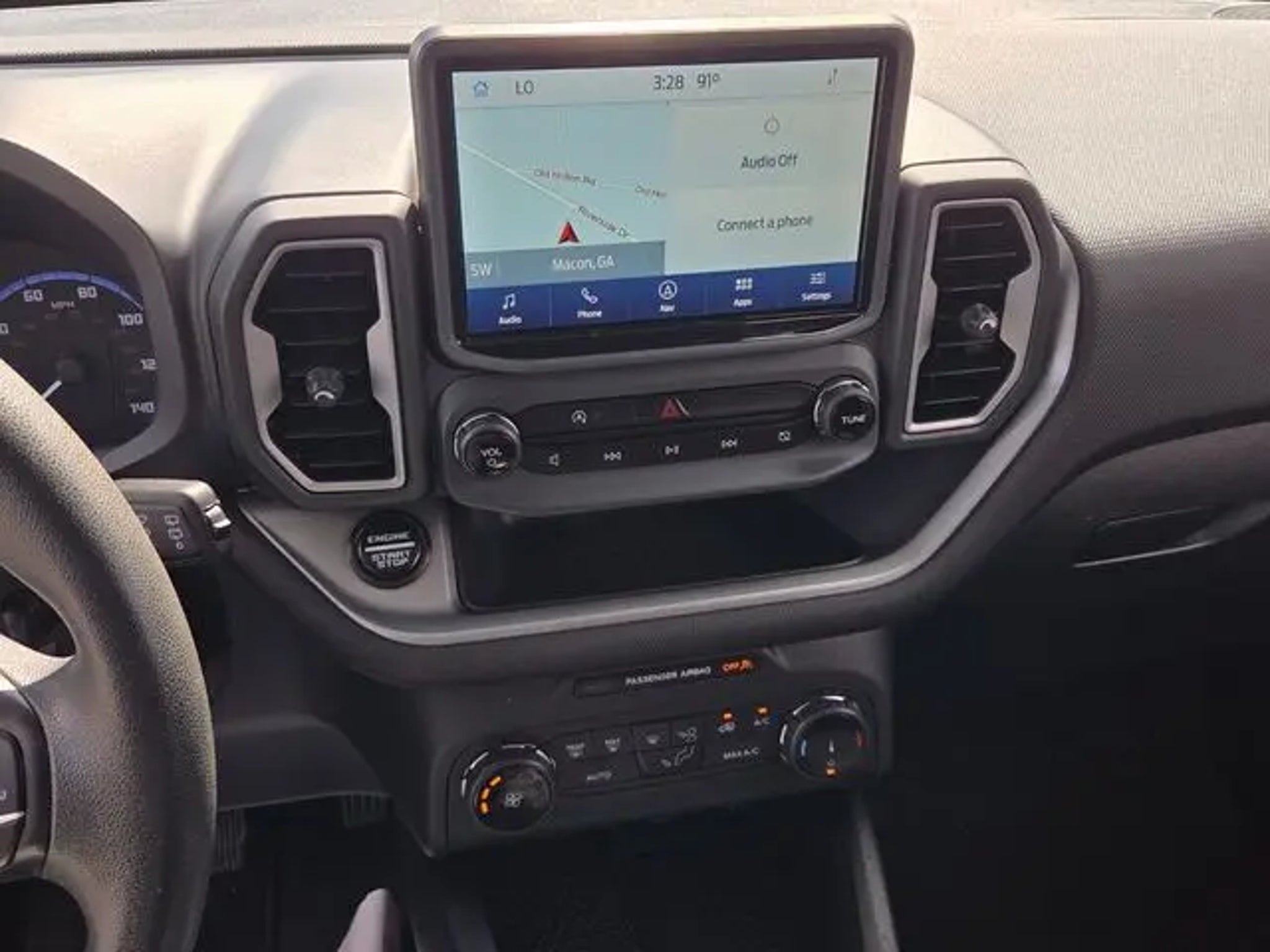 Recent Arrival! CARFAX One-Owner. Shadow Black 2022 Ford Bronco Sport Big Bend 4D Sport Utility 4WD 8-Speed Automatic 1.5L EcoBoost EASY FINANCING. ALL ROUTINE MAINTENANCE COMPLETED. SERVICE RECORDS AVAILABLE. EXTENDED WARRANTY AVAILABLE. We service Macon, Warner Robins, Byron, Perry and Forsyth. If you are outside of the middle Georgia area, we are fully staffed and prepared to earn your business by making it as smooth and as uncomplicated as possible. 3.80 Axle Ratio, 4-Wheel Disc Brakes, 6 Speakers, ABS brakes, Air Conditioning, Alloy wheels, AM/FM radio: SiriusXM, AM/FM Stereo, Auto High-beam Headlights, Automatic temperature control, Brake assist, Compass, Delay-off headlights, Driver door bin, Driver vanity mirror, Dual front impact airbags, Dual front side impact airbags, Electronic Stability Control, Emergency communication system: SYNC 3 911 Assist, Equipment Group 200A, Evasive Steering Assist, Ford Co-Pilot360 Assist, Four wheel independent suspension, Front anti-roll bar, Front Bucket Seats, Front Center Armrest, Front License Plate Bracket, Front reading lights, Fully automatic headlights, Heated door mirrors, Illuminated entry, Intelligent Adaptive Cruise Control w/Stop & Go, Knee airbag, Low tire pressure warning, Occupant sensing airbag, Outside temperature display, Overhead airbag, Overhead console, Panic alarm, Passenger door bin, Passenger vanity mirror, Power door mirrors, Power steering, Power windows, Radio data system, Rear anti-roll bar, Rear reading lights, Rear seat center armrest, Rear window defroster, Rear window wiper, Remote keyless entry, Roof rack: rails only, Security system, SiriusXM Radio, Speed control, Speed-sensing steering, Speed-Sensitive Wipers, Split folding rear seat, Steering wheel mounted audio controls, SYNC 3 Communications & Entertainment System, SYNC 3/Apple CarPlay/Android Auto, Tachometer, Telescoping steering wheel, Tilt steering wheel, Traction control, Trip computer, Unique Cloth Front Bucket Seats, Variably intermittent wipers, Voice-Activated Touchscreen Navigation System, Wheels: 17 Carbonized Gray-Painted Aluminum.