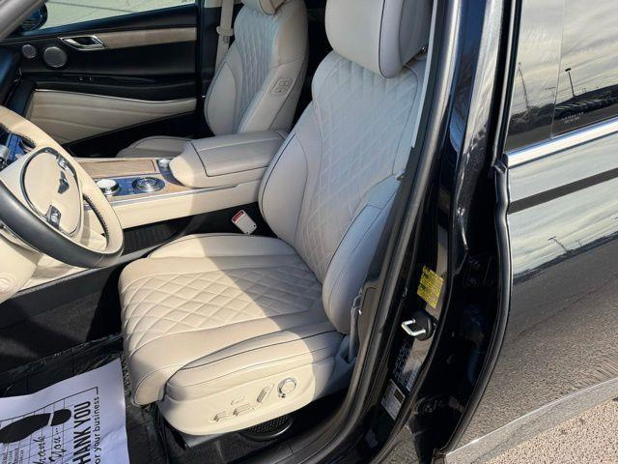 New Price! Vik Black 2023 Genesis GV80 3.5T AWD 8-Speed Automatic 3.5L DOHC 12 Speakers, 12.3 3D Digital Instrument Cluster, 2nd Row Vanity Mirrors, 3-Zone Climate Control, 3.909 Axle Ratio, 4-Wheel Disc Brakes, ABS brakes, Adaptive suspension, Air Conditioning, Alloy wheels, AM/FM radio: SiriusXM, Android Auto & Apple CarPlay, Anti-whiplash front head restraints, Auto High-beam Headlights, Auto tilt-away steering wheel, Auto-dimming door mirrors, Auto-dimming Rear-View mirror, Automatic temperature control, Blind-Spot View Monitor, Brake assist, Bumpers: body-color, Compass, Delay-off headlights, Driver door bin, Driver vanity mirror, Dual front impact airbags, Dual front side impact airbags, Electronic Limited Slip Differential, Electronic Stability Control, Emergency communication system: Genesis Connected Services, Ergo Motion Driver Seat, Exterior Parking Camera Rear, First Aid Kit, Forward Attention Warning, Four wheel independent suspension, Front anti-roll bar, Front Bucket Seats, Front Center Armrest, Front dual zone A/C, Front reading lights, Fully automatic headlights, Garage door transmitter: HomeLink, Genuine wood console insert, Genuine wood dashboard insert, Genuine wood door panel insert, Head-Up Display, Heated & Ventilated Front Bucket Seats, Heated 2nd Row Seats, Heated door mirrors, Heated front seats, Heated steering wheel, Illuminated entry, Knee airbag, Leather Seating Surfaces, Leather steering wheel, Leatherette Seating Surfaces, Low tire pressure warning, Memory seat, Nappa Leather Seating Surfaces, Navigation System, Occupant sensing airbag, Option Group 06, Outside temperature display, Overhead airbag, Overhead console, Panic alarm, Parking Collision-Avoidance Assist, Passenger door bin, Passenger vanity mirror, Power 2nd Row Outboard Seats, Power Cushion Extension & Bolster, Power Door Closure, Power door mirrors, Power driver seat, Power Liftgate, Power moonroof, Power passenger seat, Power Rear Door Shades, Power steering, Power windows, Prestige Package, Radio data system, Radio: AM/FM/SiriusXM/HD Audio System, Radio: AM/FM/SiriusXM/HD Lexicon Prem Audio System, Rain sensing wipers, Rear air conditioning, Rear anti-roll bar, Rear Bumper Applique, Rear reading lights, Rear seat center armrest, Rear side impact airbag, Rear window defroster, Rear window wiper, Remote keyless entry, Remote Smart Parking Assist, Reversible Cargo Tray, Road Active Noise Control, Security system, Speed control, Speed-sensing steering, Speed-Sensitive Wipers, Split folding rear seat, Spoiler, Stee