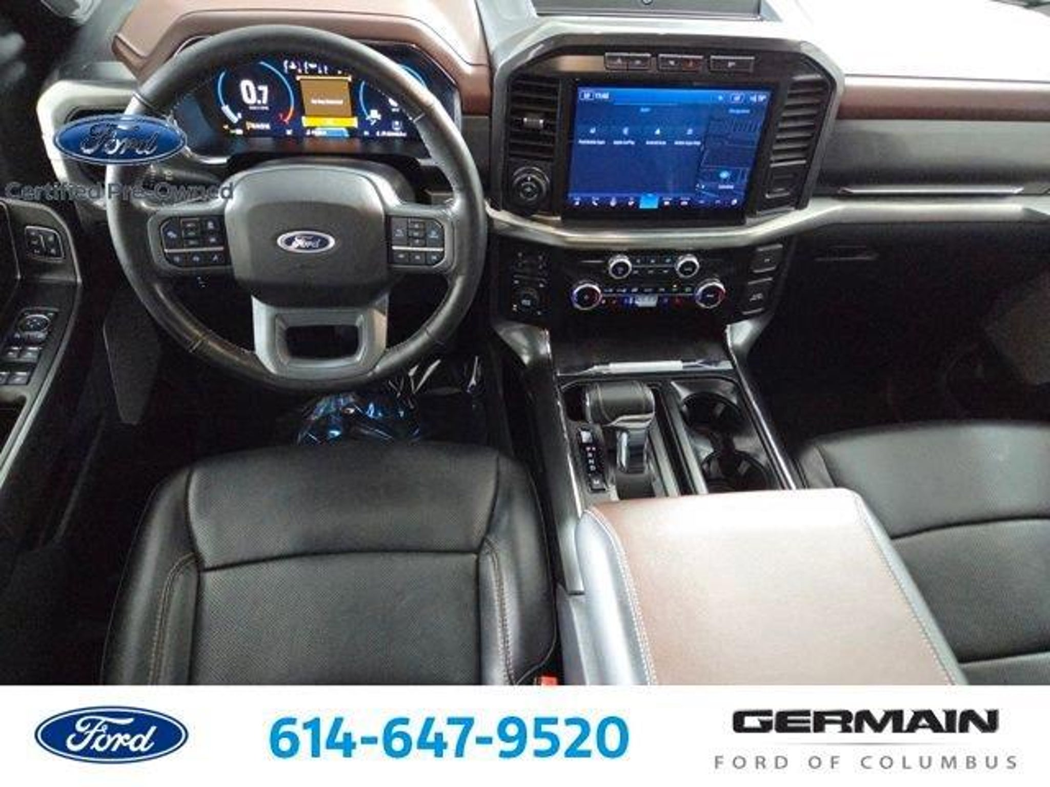 FORD FACTORY CERTIFIED PRE-OWNED, 2nd Row Heated Seats, ABS brakes, Accent-Color Angular Step Bars, Body-Color Front & Rear Bumpers, Box Side Decals, Chrome Single-Tip Exhaust, Compass, Dark 2-Bar & 1 Minor Bar Style Grille, Electronic Stability Control, Equipment Group 502A High, Ford Co-Pilot360 Assist 2.0, Front dual zone A/C, Heated door mirrors, Heated front seats, Illuminated entry, Lariat Sport Appearance Package, LED Projector w/Dynamic Bending Headlamps, Low tire pressure warning, Power Tailgate, Power Tilt/Telescoping Steering Column w/Memory, Rain-Sensing Wipers, Remote keyless entry, Traction control, Twin Panel Moonroof, Wheels: 20 6-Spoke Dark Alloy Painted Aluminum, Wireless Charging Pad. Clean CARFAX. Agate Black Metallic 4WD 10-Speed Automatic 3.5L V6 EcoBoostWE HAVE INCLUDED 30 PHOTO'S OF OUR VEHICLES. PLEASE VISIT WWW.GERMAINFORD.COM. Recent Arrival! Odometer is 578 miles below market average!Certified. Ford Blue Certified Details:* Roadside Assistance* Limited Warranty: 3 Month/4,000 Mile (whichever comes first) after new car warranty expires or from certified purchase date* Vehicle History* Warranty Deductible: $100* and 11,000 FordPass Rewards Points to use toward first maintenance visit* Transferable Warranty* 139 Point InspectionWhat is Live Market Pricing? Simple. Live Market Pricing provides the most competitive prices on all our pre-owned vehicles, all the time. Pre-owned Live Market Pricing is achieved by polling over 40,000 pre-owned websites every hour to ensure that every single customer receives real-time Value Pricing on every single Pre-Owned Vehicle we sell. We don't play the pricing games. See for yourself how we measure up to the competitors by. 2023 Ford F-150 Lariat