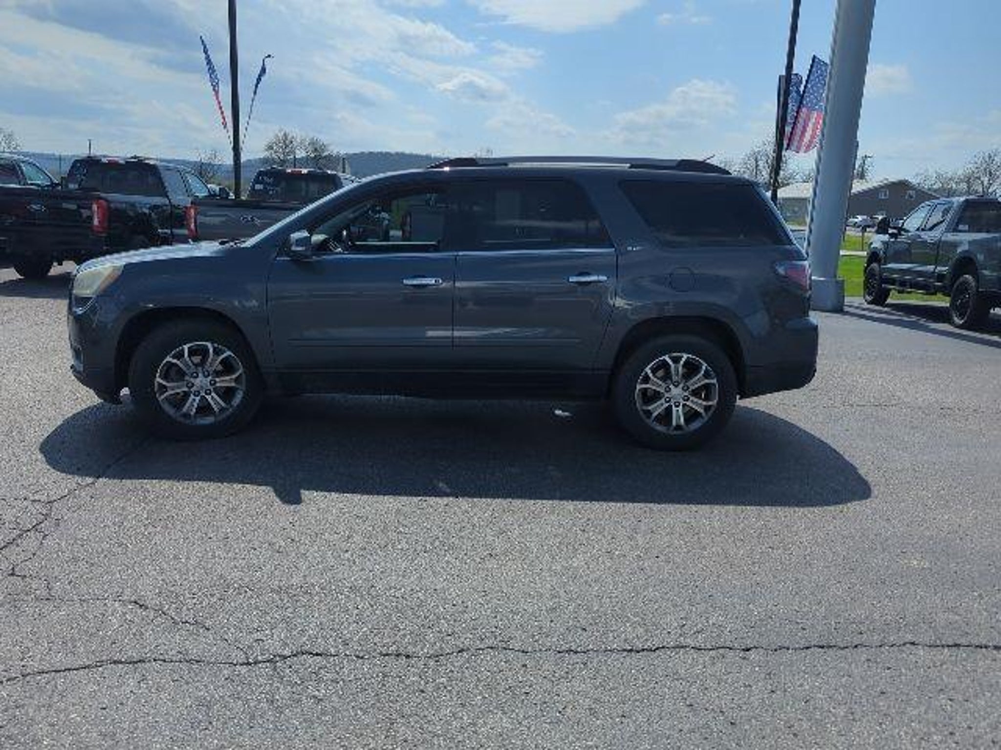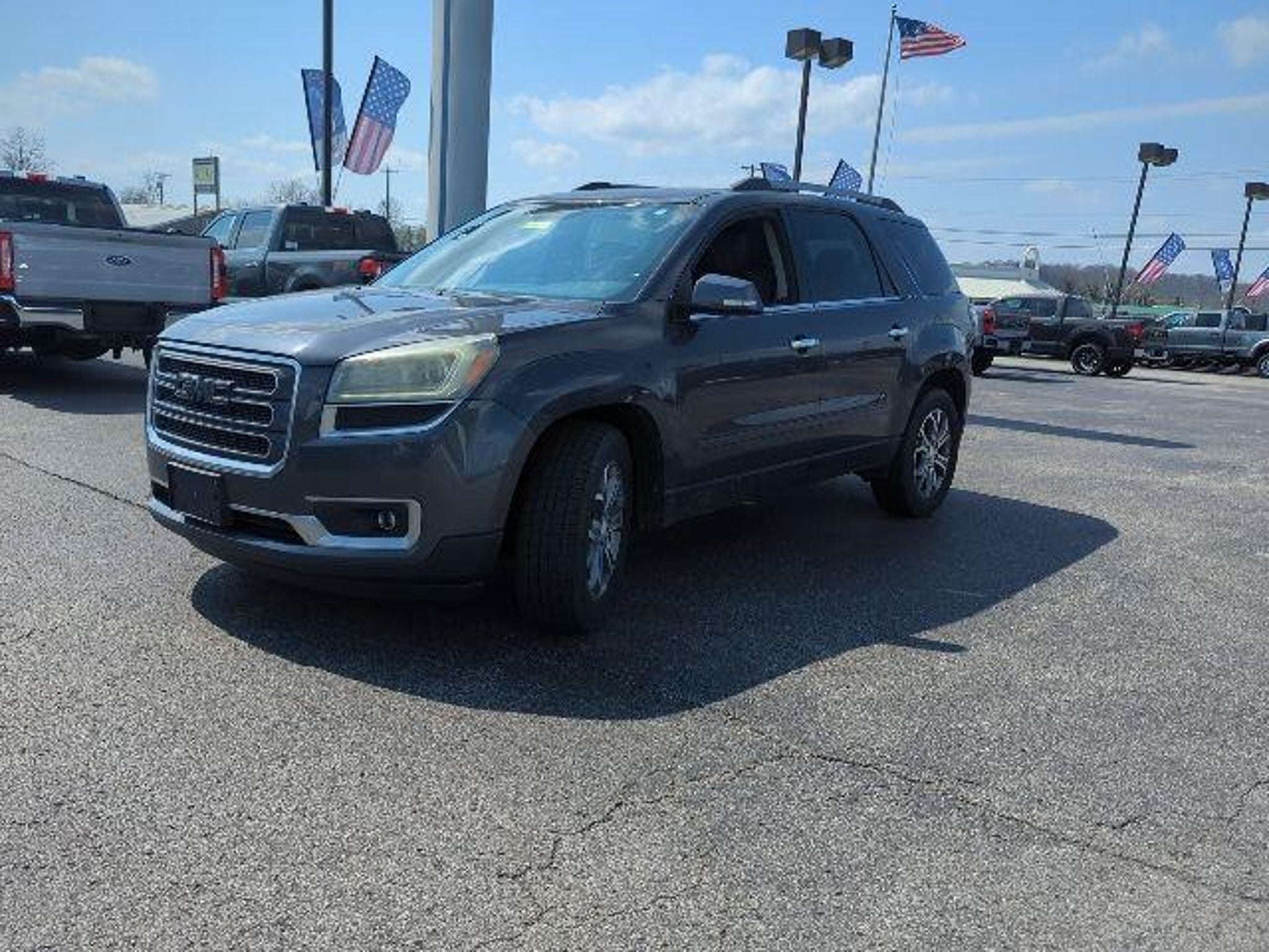 AWD, Ebony Leather. Priced below KBB Fair Purchase Price! 2014 GMC Acadia SLT-1 Cyber Gray Metallic 3.6L V6 SIDI 6-Speed Automatic Awards: * 2014 KBB.com Brand Image Awards Marshall Ford is the home of the Lifetime Powertrain Warranty! Located two minutes off I-71 in the beautiful town of Carrollton, KY, we are a short drive from Louisville, Lexington, Cincinnati, and Indianapolis! Schedule your test drive with our family-owned dealership where relationships are our number one priority. Our product specialists are here to assist you in finding the right vehicle for you and with terms you can afford. We have a LOT full of deals, and if we don't have it, we can get it fast. Here is a list of options that are available: we can get Cars, Trucks, Vans, and SUV's with AWD / 4WD, 2nd Row Bucket Seating, 3rd Row Seats, Cruise Control, Backup Camera, Bluetooth, No Accidents, Dual Power Seats, Heated Leather Seating, Power Moonroof, Sunroof, Panoramic Vista Roof, New Tires, New Brakes, Non-Smoker Interior, 30 MPG, One Owner Carfax Certified, Premium Wheels, Premium Cloth Seating, Premium Sound System, 3rd Row Seating, Trailer Hitch, Navigation, Rear Back-Up Sensors, Rear Bucket Seats, Leather Seats, DVD Player, Remote Keyless Entry, Remote Start, Service Records Available, Steering Wheel Controls, Tow Package, Trailer Hitch, Traction Control, USB Ports, Price includes all applicable factory, financing and/or trade-in rebates. Not responsible for mistakes in mileage, options or pricing. We reserve the right to correct all errors. Most internet pricing not combinable with other offers.