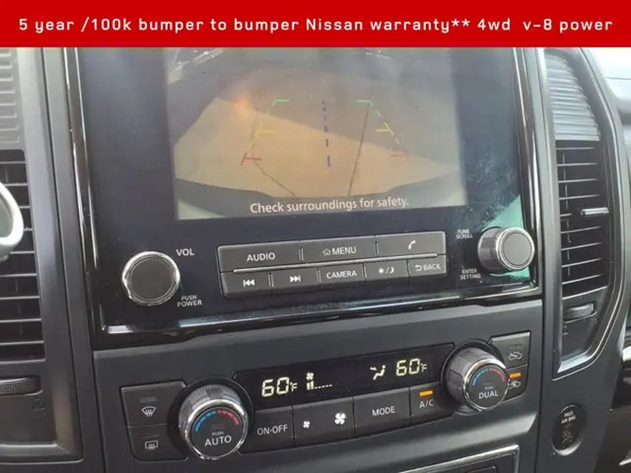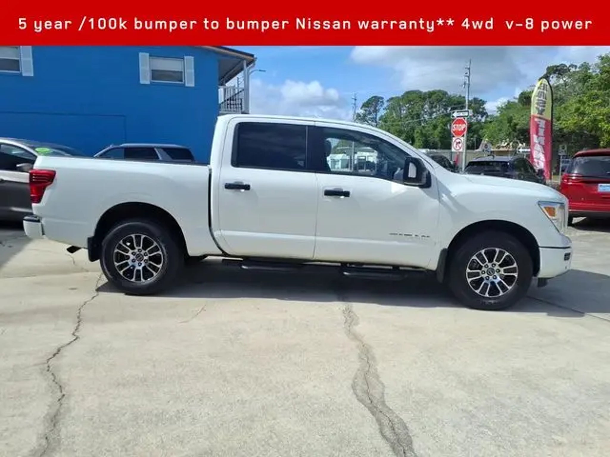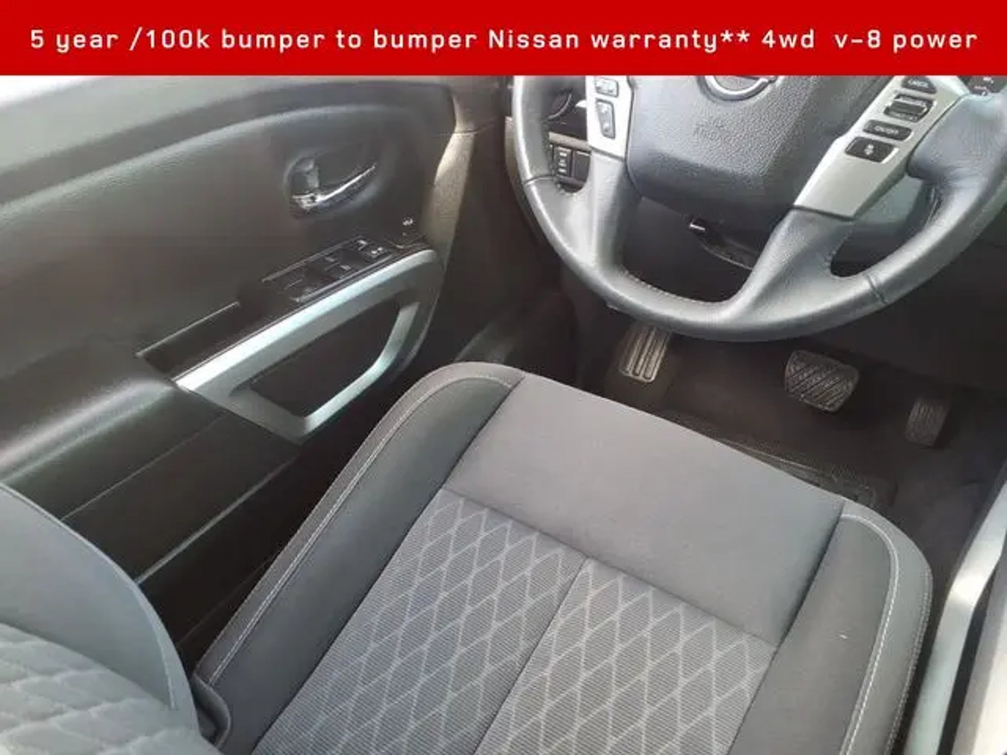 2024 Nissan Titan SV 4WD**Crew cab v-8 **Amazing full sized pickup value Titan- Corporate lease termination in like new condition / never hauled a thing and looks amazing as it is inside and out- Conveniences and comfort of an executive sedan and brute hauling power of a truck 2024 Nissan Titan SV **4D Crew Cab** 5.6L V8 DOHC 32V LEV3-ULEV70 400hp, 9-Speed Automatic Titan is powerful and boasts the only 5 year /100k full factory warranty in trucks!! 15/21 City/Highway MPG Our Nissan, factory trained, Master technician perform a 167 point inspection and completed routine maintenance. Serving the central Florida area since 1971 and continuing a wonderful history with our new and long time customers, today. We are conveniently located in Titusville, FL just 35 minutes from Orlando Int'l airport, off I-95 exit 220. East 2.7M to US1, turn right on US1- to 1128 S Hopkins Ave Titusville, FL 32780. ** Price does not reflect reconditioning fee $1195 SV Convenience Package (120V/12V Outlets In Back Of Center Console, 2 Illuminated USB-A Ports In Back Of Center Console, Auto-Dimming Rear-View Mirror, Dedicated Cell Phone Holder, Dual Illuminated Vanity Mirror Front Sun Visors, Dual Zone Automatic HVAC, Front & Rear Parking Sensors, Heated Front Captain's Chairs, Intelligent Key System, Leather-Wrapped Steering Wheel, Mood Light, NissanConnect Services, Overhead Console w/Sunglass Holder, Power Sliding Rear Window w/Defogger, Rear HVAC Vents, Remote Engine Start System, and Wi-Fi Hotspot), SV Tow Package (4-Pin/7-Pin Wiring Harness Connector (Rear Bumper), Heated Manually Extendable Tow Mirrors, Puddle Lamps, Receiver Hitch, Trailer Brake Controller, and Trailer Light Check Function On Key Fob), SV Utility Package (120V Outlet in Bed, Electronic Locking Tailgate, Flat Floor Function w/Tie Down Hooks, LED Tailgate Area Illumination, LED Under Rail Bed Lighting, Rain Sensing Wipers, Rear Utility Bed Step, Rearview Mirror w/Universal Garage Door Opener, Spray-On Bedliner, and Utilitrack System w/2 Tie-Down Cleats), Nissan Certified Certified, 4WD, 3.692 Axle Ratio, 4-Wheel Disc Brakes, 6 Speakers, ABS brakes, Air Conditioning, Alloy wheels, AM/FM radio: SiriusXM, Apple CarPlay/Android Auto, Auto High-beam Headlights, Bed Assist Grip, Blind Spot Warning, Brake assist, Bumpers: chrome, Carpet Floor Mats (L95), Cloth Seat Trim, Driver door bin, Dual front impact airbags, Dual front side impact airbags, Electronic Stability Control, Front anti-roll bar, Front Center Armrest w/Storage, Front reading lights, Front Split Bench Seat (40/20/40), Front wheel independent suspension, Fully automatic headlights, Heated door mirrors, Illuminated entry, Knee airbag, Loop Side Steps, Low tire pressure warning, Occupant sensing airbag, Outside temperature display, Overhead airbag, Overhead console, Panic alarm, Passenger door bin, Passenger vanity mirror, Power door